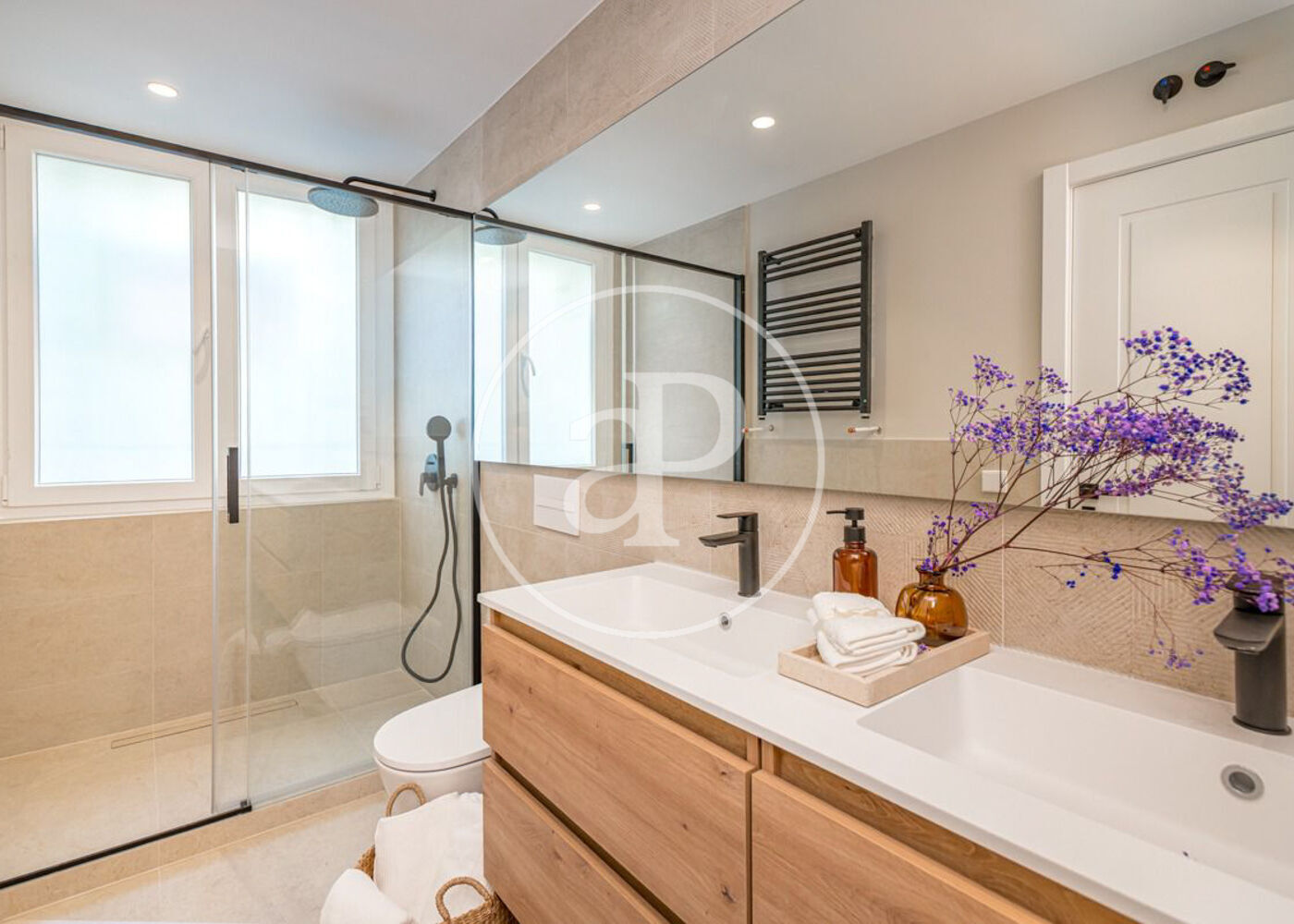 Aproperties presents this spectacular penthouse in the highly sought-after area of Eixample Esquerra, right on Comte Borrell Street, featuring two terraces and breathtaking views. The 112 m² penthouse has been renovated with premium finishes and is ready to move in. Its smart layout and east-west dual orientation ensure constant natural light and cross-ventilation throughout the home. The property offers 2 spacious double bedrooms with en-suite bathrooms and built-in wardrobes, as well as a guest toilet. The semi-open, spacious kitchen is fully equipped with high-end appliances. It perfectly blends design and functionality and connects seamlessly to the living-dining room, a warm and welcoming space ideal for family gatherings or entertaining guests. From the living room, you step out onto one of the private terraces, perfect for outdoor relaxation or enjoying a dinner with a view. The second terrace is connected to the master bedroom, offering an intimate corner with spectacular views. Together, the terraces offer 23 m² of outdoor space to enjoy the charm of Barcelona from above. The flat is equipped with ducted air conditioning and heating, ensuring year-round comfort. It also includes a parking space and storage room in the same building—a true luxury in the heart of Barcelona. If you're looking for an elegant, functional penthouse with outdoor spaces in one of the city’s most vibrant and well-connected neighborhoods, don’t hesitate to schedule a visit. You’ll love it!