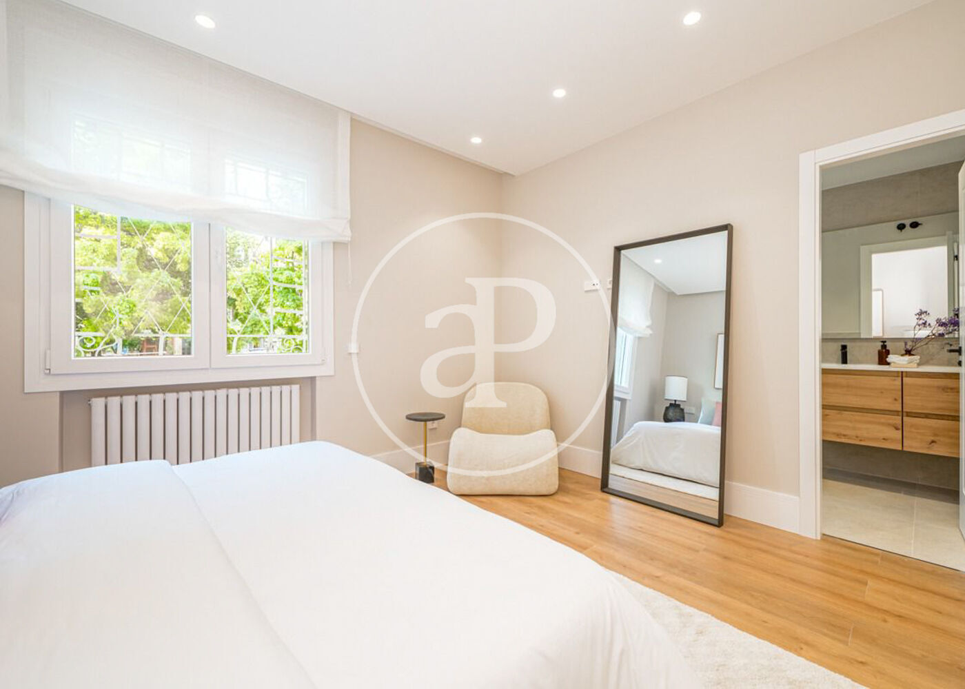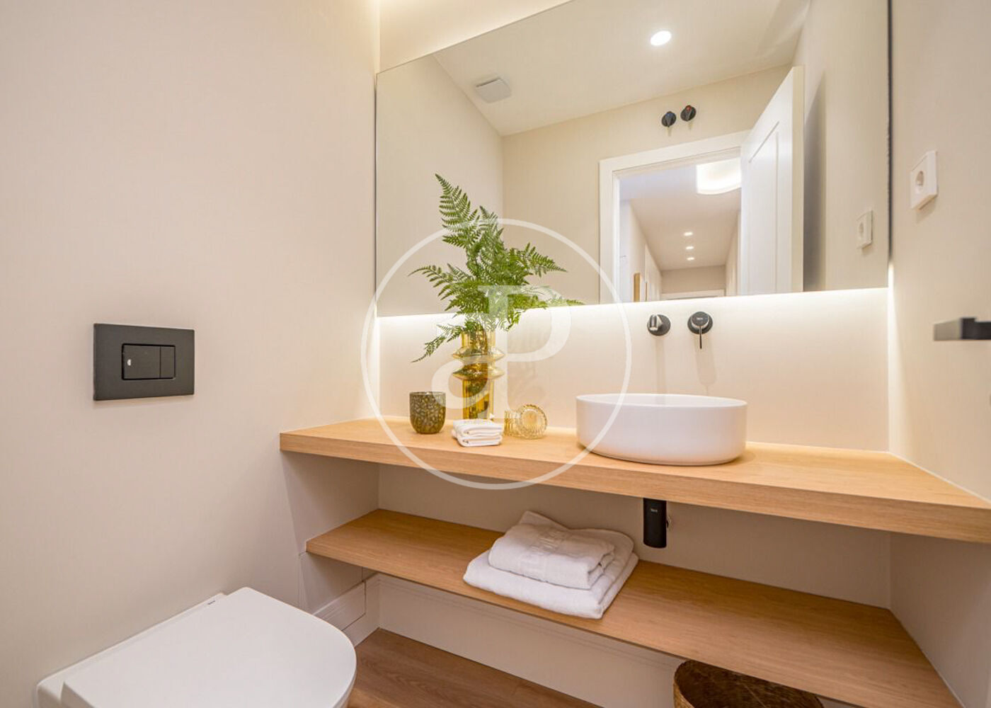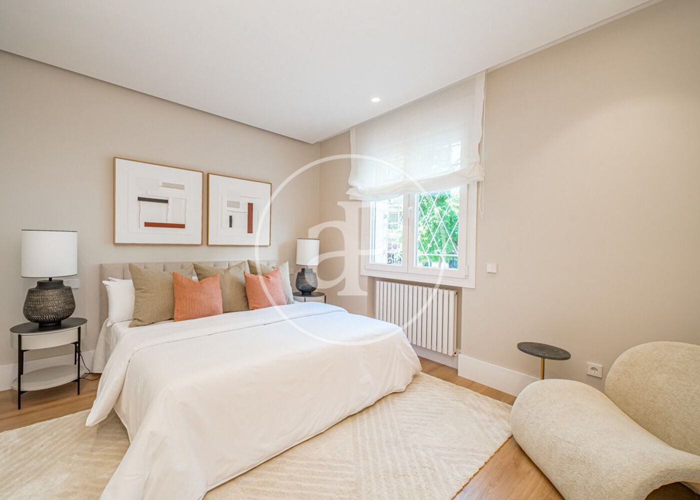 Aproperties presents a beautiful, newly renovated apartment on Calle Antonio Mercé, in the Goya district. It is a bright mezzanine with a surface area of 173 m2 according to the land registry. The living area consists of a spacious living-dining room with an open-plan kitchen and large windows. It also has a separate laundry area and a guest toilet.
