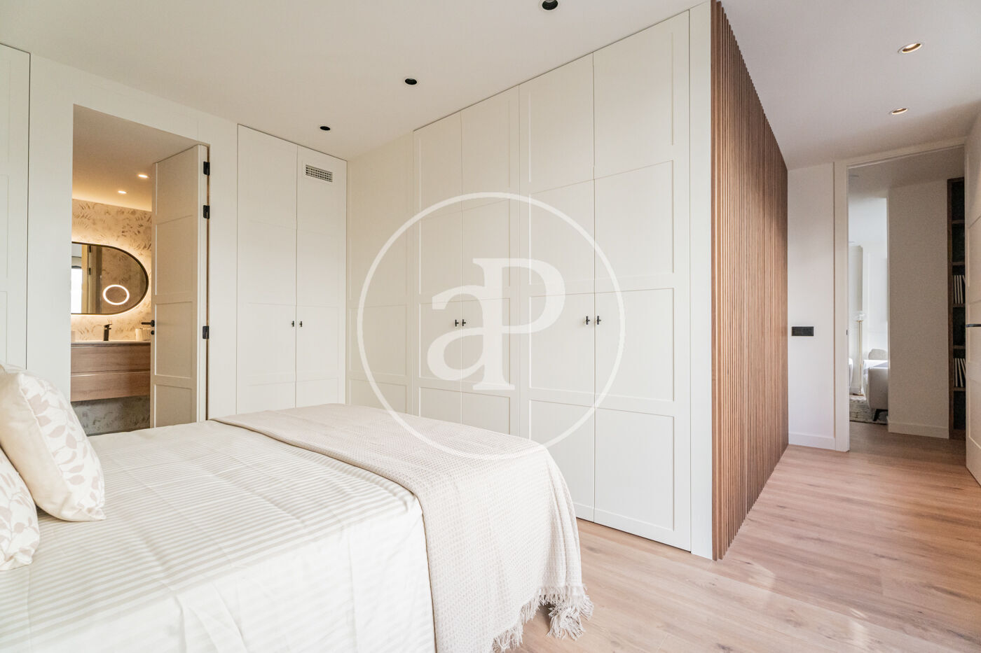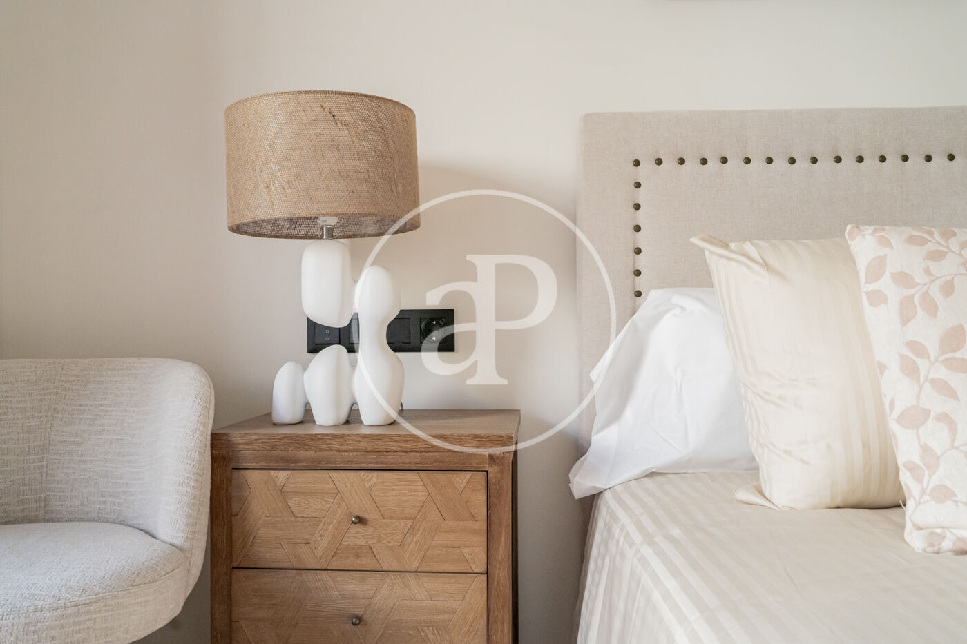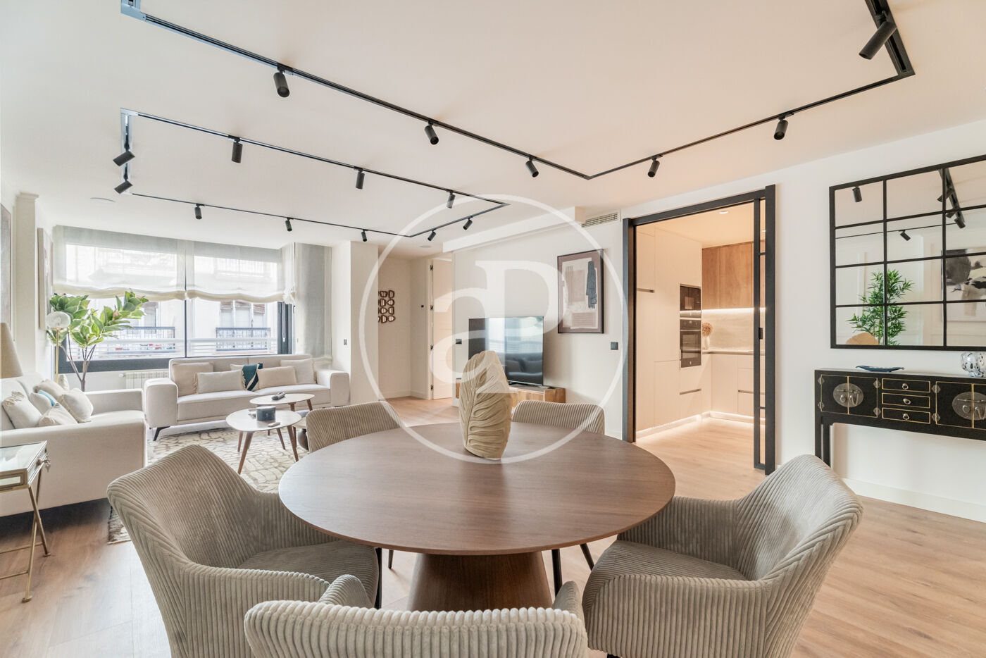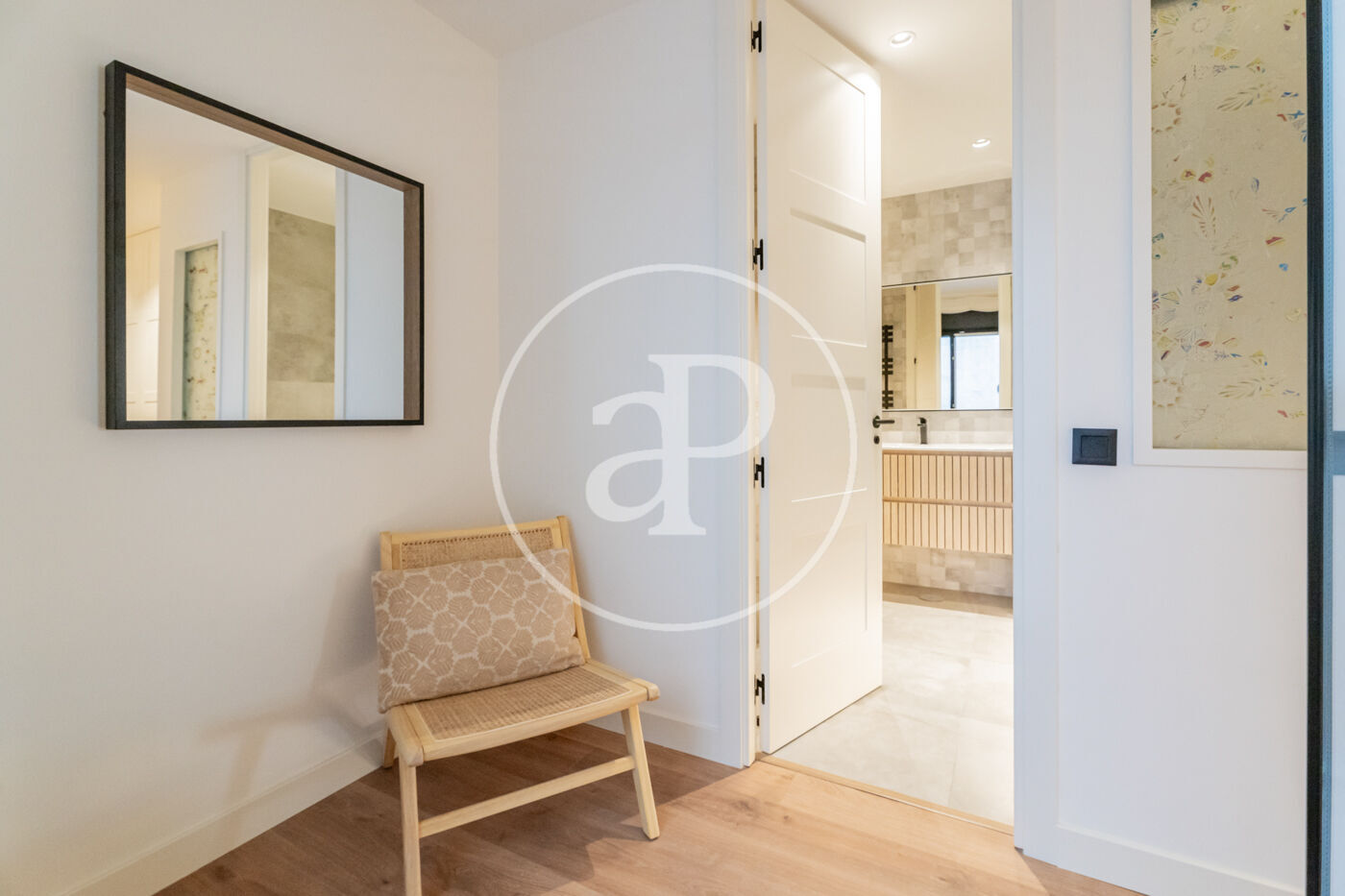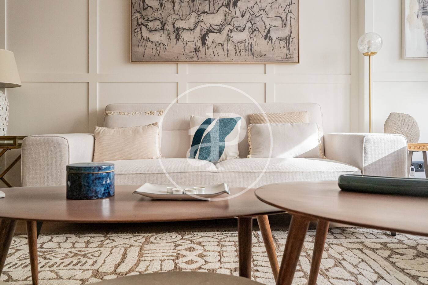 In one of the most prestigious streets of the Barrio de Salamanca, in Don Ramón de la Cruz, APROPERTIES offers this magnificent and exclusive home that combines elegance, serenity and a design carefully designed to enjoy every moment. Located on a bright fourth floor, the property consists of 196m2 built, has been completely renovated with the highest qualities, designed with a distinguished interior design and furnished with a selection of beautiful and elegant pieces that elevate each room. The property in which it is located is a building with large entrance hall elegant and stately and that offers amenities difficult to find in the area: community pool to enjoy the summer in the heart of Madrid, physical doorman, and a large garage with direct access. An urban oasis in one of the city’s most desirable enclaves.