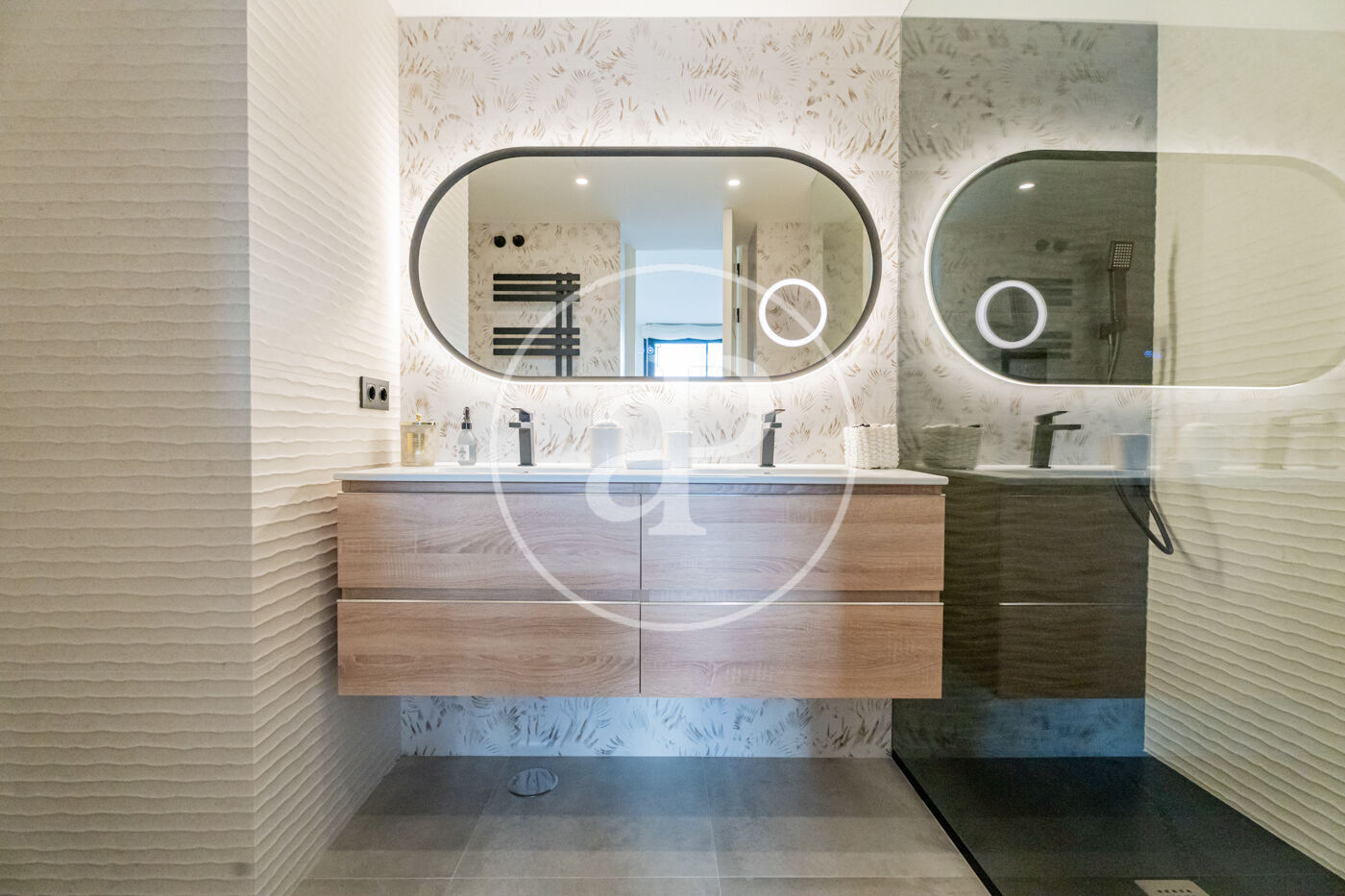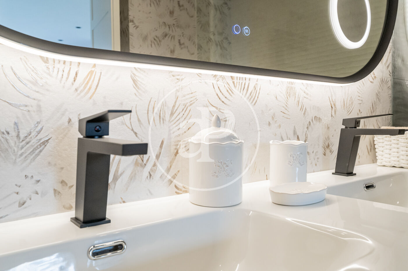The finishes elevate this house to a higher level: LED backlit built-in wardrobes, high strength AC6 flooring, smooth walls, solid lacquered doors, motorized shutters and Climalit PVC windows that guarantee insulation, comfort and silence. The air conditioning has also been taken care of in detail, with a Mitsubishi bizone air conditioning system with UVC sterilization, silent and highly efficient. The central heating and hot water community complete a home designed to enjoy in any season.