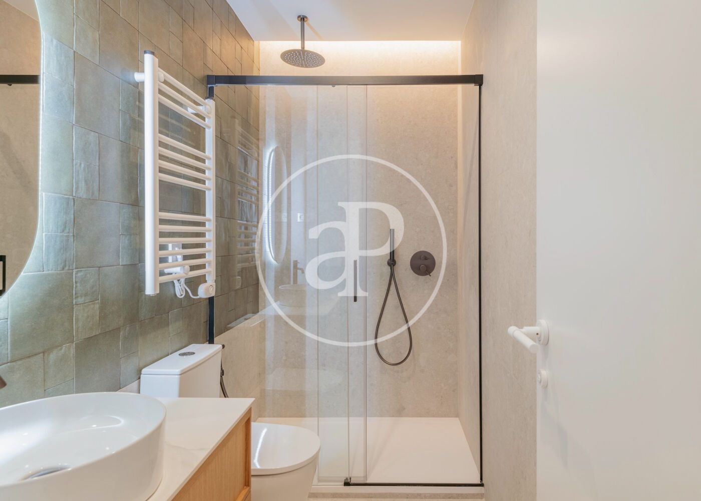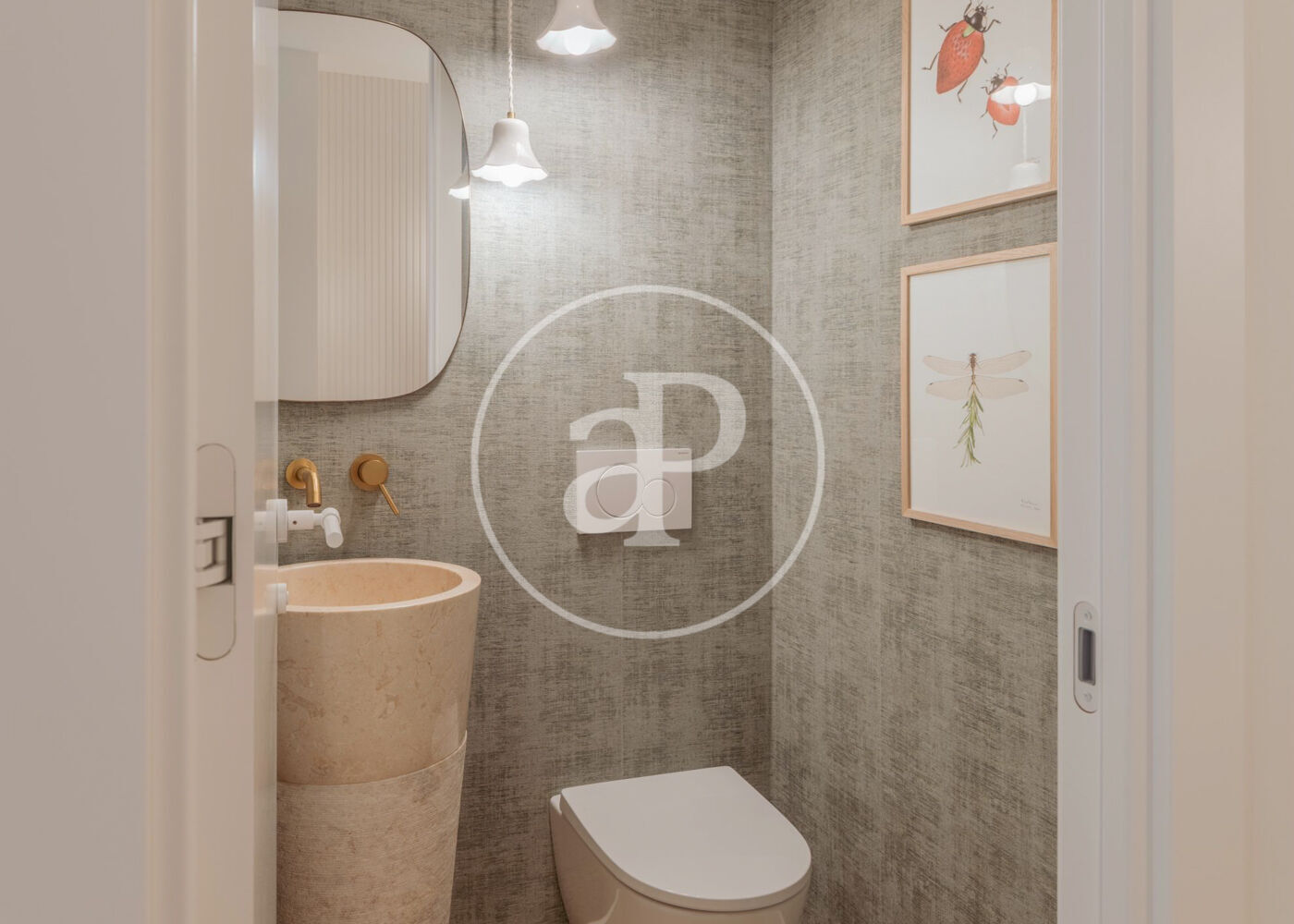The property has been completely refurbished, with high quality materials and an exquisite design. It has an area of 220 m² of land registry, of which 161 m of housing, distributed in a magnificent day area consisting of a living room that gives us access to a beautiful terrace, which gives the main room of the house, a spectacular light. It also has a modern integrated kitchen with a large peninsula, panelled appliances and porcelain worktop, which integrates perfectly with the living area creating a visual image of continuity. It also has a laundry area and a guest toilet.