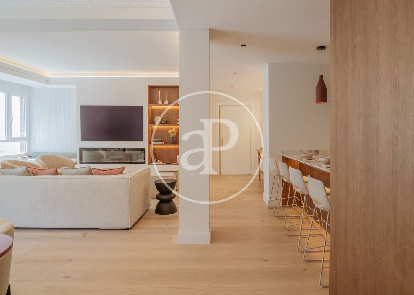 aProperties presents this exclusive exterior flat located on the fourth floor of a beautiful estate in the prestigious neighbourhood of Salamanca. With a surface area of 265 m² according to the land registry, this property stands out for its contemporary design and attention to detail, offering an atmosphere of comfort and style. The property has a spacious living room with dining area and a wonderful integrated kitchen fully equipped with high-end appliances and a marvellous island in the centre. From this room we access to a wonderful terrace with unobstructed views, ideal for relaxing, completing the area, we have a courtesy toilet. In the more intimate area there are four spacious double bedrooms, (two of them with en suite bathrooms) in total three complete bathrooms plus the toilet, guaranteeing privacy and comfort.  The property also has a storage room and laundry area.  Currently, the flat is in the process of being refurbished and will be delivered completely refurbished and furnished, ready to enjoy. Every corner has been tastefully designed, ensuring a cosy and functional space. The area of Goya, within the exclusive Salamanca neighbourhood, is one of the most privileged enclaves in the capital. Its excellent location, close to the emblematic Retiro Park and just a few metres from the Golden Mile, and the advantage of being within walking distance of the best restaurants, shops, leisure areas, schools, hospitals, green areas and all the necessary services, make it one of the most prestigious and sought-after areas of Madrid, both as a permanent residence and as a highly profitable investment purchase. It is worth highlighting the advantages of this area due to its network of connections through numerous public transport lines and easy access to the M30. Can you imagine living here?