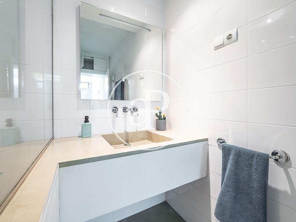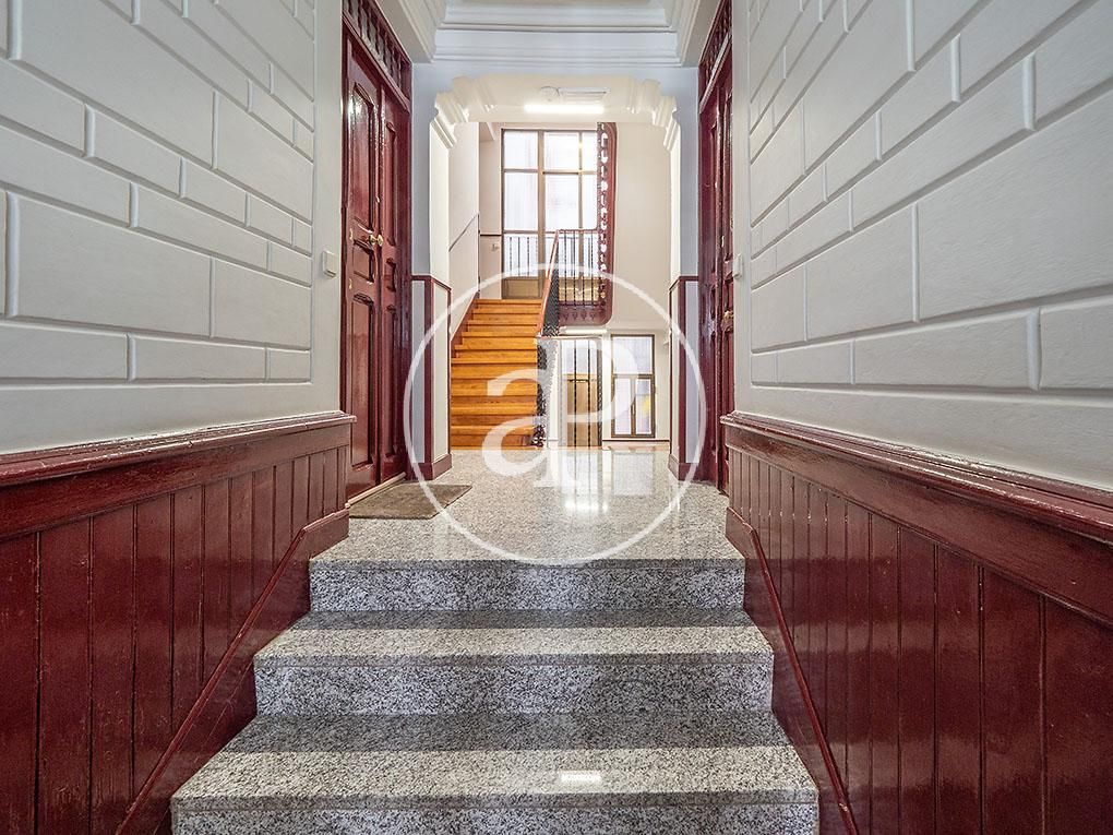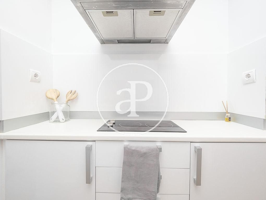 This beautiful apartment of 70 m² is located in the neighborhood of Poble Sec, in a very quiet street, near the Parc de Montjuïc and 5 minutes from the Parallel metro stop. It is a Principal (first real) located in a typical royal estate architecture of Barcelona of the early twentieth century, very well maintained and restored. The floor opens to the façade of Tapioles Street with a continuous balcony that goes from side to side and gives a lot of light to the living room and one of the rooms. The integral reform has been made with a modern style but at the same time trying to preserve and maximize all the unique architectural features of its time. It has very high ceilings, preserved in their original format with metal beams and classic Catalan ceramic vaults. The original hydraulic mosaics, with different geometric patterns and colors in each space, have been preserved and restored almost in their entirety. They have also been able to maintain almost all the woodwork, incorporating double glass with camera. In the area of the kitchen and the bathroom two new aluminum carpentries have been lacquered in matt white. The space is distributed in a very functional and compact way, without corridors or corridors. From the entrance door, through a small hallway you can access the bathroom, which is very spacious and comfortable and gives access to a laundry room where the electric heater and the connection to install the washing machine are located. This same lobby opens onto a large open space where the kitchen is located, with a bar with stools and the dining table. Crossing two arches, this space communicates with a large and bright room from which you can access the outside balcony. The two double rooms are accessed from the common area, one is Tapioles Street and the other has a balcony to the interior patio, both are equipped with fitted wardrobes. The flat has been completely renovated, all the water, sanitation and electricity installations have been made new. The living room and the two bedrooms have hot / cold air conditioning machines. The kitchen is equipped with integrated fridge and dishwasher, oven, extractor hood and induction hob. The apartment is delivered completely furnished. AVAILABLE FROM MAY. YOU CAN VISIT NOW.  * In compliance with Law 12/2023 and Law 18/2007, we inform that