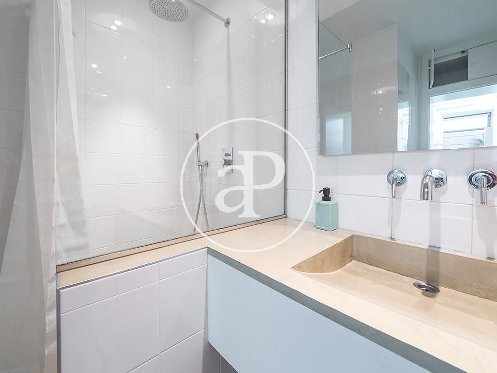 In one of the best neighborhoods of Madrid, the Barrio de Salamanca, located between the central shopping streets of Goya and Jorge Juan, we find this excellent renovated apartment of 54m² located in an elegant building with a classical façade. It is a very bright basement, which has no construction in front allows the entry of light to all rooms of the house. Its cozy and practical distribution consists of a living room with double height in which the upper space has been used with windows to the outside to create a work / reading area with suspended glass floor. The sleeping area consists of a large bedroom with dressing room. The apartment has a bathroom and kitchen independent of the rest of the rooms and equipped with all appliances. It also has a 6 m² patio where the laundry area and several mezzanines are located in several rooms. The apartment is provided with individual gas heating, climalit windows and armored main door. The renovation has been carried out with the best qualities including details of indirect lighting led and false ceiling that gives it a comfort and warmth that makes this apartment a unique and special product. It is an ideal option both to live and to obtain high profitability given its strategic location.
