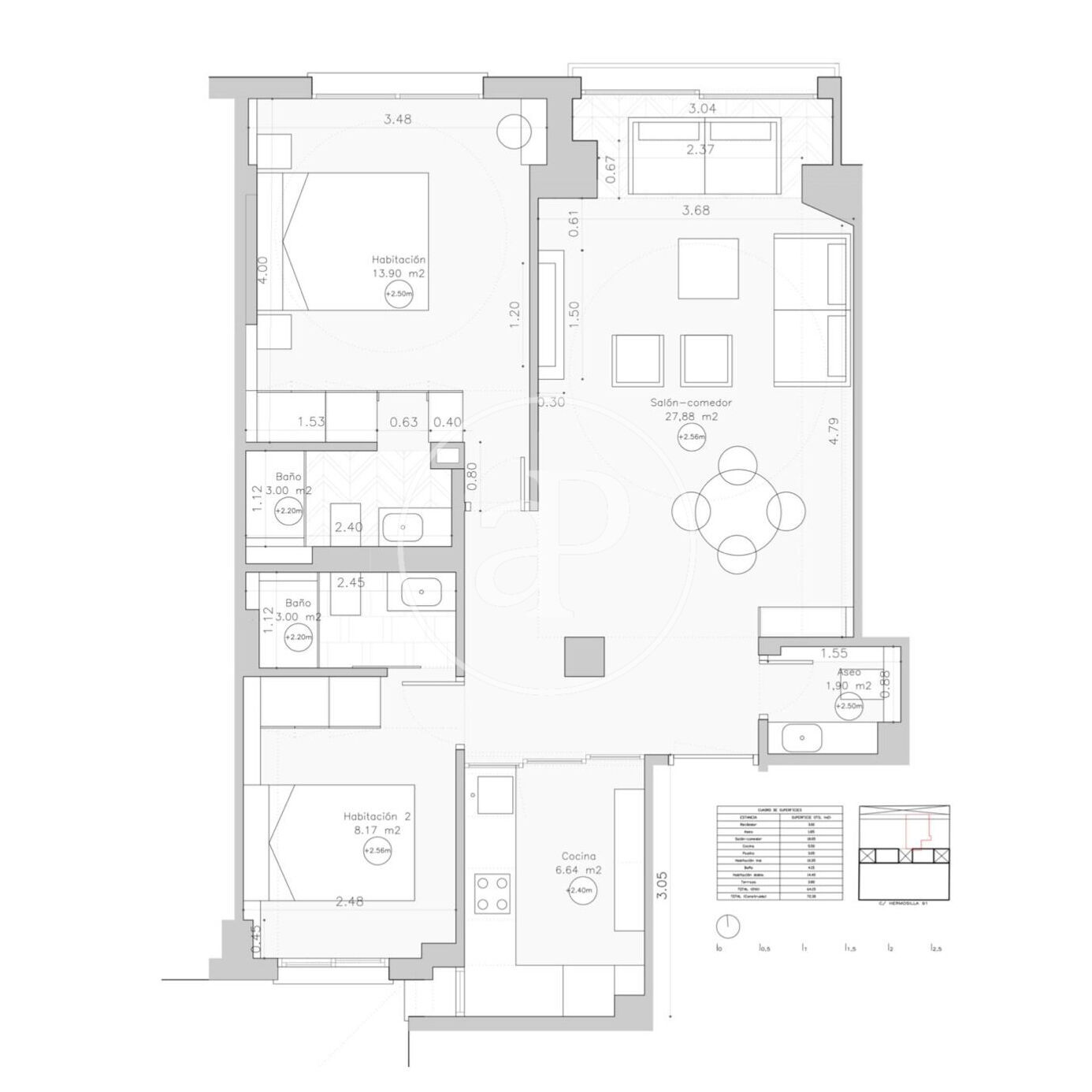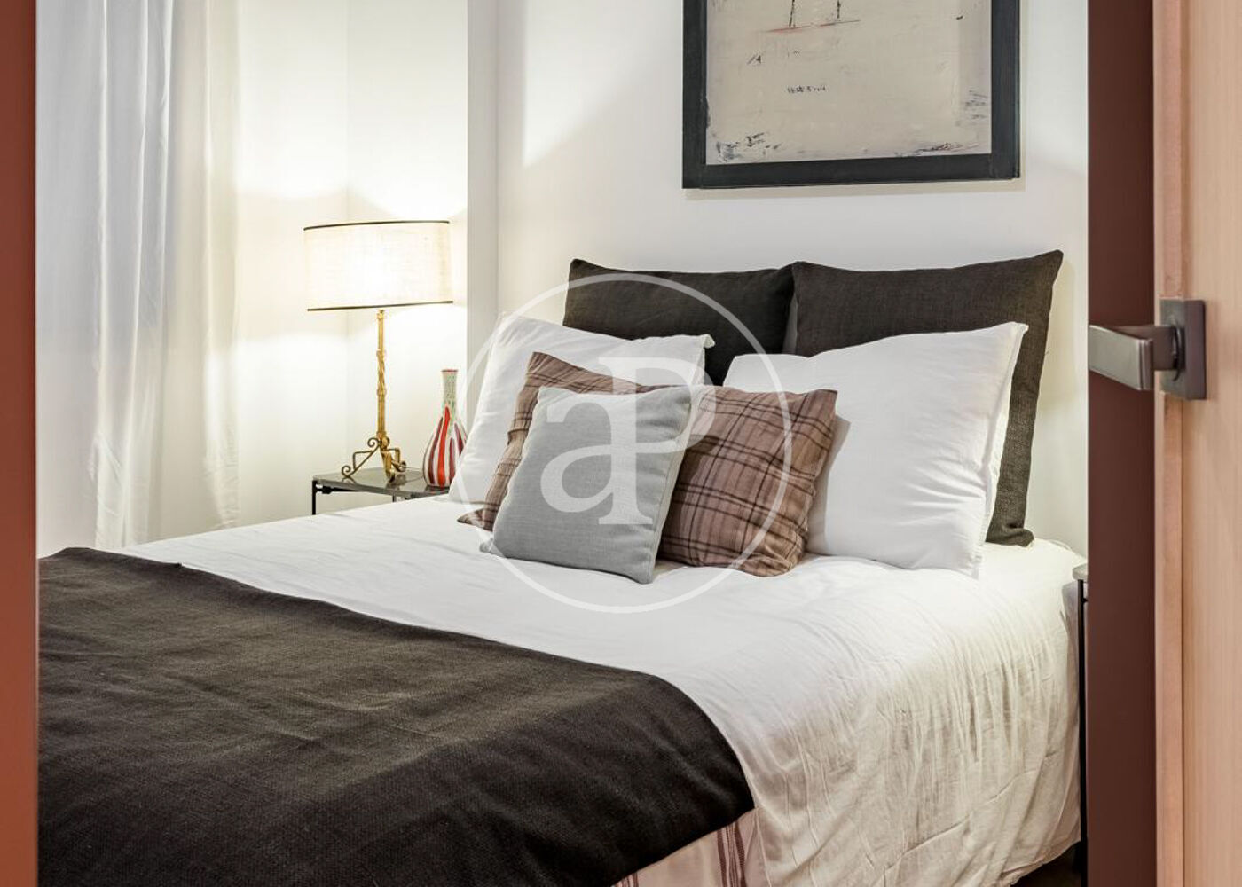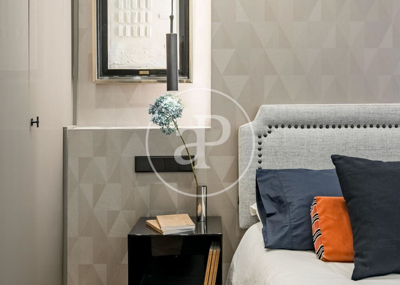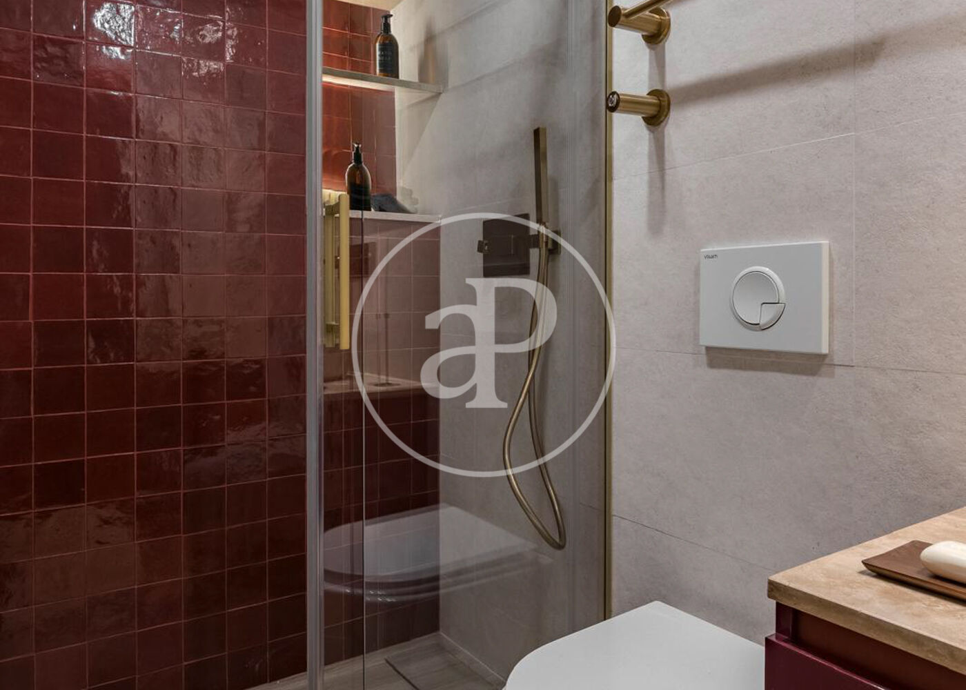 The space is highly optimized, as there are no hallways; you are greeted by a good-sized hall that distributes all the rooms. Both bedrooms have floor-to-ceiling wardrobes. It has central heating and ducted air conditioning. The materials and finishes are of high quality and reflect attention to detail: wood floors with a natural matte finish, designer faucets and accessories, decorative lighting. The color palette is elegant and full of character: shades of white, light gray, natural wood, black and gold accents.