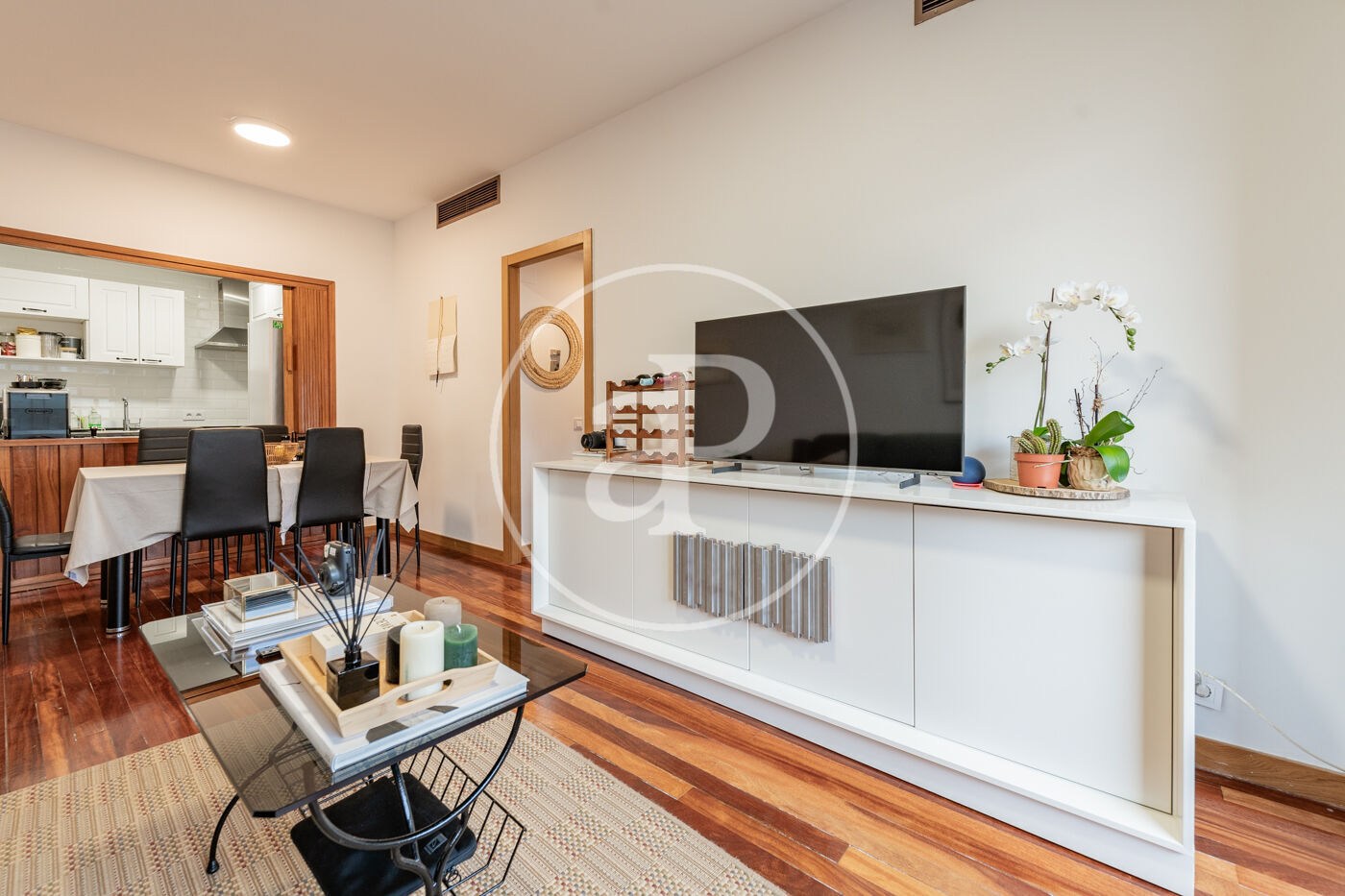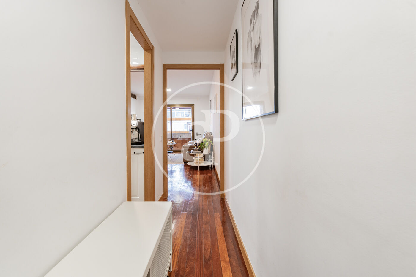 The living area offers a spacious and bright living-dining room with direct access to a pleasant terrace, ideal for enjoying the outdoors in a privileged urban setting.