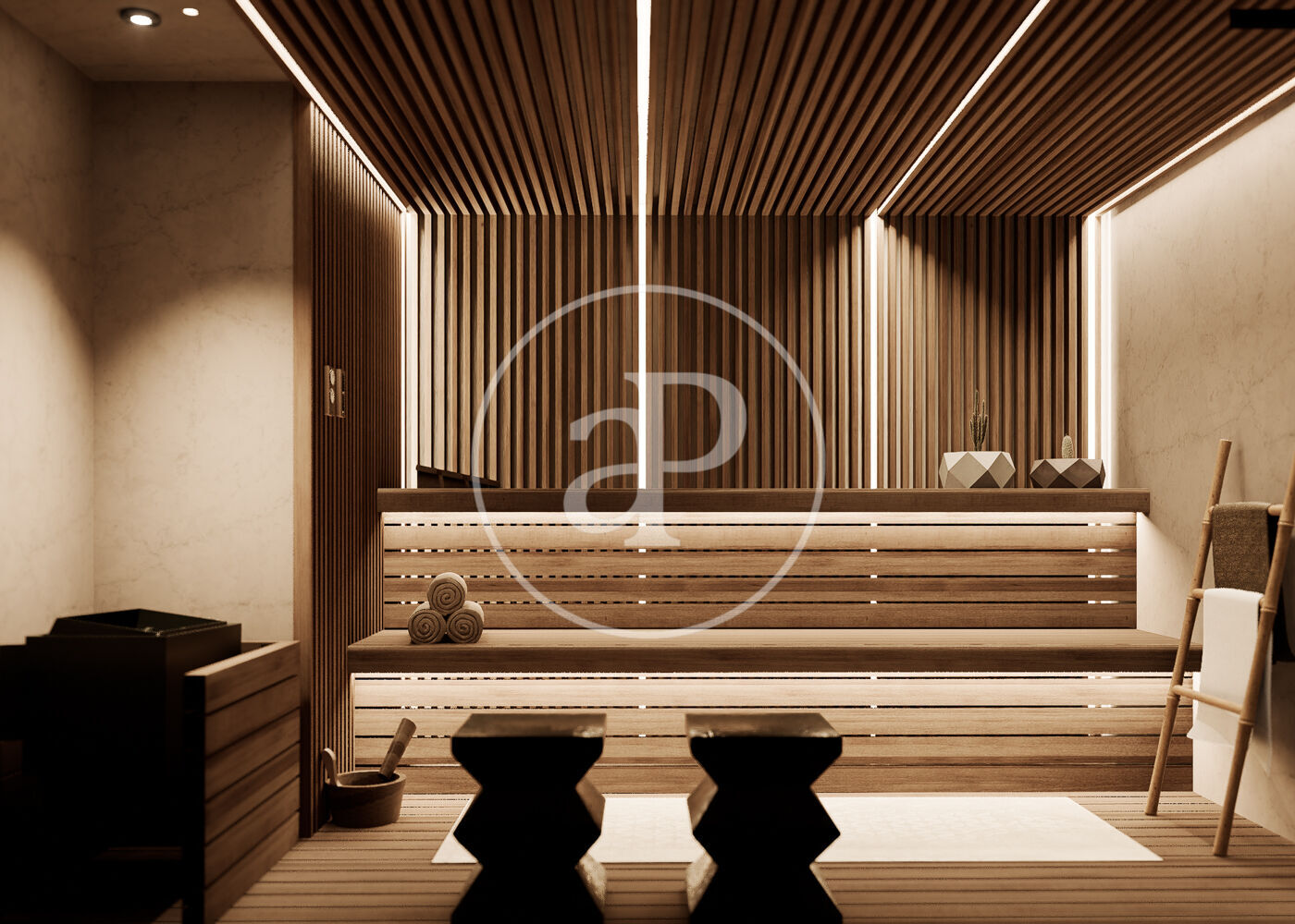 Designer kitchens and bathrooms are equipped with high-end materials and solutions, where functionality and aesthetics are perfectly balanced. Common areas and premium amenities, designed to redefine urban well-being: a heated lap pool, a fully equipped gym, a sauna, and chromotherapy spaces, creating a true private oasis in the heart of the city.