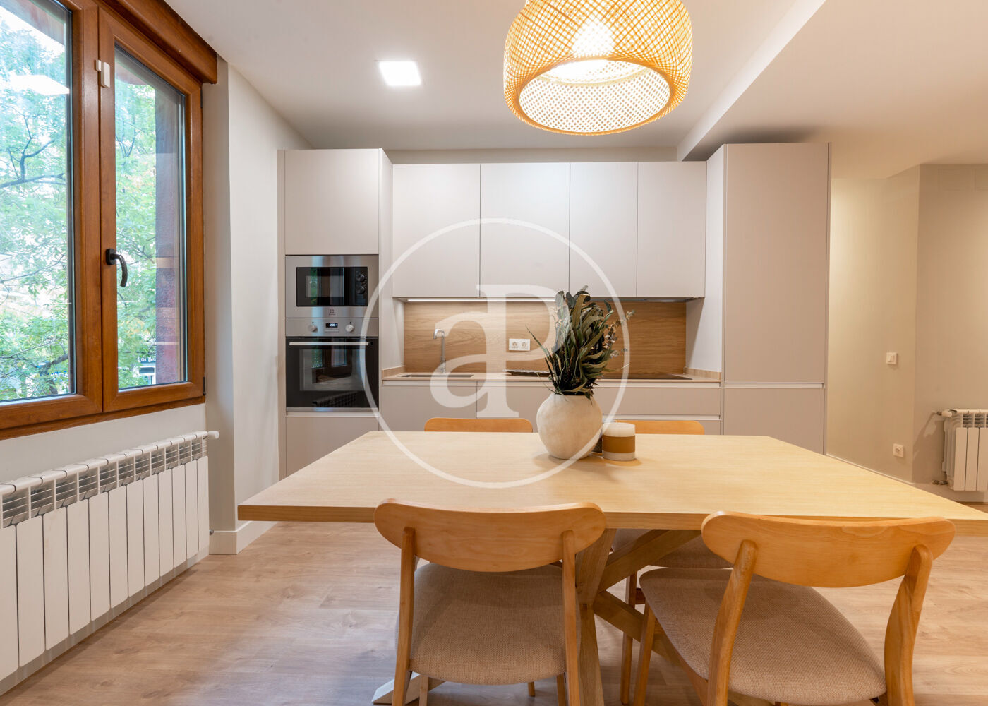 aProperties Real Estate presents you EXCLUSIVELY this magnificent property: Fantastic and very functional first floor apartment, completely renovated, 154m2 built, completely exterior, very bright, with terrace of 50m2, beautiful and well-kept garden of 150m2 that turns practically the entire house, and direct access to the communal area with pool (with few neighbors). The apartment has an entrance hall, large living room with fireplace, fantastic kitchen with separate water area, large terrace and beautiful and flowery garden visible from all rooms, through its large windows. It is the only house in the building with direct access to the communal area with swimming pool. The first room we find is the charming suite, with its large window from which you can see the back of the garden price and closet area and beautiful bathroom. The other 3 double bedrooms (previously 2), are also exterior and bright, and have a full bathroom to share. The house also has the 2 best parking spaces, exceptionally large and in front of the access door to the community, and a practical storage room. QUALITY FINISHES: parquet floors, individual gas heating radiators, air conditioning, exterior carpentry with double glazing of the highest quality, interior woodwork in white lacquered wood, fitted closets, alarm, and many more details.  LOCATION: Located in a privileged and exclusive area of l'Eixample, it has excellent communications with the main roads with unbeatable access to Barcelona and surroundings. The area of l'Eixample stands out for its quiet residential areas and characterized by its proximity to a wide range of services, stores and medical services just a few minutes away.  Do not hesitate to contact the expert team of aProperties Real Estate for the search of your new home!