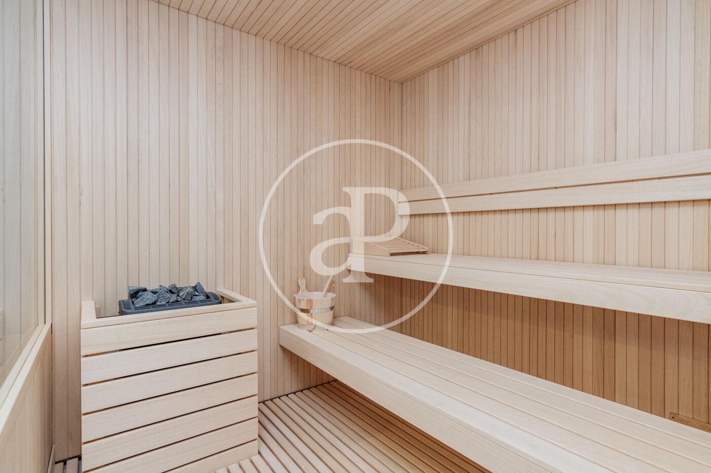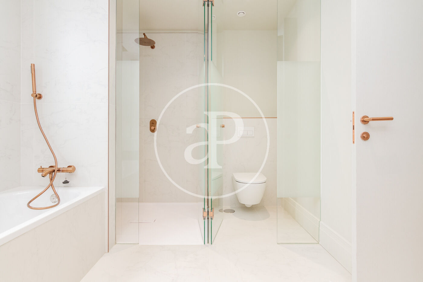In addition to the private areas, you will be able to enjoy the amenities offered by the impressive rooftop for common use, with lounge areas and a swimming pool, all with 360-degree panoramic views of the magnificent Madrid skyline. Likewise, the basement of the building houses a gym and a spa for common use, equipped with sauna, cold bath and relaxation rooms. A perfect space to enjoy moments of tranquility.