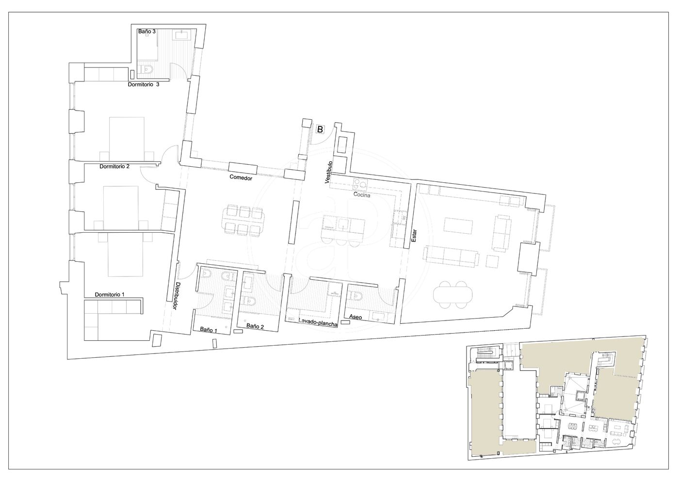 In the heart of Madrid, surrounded by the best restaurants, stores and places of cultural interest. Excellent connection to public transportation. Modern and bright homes: