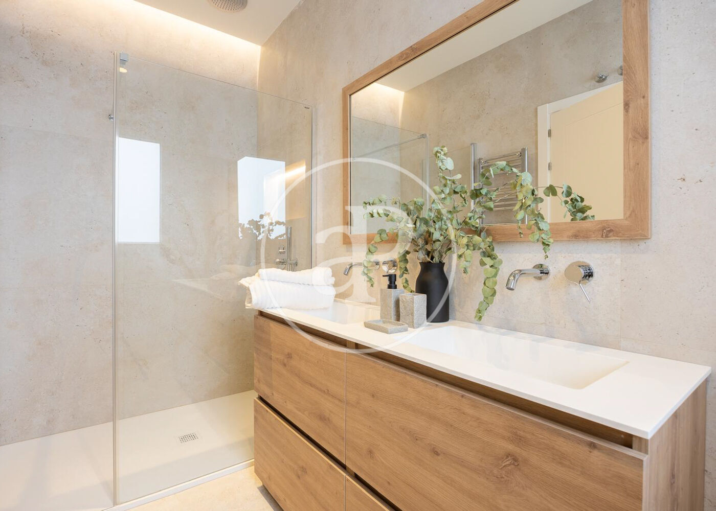 Aproperties exclusively presents this little gem for sale in Palmanyola! Located on a 500-square-metre plot, this bright newly built property offers the perfect setting to enjoy peace and privacy, with a touch of modernity and practicality. It features a beautiful garden with plenty of space to relax and entertain, with fruit trees, olive trees, and a natural stone wall made from the property’s own land, as well as a contemporary design pool ideal for sunny days, creating a serene and natural atmosphere. The interior is very spacious and bright, with large windows allowing natural light to flood every corner. It offers 2 large bedrooms (with the possibility to extend to 3 or more), 2 full bathrooms, one of them en suite. From an open-plan kitchen leading to a large living-dining room with a cosy fireplace, it is perfect for sharing moments with family or friends. The house also has generous setback areas, a barbecue zone, and a terrace for big events and celebrations. A welcoming villa in one of the best locations in Palmanyola. This charming property is just 5 minutes on foot from all the village’s services, offering extreme comfort while ensuring peace and quiet. Palmanyola is a very safe and well-situated residential area only 10 minutes from Palma, with all amenities: supermarkets, restaurants, pharmacy, veterinarian, beauty salon, post office, schools and nurseries, and many sports facilities. It also offers access to the large Son Termes Golf Club right next door. Can you imagine living here? We look forward to your call!