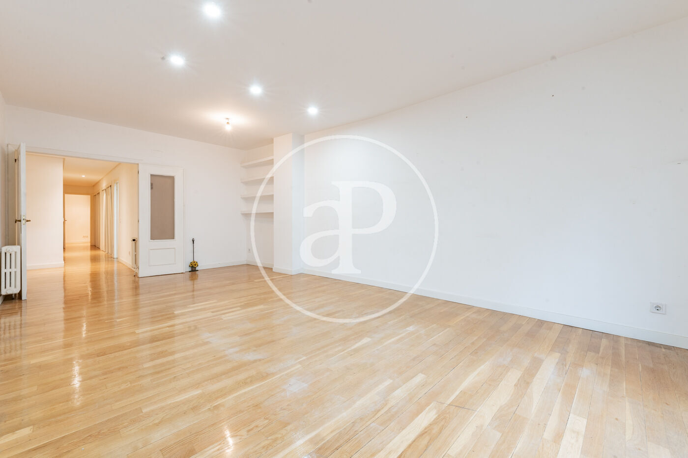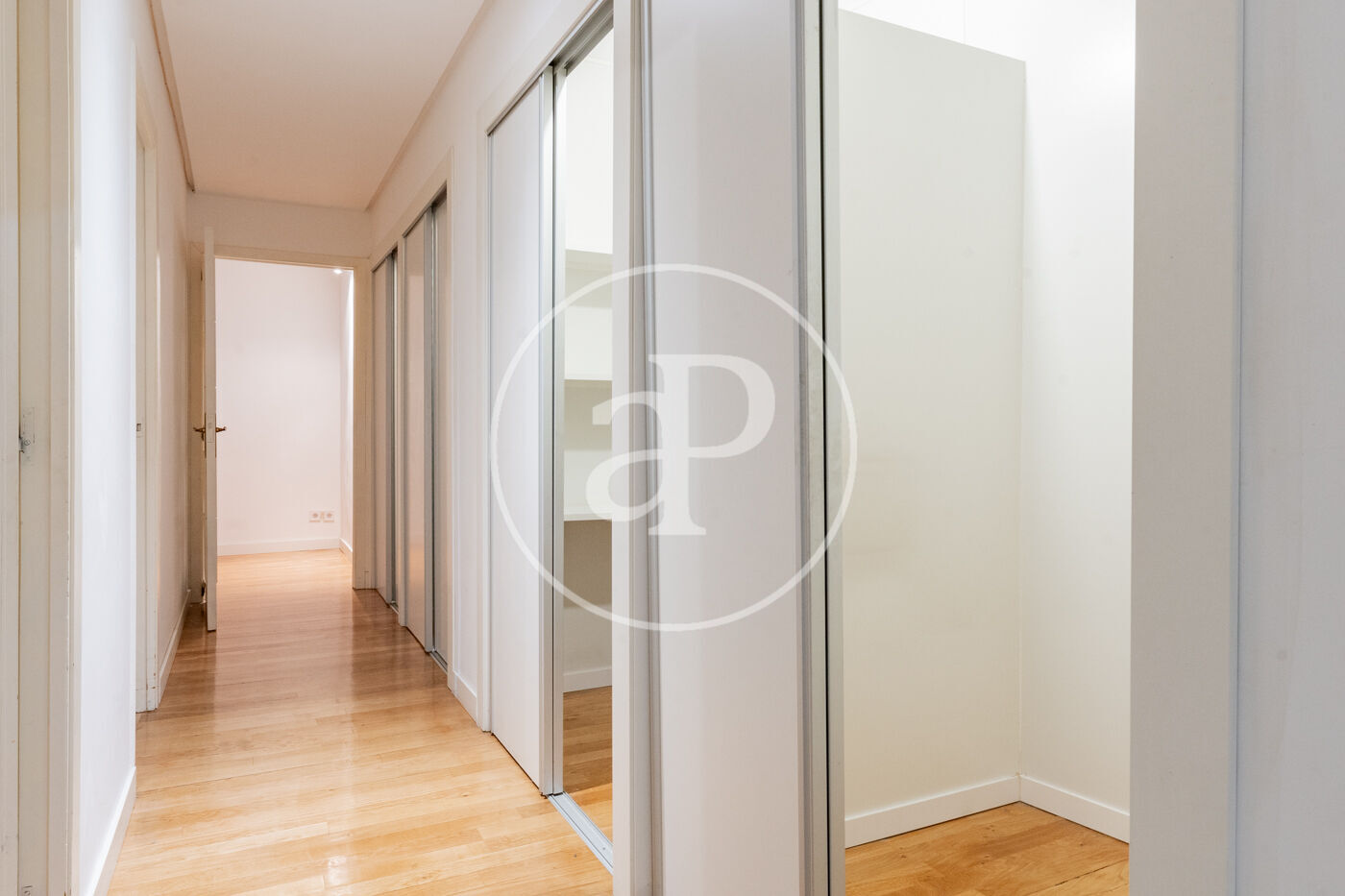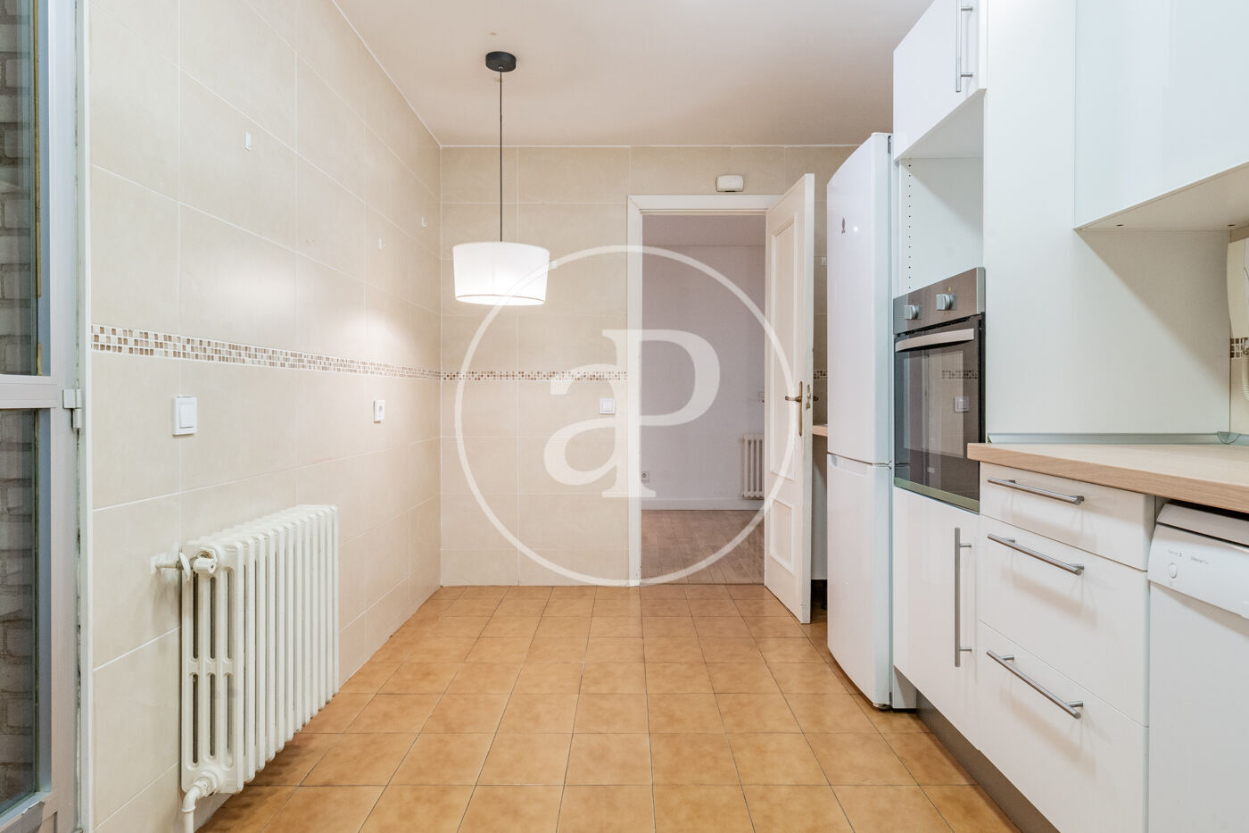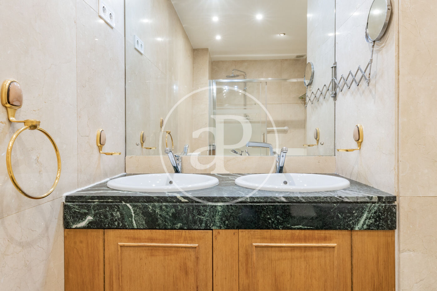 The apartment is characterized by its spacious rooms, large windows overlooking the street, and excellent layout. It has no load-bearing walls, which would facilitate numerous renovation possibilities. Currently, it features a magnificent living room, a dining room, a huge independent kitchen with access to a practical terrace, and three spacious double bedrooms, the master bedroom being exterior-facing with an en-suite bathroom, a second full bathroom, and a guest toilet. The apartment is ideal for four bedrooms.