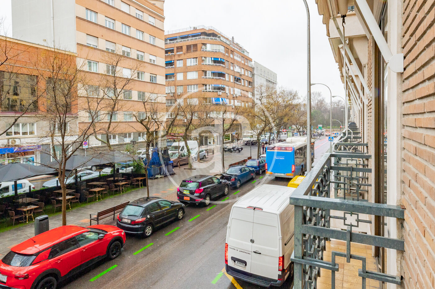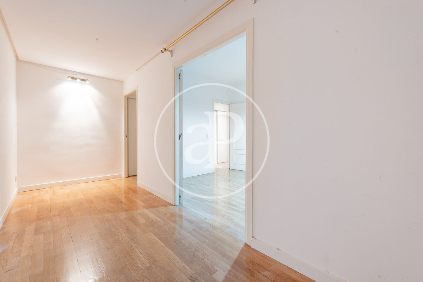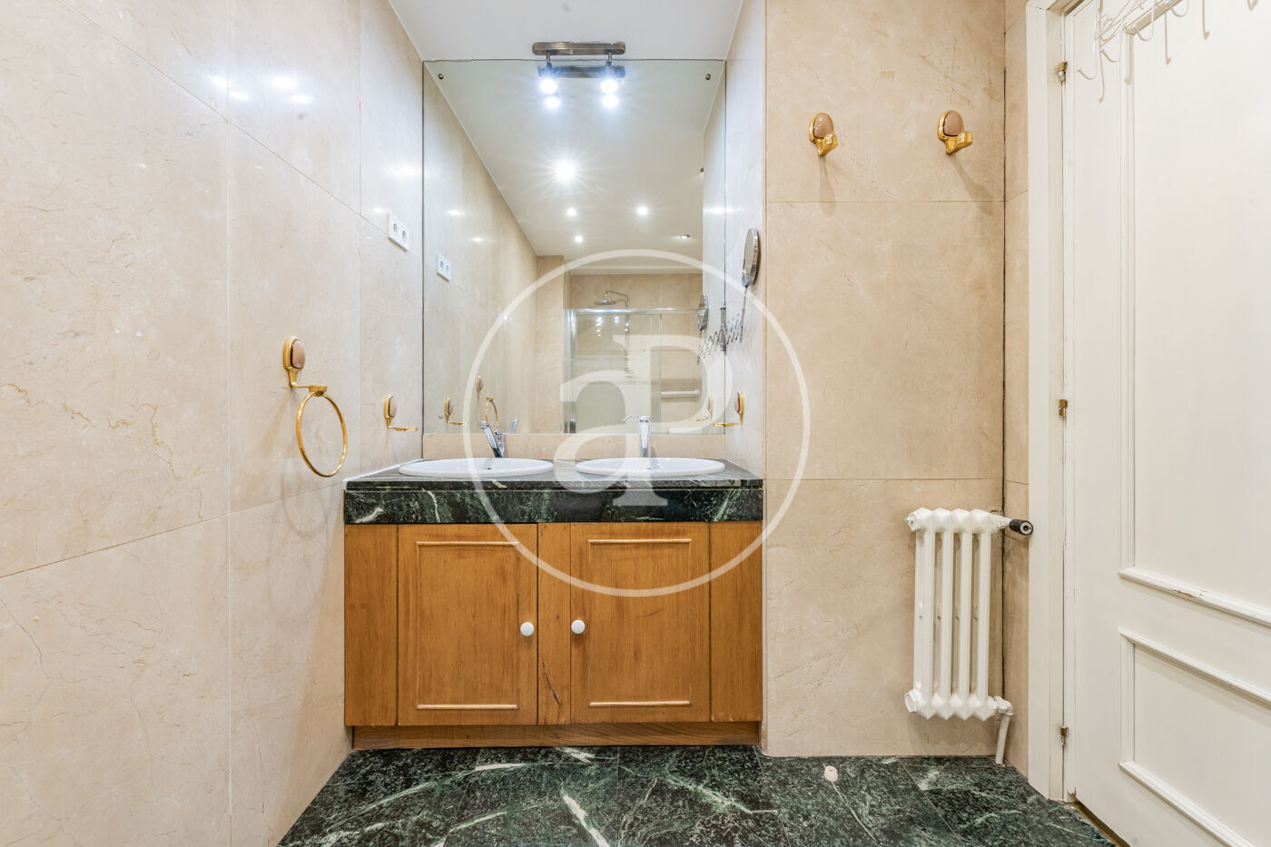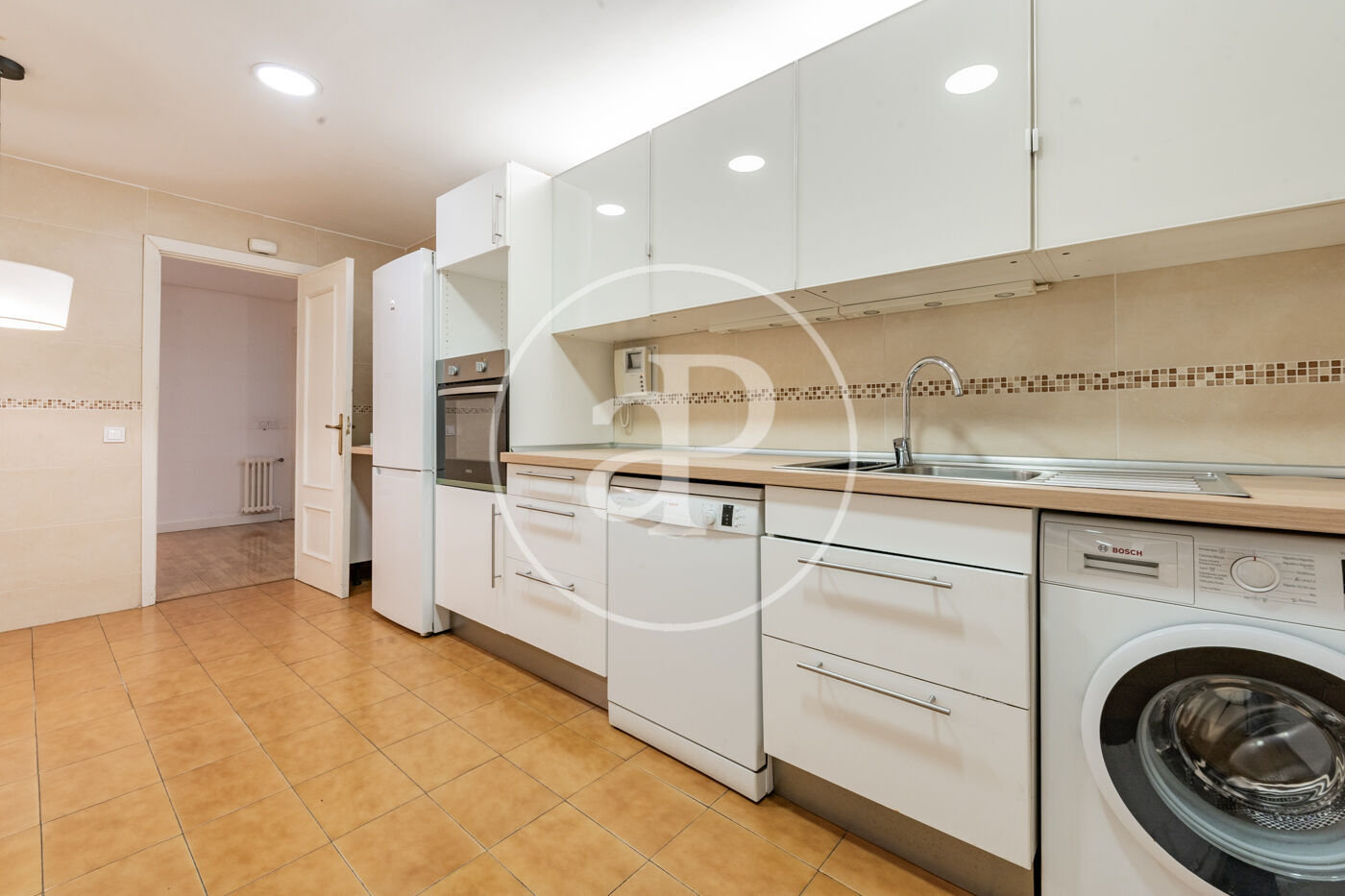 The apartment is characterized by its spacious rooms, large windows overlooking the street, and excellent layout. It has no load-bearing walls, which would facilitate numerous renovation possibilities. Currently, it features a magnificent living room, a dining room, a huge independent kitchen with access to a practical terrace, and three spacious double bedrooms, the master bedroom being exterior-facing with an en-suite bathroom, a second full bathroom, and a guest toilet. The apartment is ideal for four bedrooms.