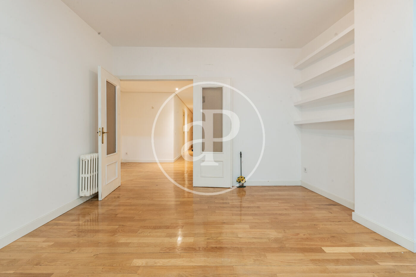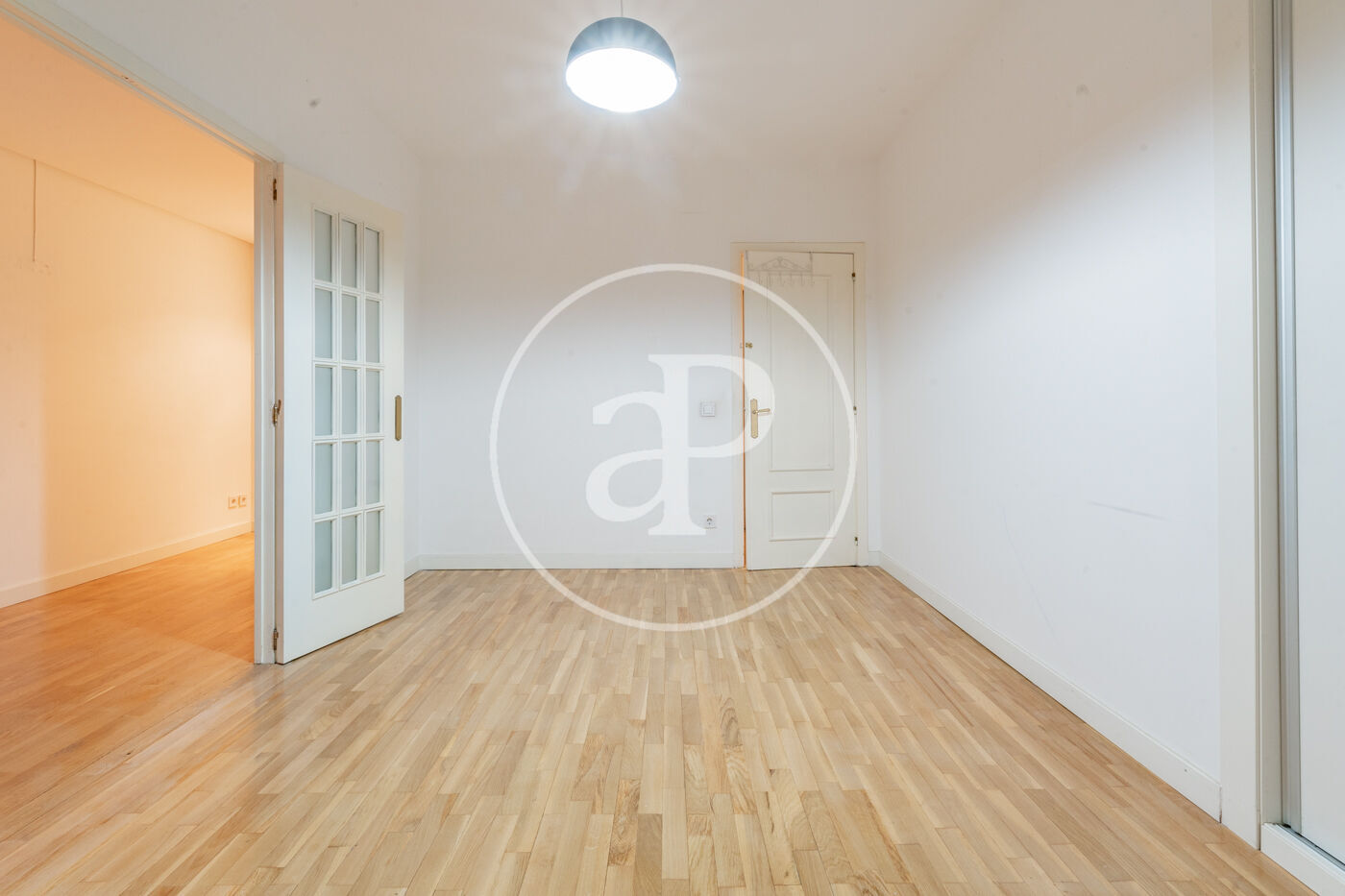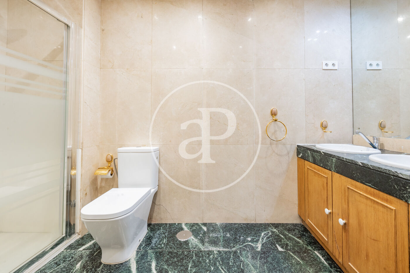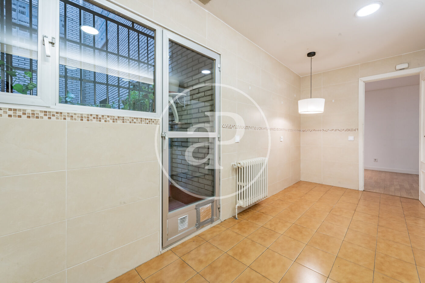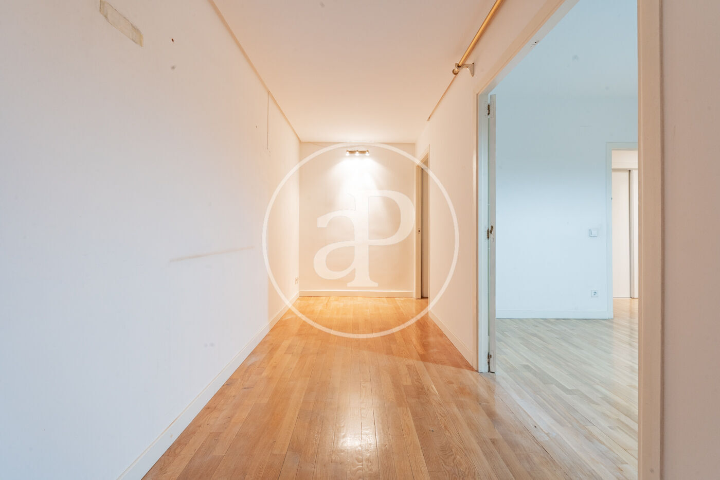 The apartment is characterized by its spacious rooms, large windows overlooking the street, and excellent layout. It has no load-bearing walls, which would facilitate numerous renovation possibilities. Currently, it features a magnificent living room, a dining room, a huge independent kitchen with access to a practical terrace, and three spacious double bedrooms, the master bedroom being exterior-facing with an en-suite bathroom, a second full bathroom, and a guest toilet. The apartment is ideal for four bedrooms.