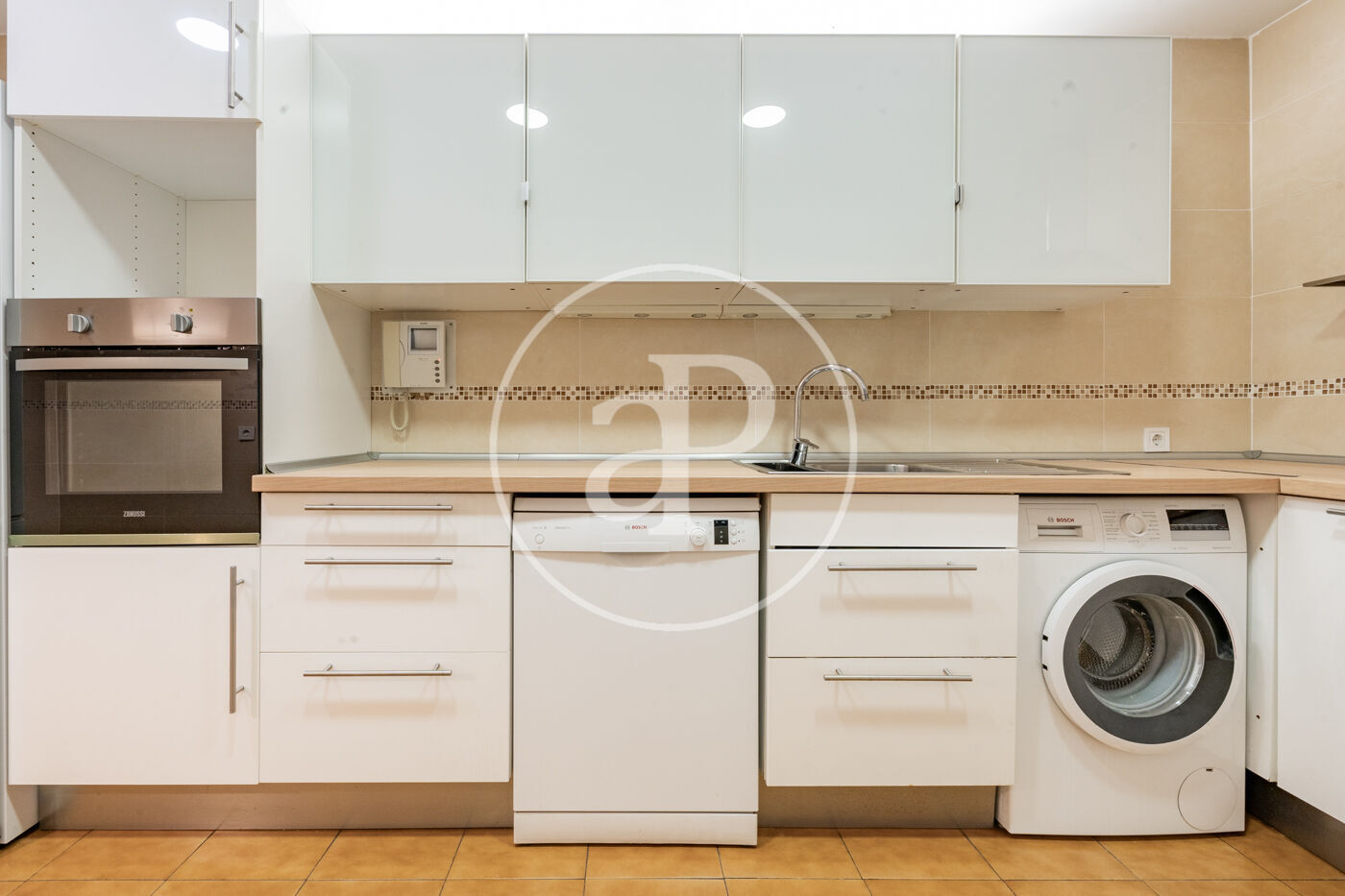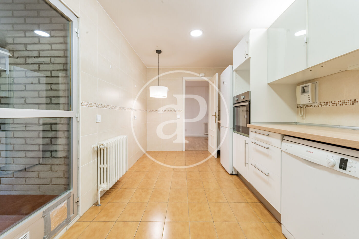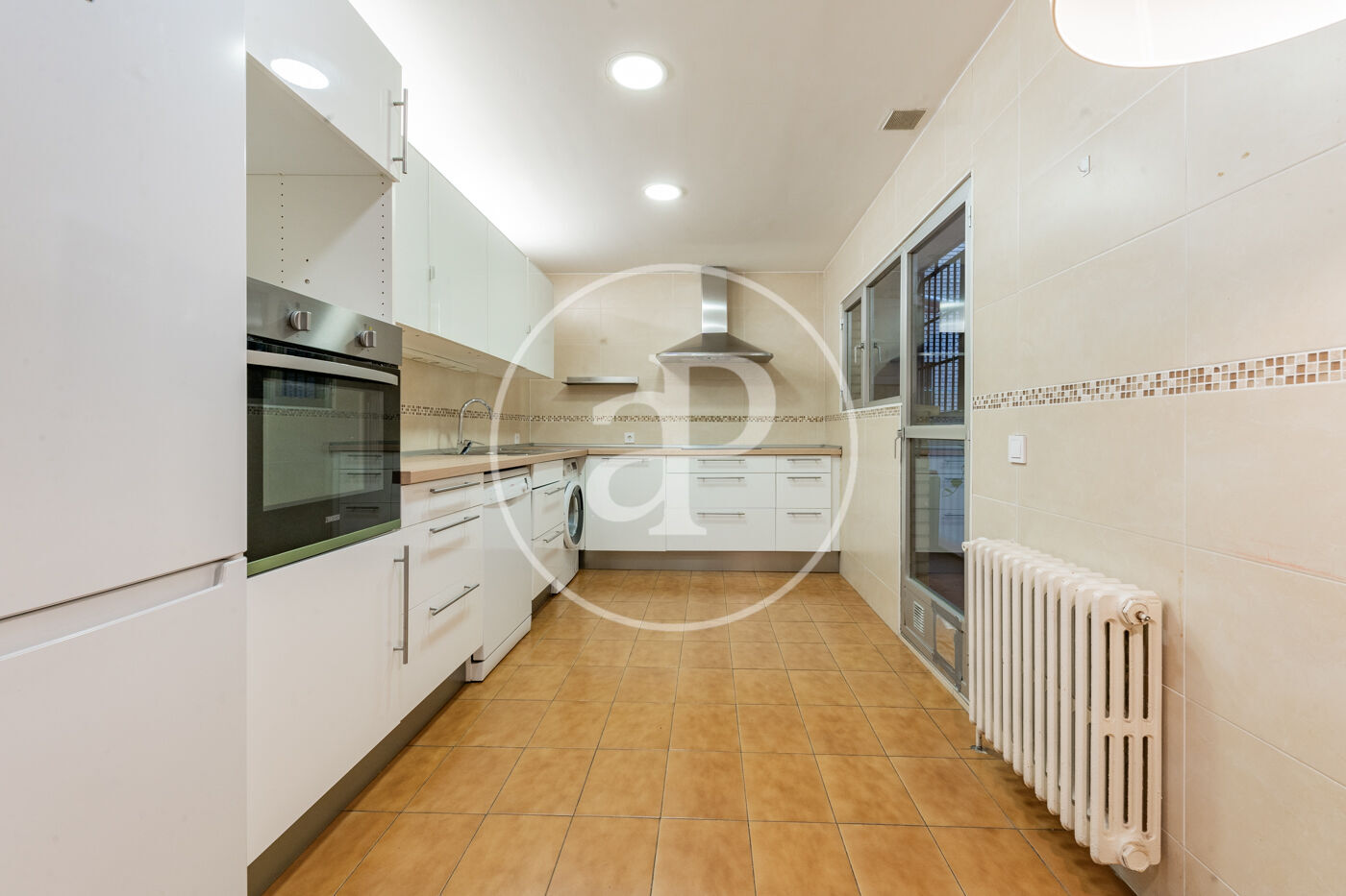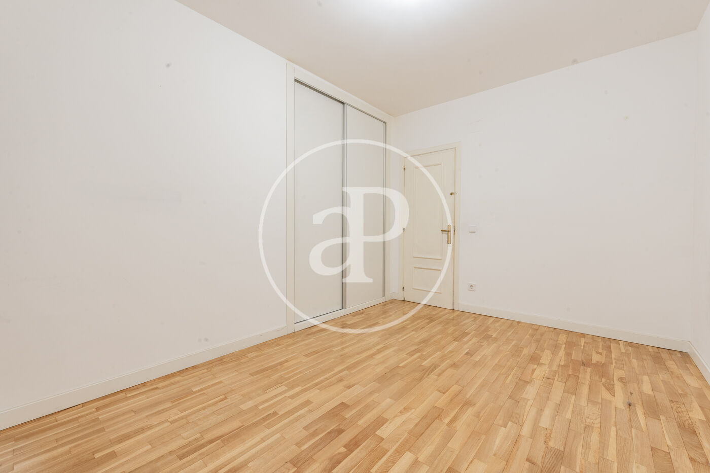 The apartment is characterized by its spacious rooms, large windows overlooking the street, and excellent layout. It has no load-bearing walls, which would facilitate numerous renovation possibilities. Currently, it features a magnificent living room, a dining room, a huge independent kitchen with access to a practical terrace, and three spacious double bedrooms, the master bedroom being exterior-facing with an en-suite bathroom, a second full bathroom, and a guest toilet. The apartment is ideal for four bedrooms.