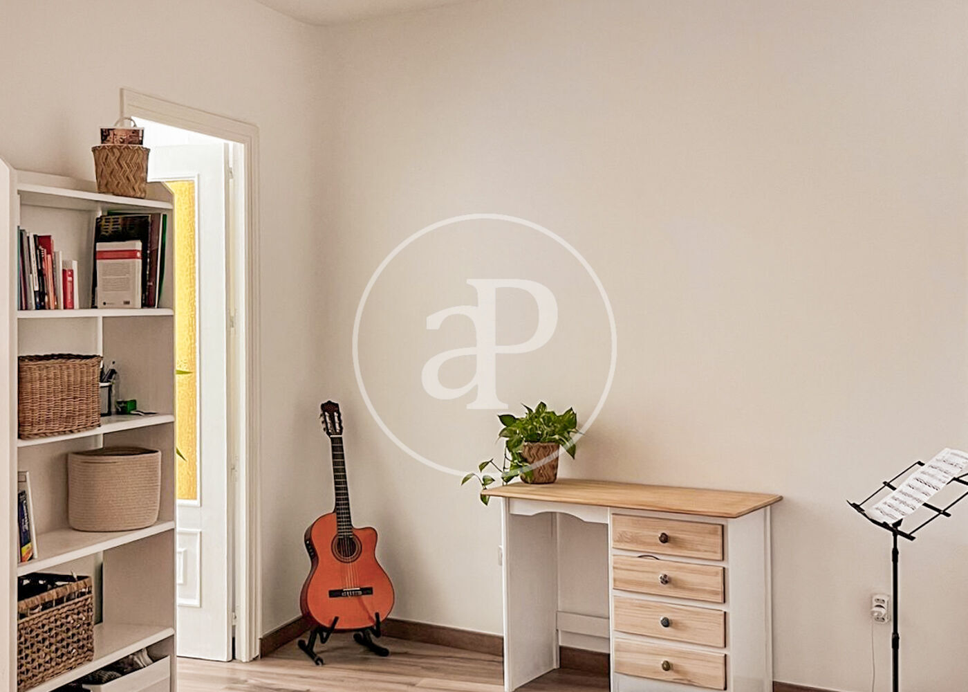 Charming fully renovated brand-new apartment of 90 m² located at the corner of Galileu Street and Av. Madrid, very well connected by public transport and surrounded by services. It is a very special apartment, perfect for those looking for open, airy spaces with a modern, contemporary design, who appreciate authenticity — such as Catalan vaulted ceilings, exposed brick walls, and hydraulic tile floors. Upon entering the property, you are welcomed by a spacious living-dining room with an open-plan kitchen and central island. In front of this room, a large window brings light from a small inner courtyard. From the central space, we access the large lounge, which is very bright, featuring two large windows with balconies and views over the street. The night area consists of 2 bedrooms, the main one and a single one, sharing a bathroom with a shower. Both rooms open onto the bright and pleasant gallery, where you'll find a study area and, at the other end, a unique washbasin in front of the master bedroom. The entire apartment has hydraulic tile flooring, Catalan vaulted ceilings, and stone walls. This combination, together with minimalist and modern finishes, makes this flat a unique and personal space. Heating and air conditioning are provided via splits. The building has a lift, with only two neighbors per floor. It’s a very quiet community.   Ideal for couples and executives. Don’t hesitate to visit!* In compliance with Law 12/2023 and Law 18/2007, we inform thatIndex of R.P.LL: 13,81 € / m2 State reference price 1.204,00 €Rent of the last lease contract: 1.850,00 €