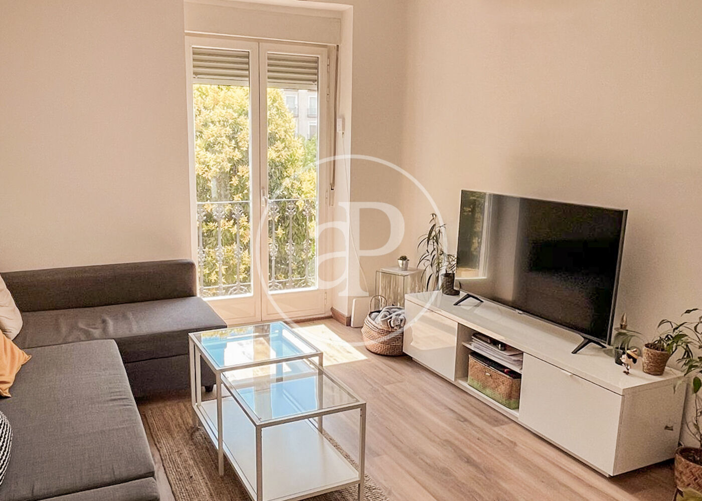 This beautiful apartment is located on a second floor exterior, very bright and sunny, in a good property in the neighborhood of Guindalera, Salamanca district and is ready to move in.  It has a spacious and bright living room facing south, kitchen, two bedrooms and a bathroom. One of the bedrooms and the living room is exterior and with access to an enjoyable balcony-terrace (fit a table and two chairs) to the front, sunny and with beautiful green views. The property has an elevator and has been recently renovated. It also has a parking area exclusively for owners.  The heating is central with individual meters and it also has air conditioning. It is a great opportunity to acquire a renovated apartment, ready to move in or to put in profitability for its high potential, in one of the most demanded areas in the capital.   Guindalera is one of the neighborhoods of the exclusive district of Salamanca. It is characterized by its quiet and residential atmosphere, which combines the charm of the most traditional Madrid with the comfort of modernity and urban life, making it a pleasant and practical place to live.  The area has several parks and green spaces, which makes it attractive for families and people looking for a quiet place to live, but provided with all services, as well as bars and restaurants, and at the same time very connected to universities and companies, as well as the airport and highways, due to its easy access to the M30.  Can you imagine living here?