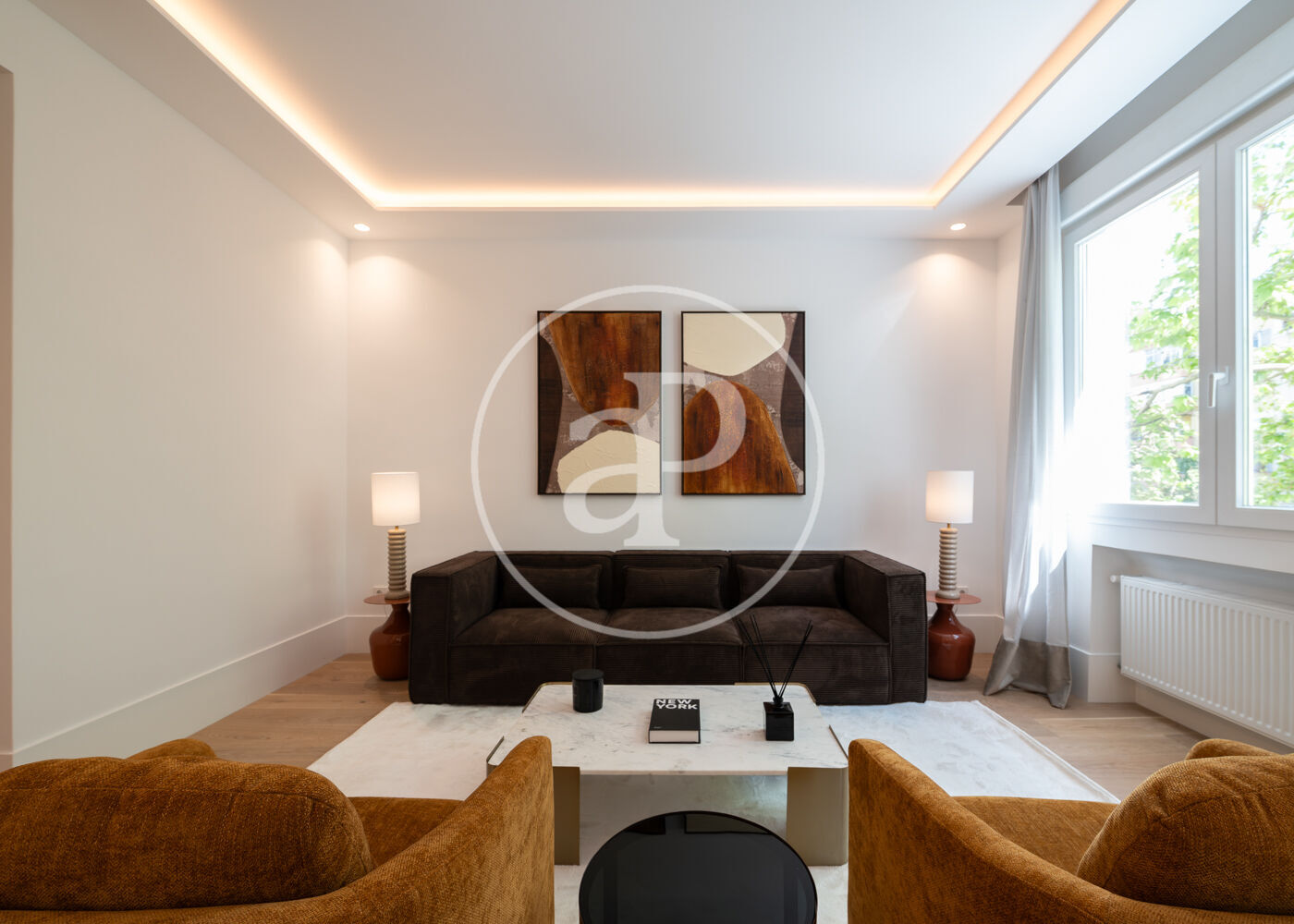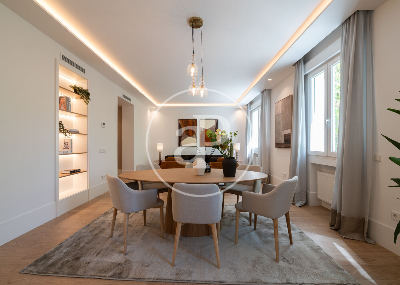 Exclusiva vivienda de 175m2 con zonas comunes de los que 162 m2 son de vivienda según tasación, completamente reformada, ubicada en una 3ª planta exterior situada en una finca representativa y en una de las zonas más consolidadas y mejor comunicadas de Madrid.