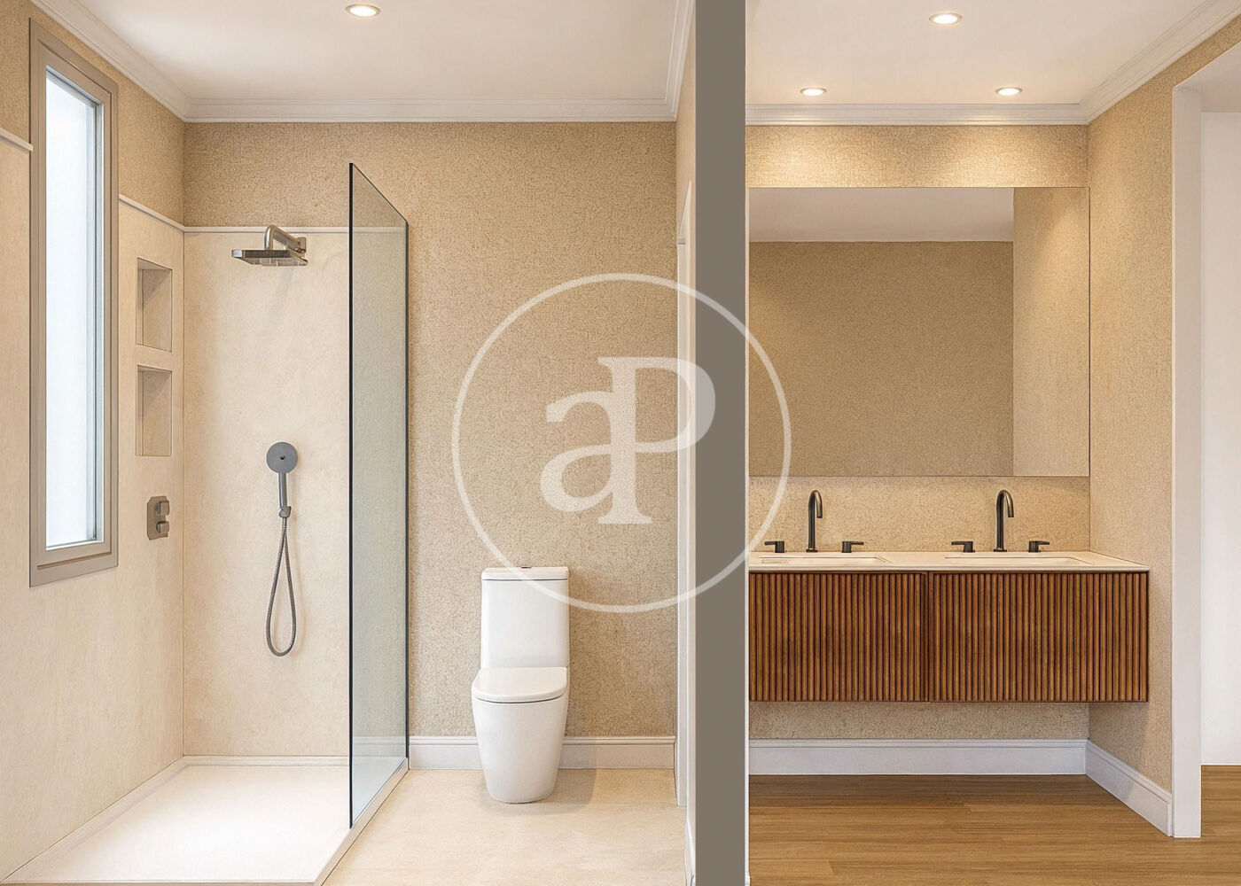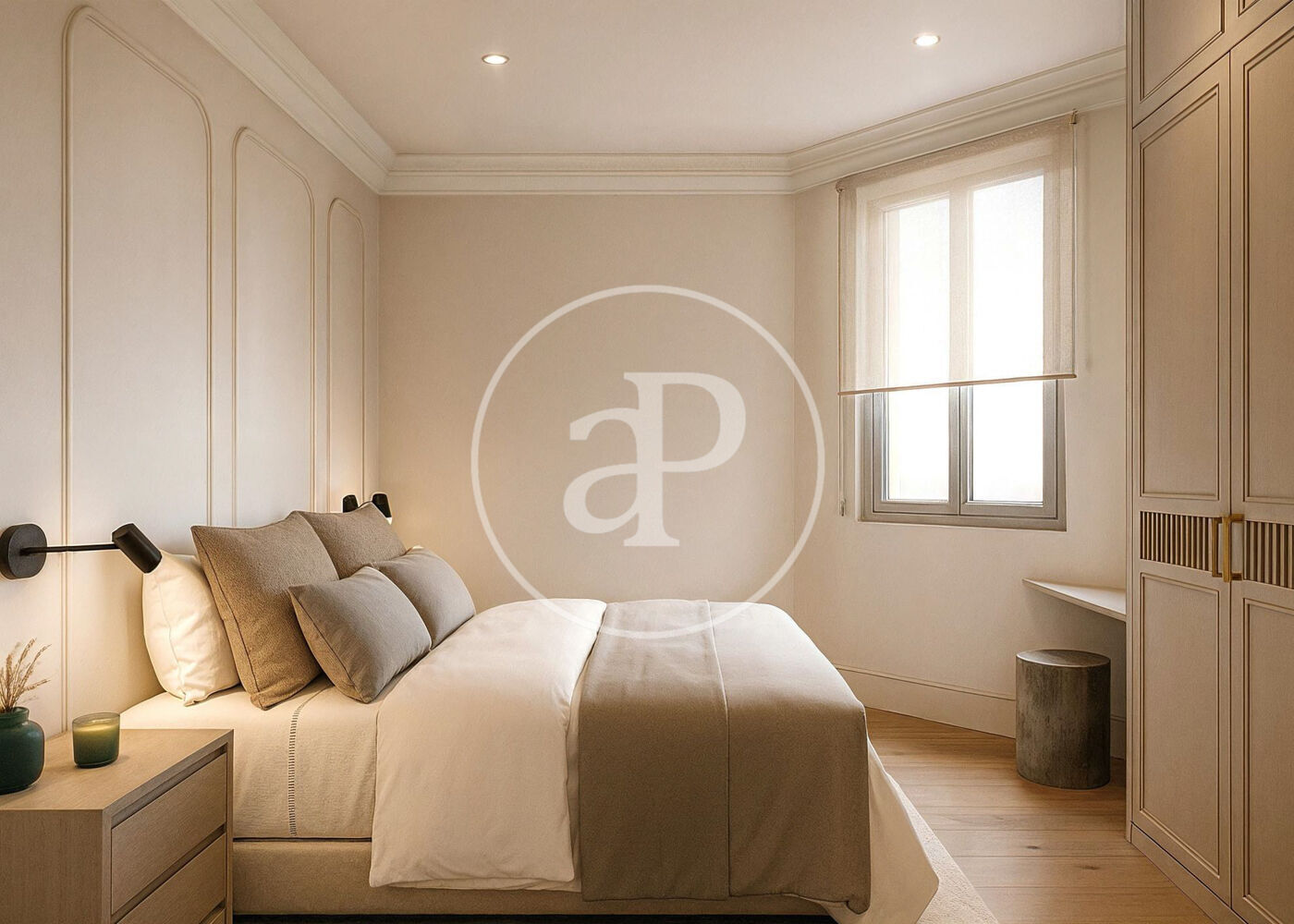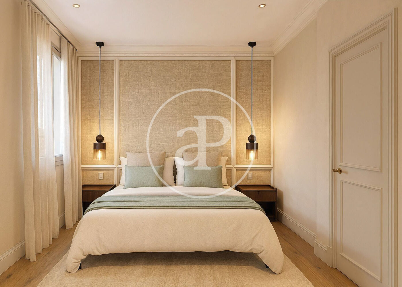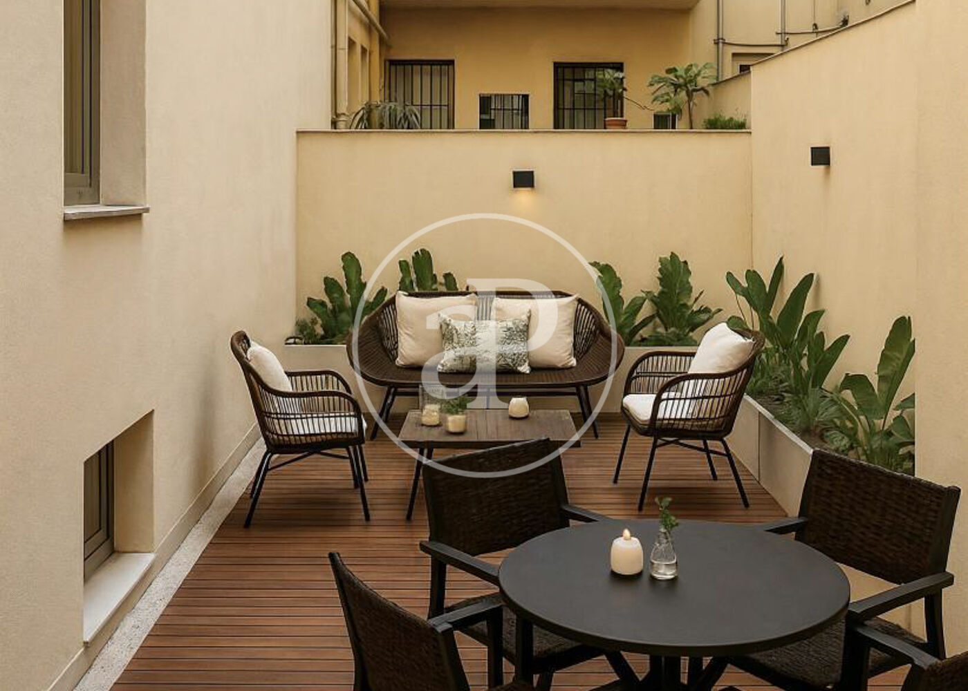 Exclusive residence in a magnificent finca regia on Passeig Sant Joan, Barcelona. We present this superb property located on a first real floor of an elegant finca regia on Passeig Sant Joan, equipped with a lift and fully renovated brand-new with top-quality materials. With 200 sqm of interior space and a spectacular 100 sqm terrace, this home perfectly combines classic charm with contemporary comfort. It is sold FULLY FURNISHED and ready to move into. A beautiful entrance hall distributes the home, clearly separating the day area from the night area through an elegant and bright corridor. The day area stands out for its spacious double living room, one of whose spaces opens onto the terrace, creating a unique greenhouse-like atmosphere. The original Catalan vaulted ceilings add character and warmth to this distinctive setting. The impressive 100 sqm terrace faces a quiet, orderly and peaceful Eixample courtyard, turning this space into a true urban oasis. Next to the living room, we find a large dining area, perfect for family gatherings or entertaining friends, located near the independent kitchen. The kitchen, modern and functional, has access to a practical interior patio. The night area includes three double bedrooms, two of them with en-suite bathrooms and built-in wardrobes. All rooms have been designed to offer maximum comfort and natural light. This is a unique opportunity to acquire an exceptional property in one of Barcelona’s most coveted locations, where architectural elegance meets generous outdoor spaces and impeccable interior design. Do not hesitate to come and see it: we are sure this home will exceed all your expectations! Contact us!