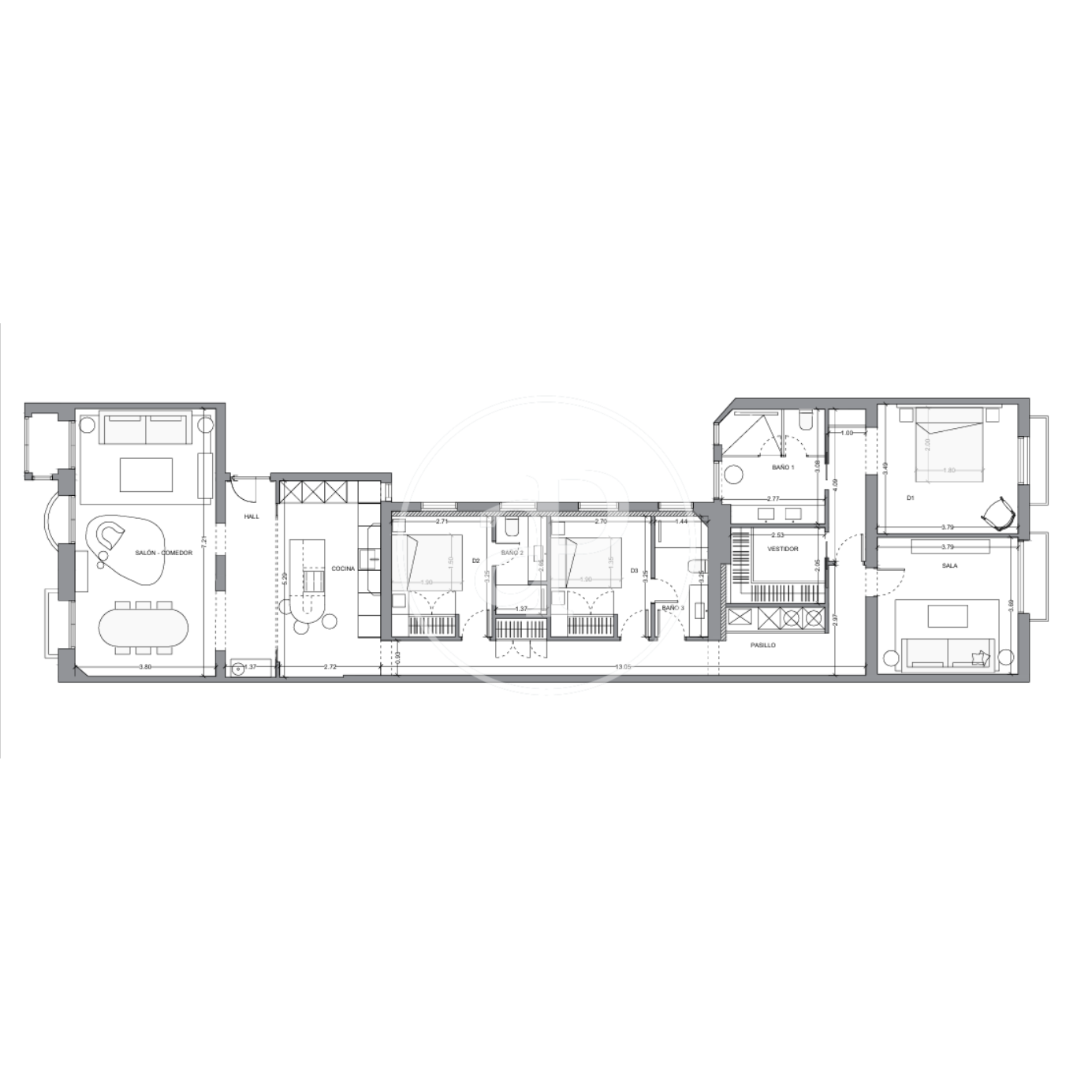 Currently undergoing a comprehensive renovation by the prestigious Madrid architecture studio, this project reinterprets the classic Madrid apartment in a contemporary style that respects the essence of the space. Attention to detail is paramount; each space has been conceived to maximize natural light, elegance, and functionality.