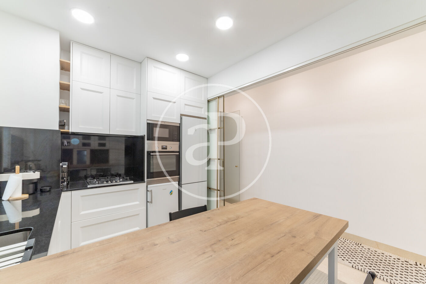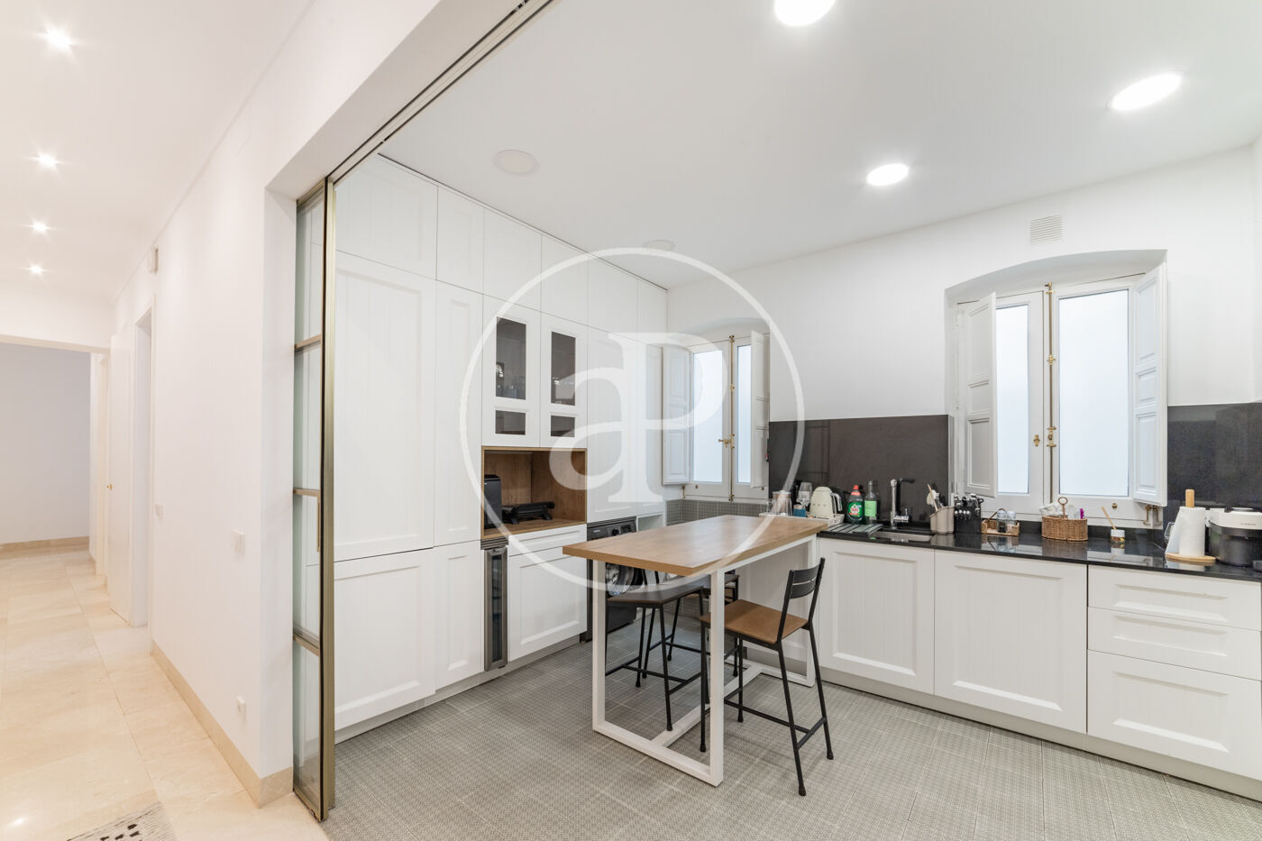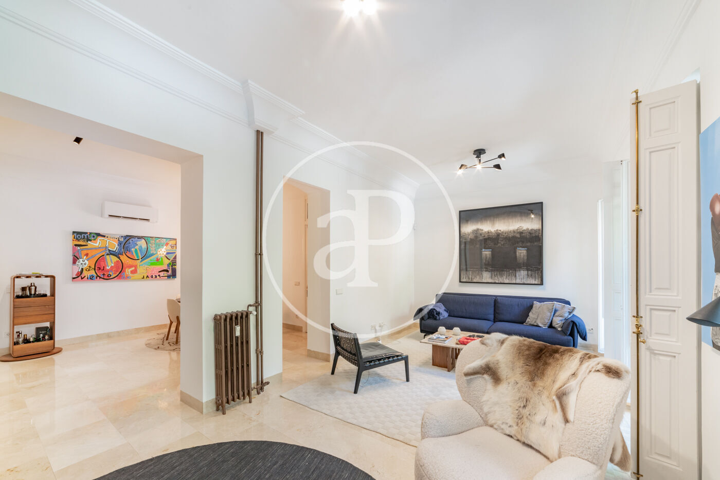 Spacious reception area with a spectacular reform with high ceilings, living-dining room in 2 rooms with balconies to the street from which you can enjoy beautiful tree-lined views, kitchen with peninsula fully equipped with top of the range appliances.