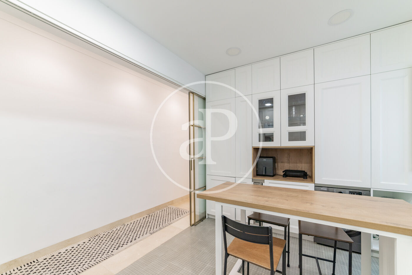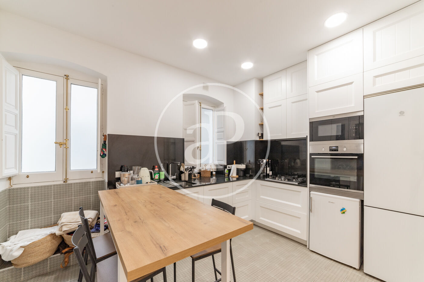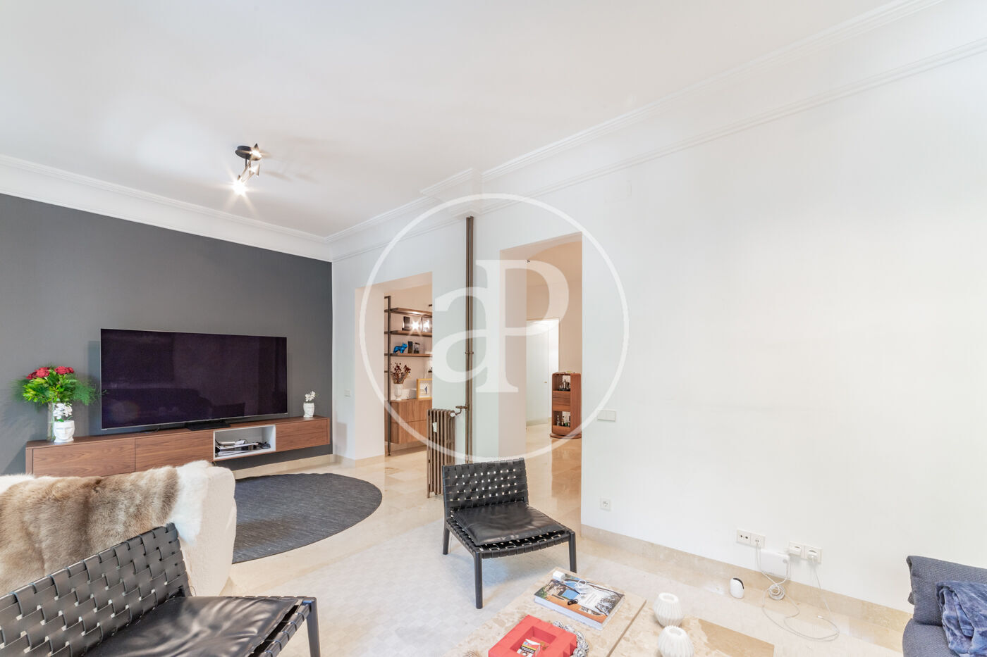 Spacious reception area with a spectacular reform with high ceilings, living-dining room in 2 rooms with balconies to the street from which you can enjoy beautiful tree-lined views, kitchen with peninsula fully equipped with top of the range appliances.