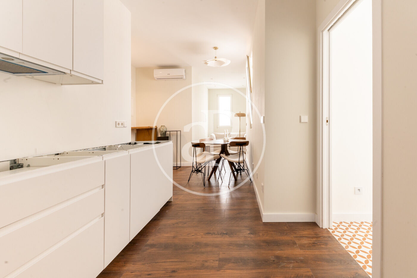 Available in February 2024. In the neighborhood of Vila de Gràcia, ten minutes walk from Paseo de Gracia and Paseo San Juan, we find this incredible apartment of 55m², fully furnished. With a decoration of quality and taste. In the day area, we find a bright and spacious living room. Integrated with the dining room, is the kitchen, open and equipped with all appliances.  In the night area, there are two bedrooms: one with double bed and the other room has a sofa bed, can be used as a dressing room. The apartment has a complete bathroom with shower. The apartment is fully furnished and equipped with washing machine, dishwasher, refrigerator, freezer, microwave, ceramic hob and extractor hood. It has underfloor heating and ducted air conditioning. The apartment has a parking space for 150 euros per month.  Can you imagine living here?   About Vila de Gràcia: The Gràcia district has an artistic, avant-garde atmosphere and is characterized as one of the most bohemian neighborhoods in Europe. The apartments preserve the original character of the area. Its charming little streets are lined with vintage and designer stores and cozy restaurants with sunny terraces that can be enjoyed all year round, as well as art galleries and local markets. It stretches from Avenida Diagonal and Via Augusta to the beautiful Putget mountain where the emblematic Park Güell is located. From the main street, Gran de Gràcia, and its charming narrow streets you reach the countless squares such as Plaza del Sol and Plaza de la Revolución, where you will find a jovial and vibrant atmosphere. The purpose of the contract is temporary. "The reality of the furnishings may not correspond exactly to the photographs shown in this advertisement."* In compliance with Law 12/2023 and Law 18/2007, we inform thatIndex of R.P.LL: 18,37 € / m2 Respecto a la presente propiedad no existe certificado informativo estatal de referencia de precios de alquiler