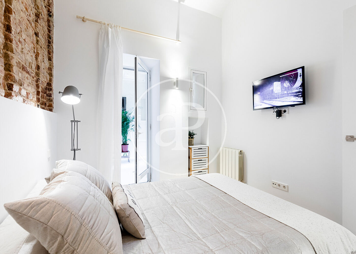 It has two bedrooms with built-in wardrobes and double beds. The master bedroom has a small private terrace where the boiler and washing machine are located. The bathroom is complete and equipped with a shower.