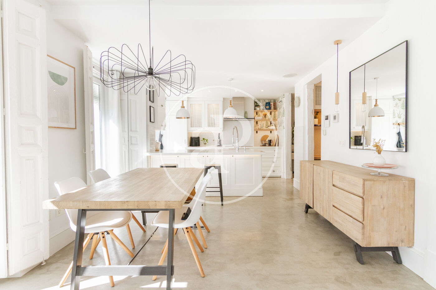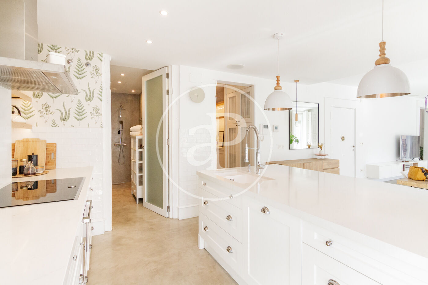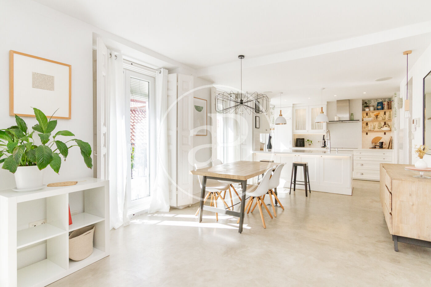 Bright apartment on the third floor without elevator with an excellent reform carried out by a prestigious architecture and interior design studio. From the access to the apartment we find a large living room, dining room and kitchen integrated into a huge space and divided by areas. The apartment has a fully equipped office area, as well as laundry area with washer and dryer. The master bedroom has a double bed and large fitted closets. The enclosures are of the latest range ensuring excellent thermal and acoustic insulation. The kitchen area, with plenty of storage, has Neff appliances, new cooktop and a modern folding oven with integrated steam oven. The bathroom has two showers facilitating comfort and spaciousness. The apartment has numerous balconies, underfloor heating and cooling system with aerothermal system and whole microcement.