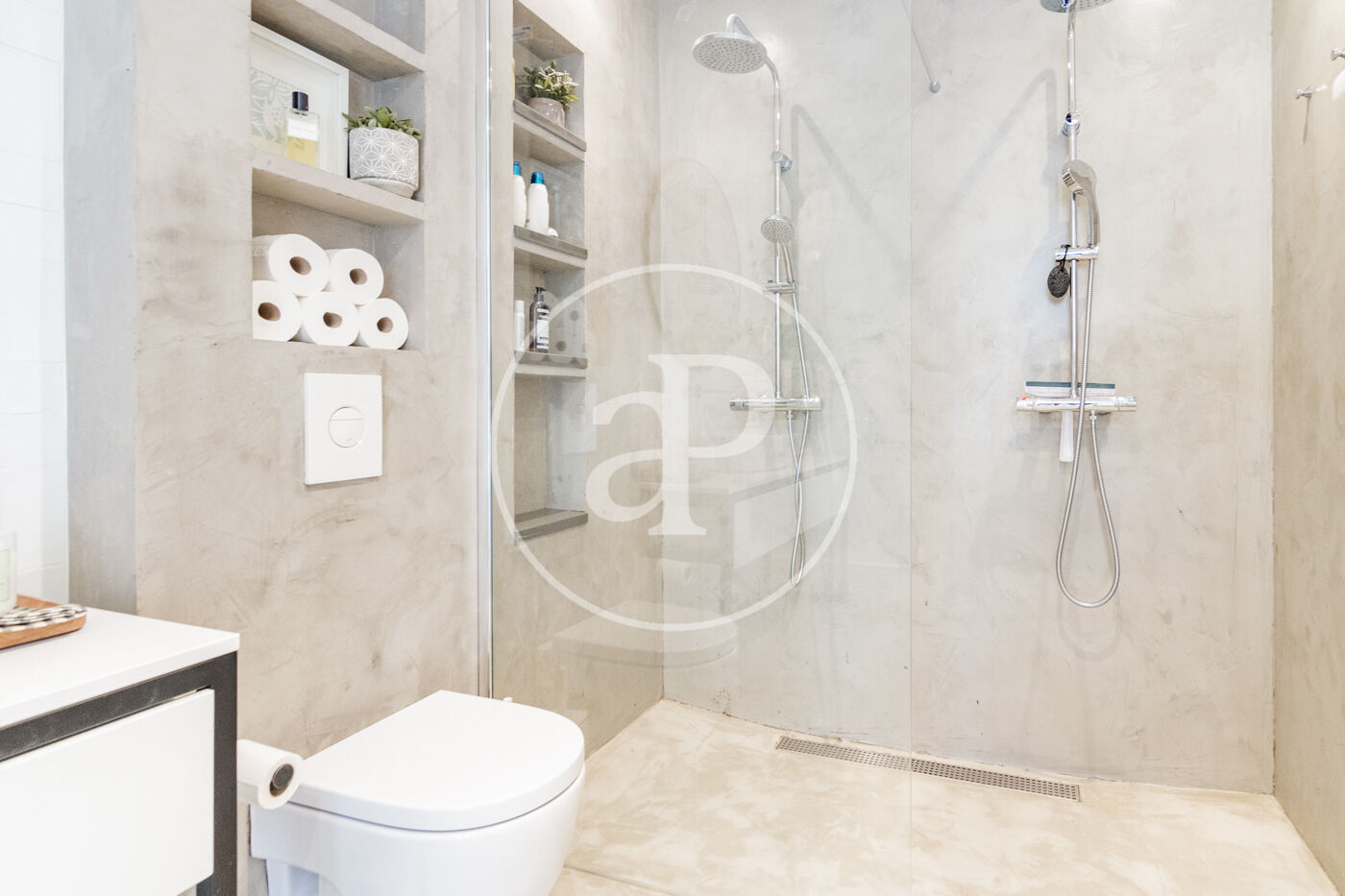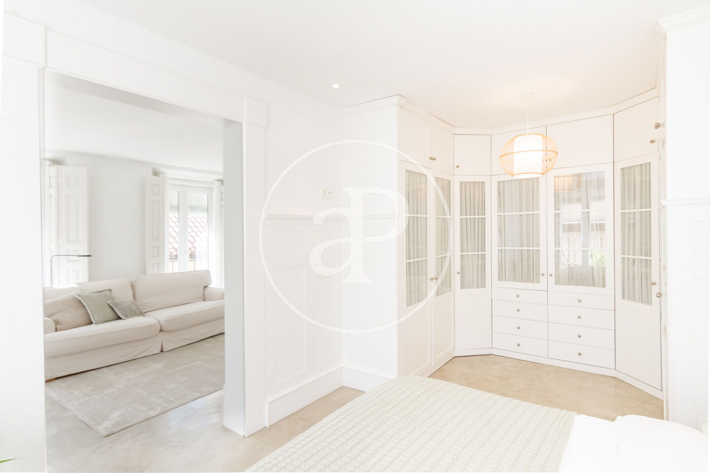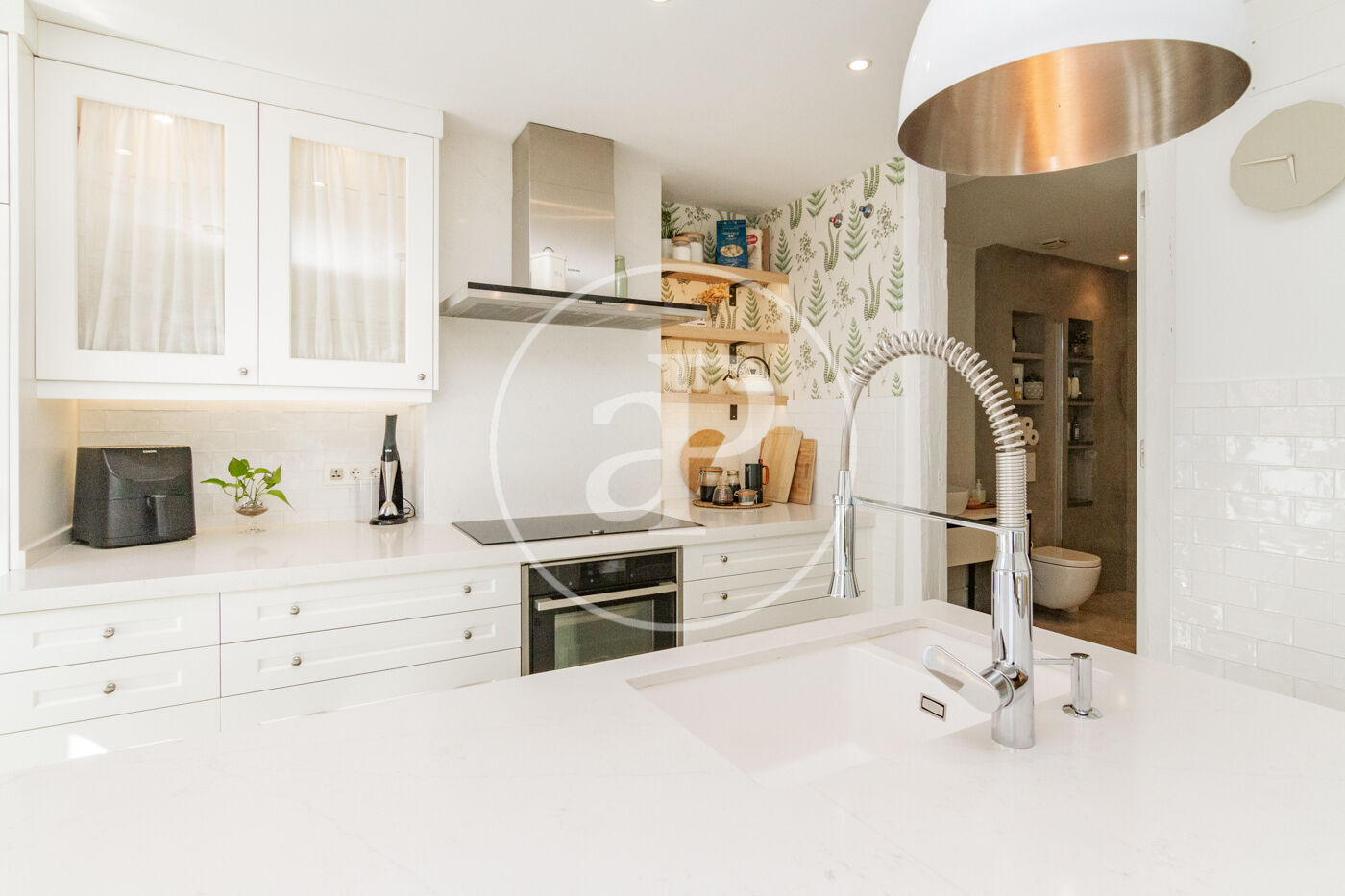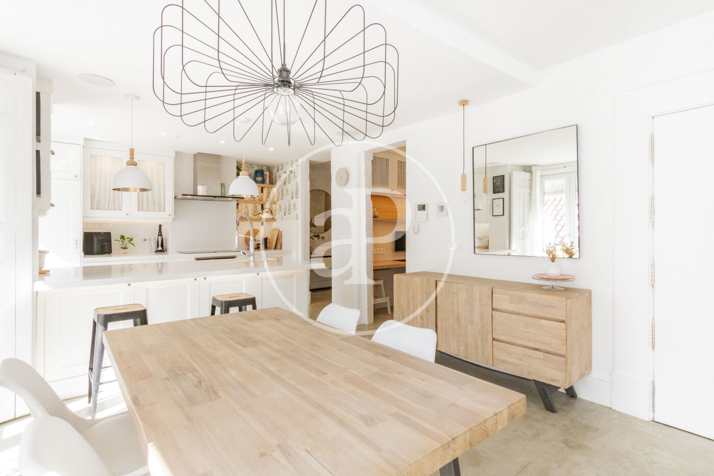 Bright apartment on the third floor without elevator with an excellent reform carried out by a prestigious architecture and interior design studio. From the access to the apartment we find a large living room, dining room and kitchen integrated into a huge space and divided by areas. The apartment has a fully equipped office area, as well as laundry area with washer and dryer. The master bedroom has a double bed and large fitted closets. The enclosures are of the latest range ensuring excellent thermal and acoustic insulation. The kitchen area, with plenty of storage, has Neff appliances, new cooktop and a modern folding oven with integrated steam oven. The bathroom has two showers facilitating comfort and spaciousness. The apartment has numerous balconies, underfloor heating and cooling system with aerothermal system and whole microcement.