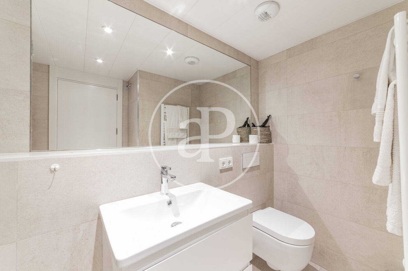 Exclusive exterior housing, newly renovated, 2 bedrooms and 2 bathrooms en suite. It consists of entrance hall, fully equipped kitchen with appliances of the highest quality, living room, 2 separate bedrooms and 2 bathrooms en suite. One of the bedrooms has a double bed, while the other has a stackable bed that transforms into a double bed or two single beds, as shown in the photos.