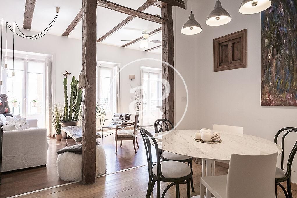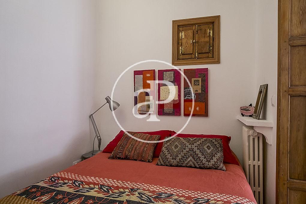aProperties presents this spacious and charming exterior flat in Plaza de Lavapiés, completely refurbished with good taste and high quality materials, achieving a perfect balance between history and modernity. With 123sqm according to the land registry, the property is located on the first floor of a classic building without lift, in the heart of one of Madrid's most vibrant and multicultural neighbourhoods. The property currently has five bedrooms, including a master bedroom with en-suite bathroom, as well as two complete, modern and functional bathrooms. The layout has been carefully optimised to make the most of the spaciousness and natural light that enters through the exterior balconies, offering unobstructed views and a welcoming atmosphere. To facilitate the visualisation of the property's potential as a home, a homestaging has been carried out with a reform proposal that allows it to be easily adapted to a more conventional layout as a 3-bedroom flat with more open and functional spaces. This proposal maintains the essence of the property, enhancing its original character while introducing improvements in comfort and design. Located in Lavapiés, one of Madrid's most historic and characterful neighbourhoods, this flat offers an unbeatable location just a few minutes from cultural icons such as the Reina Sofía Museum, the Prado and the historic centre. Its bohemian and multicultural atmosphere is reflected in its varied offer of theatres, art galleries and a vibrant gastronomic life with flavours from all over the world. If you are looking for a home with character in the heart of Madrid, with a tailor-made renovation proposal, this is your chance! Contact us for more information or a viewing. Can you imagine living here?