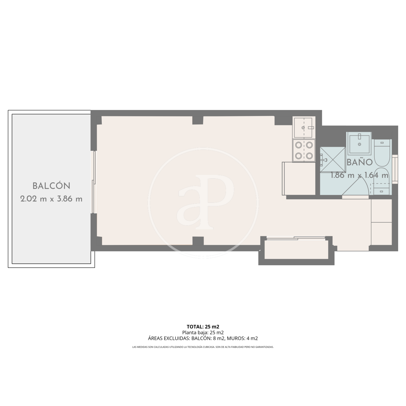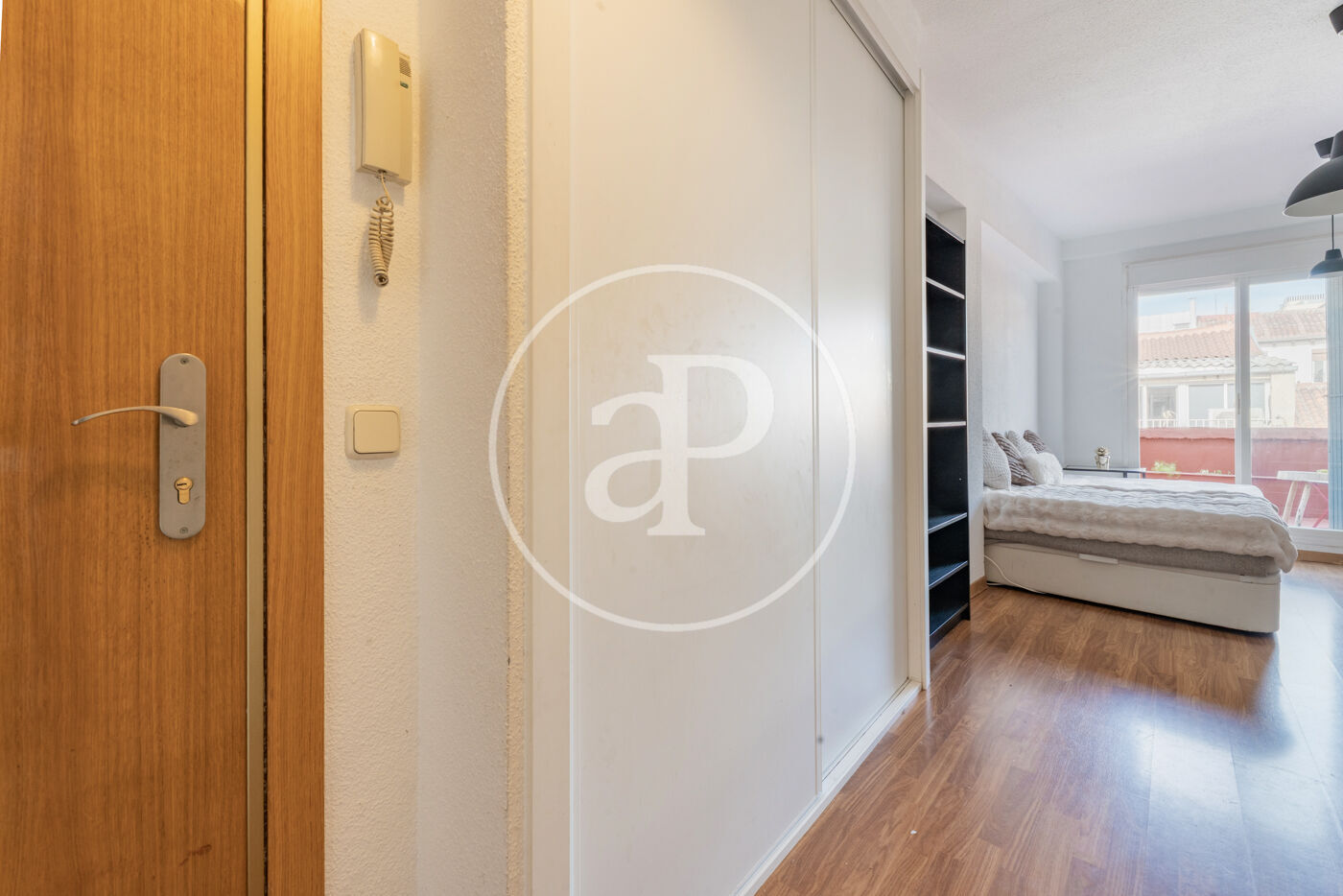 12-MONTH CONTRACT. Unfurnished 32m² studio apartment in the heart of the Malasaña neighborhood with a private terrace. The apartment has a full bathroom with shower, hot water via water heater, and a split air conditioning and heating unit.