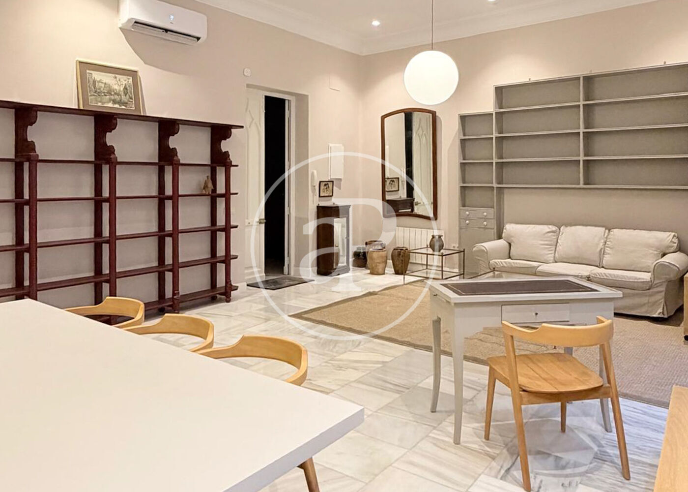It also includes: air conditioning, individual electric heating, a new washer and dryer, a fully equipped kitchen with brand-new appliances, and built-in wardrobes.