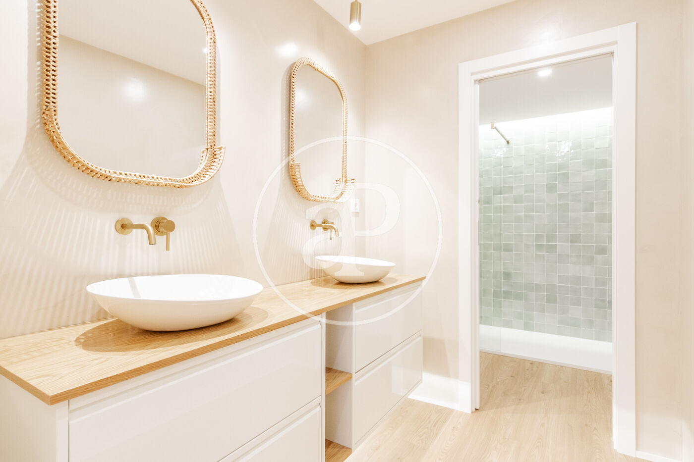 The apartment has three spacious bedrooms, each with large windows that allow natural light to enter. All three bedrooms have en suite bathrooms with high quality finishes and a very careful design, and all of them have large fitted closets.