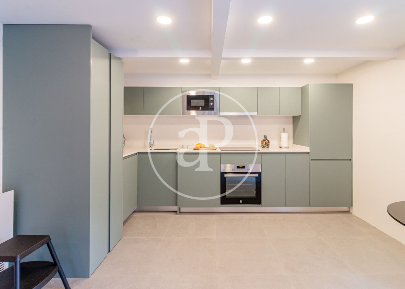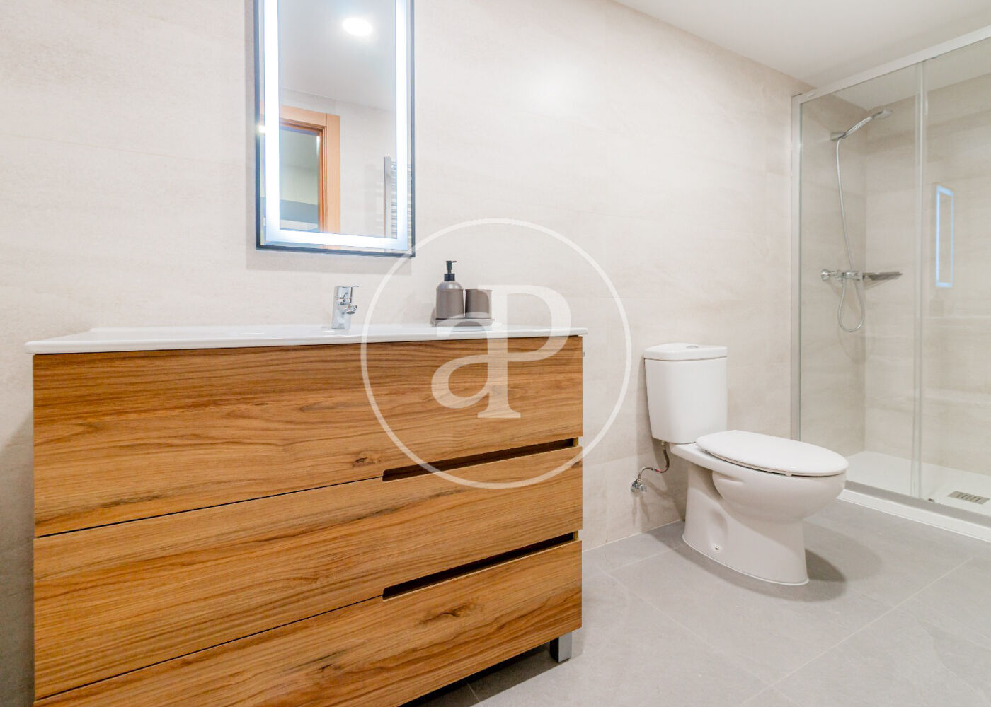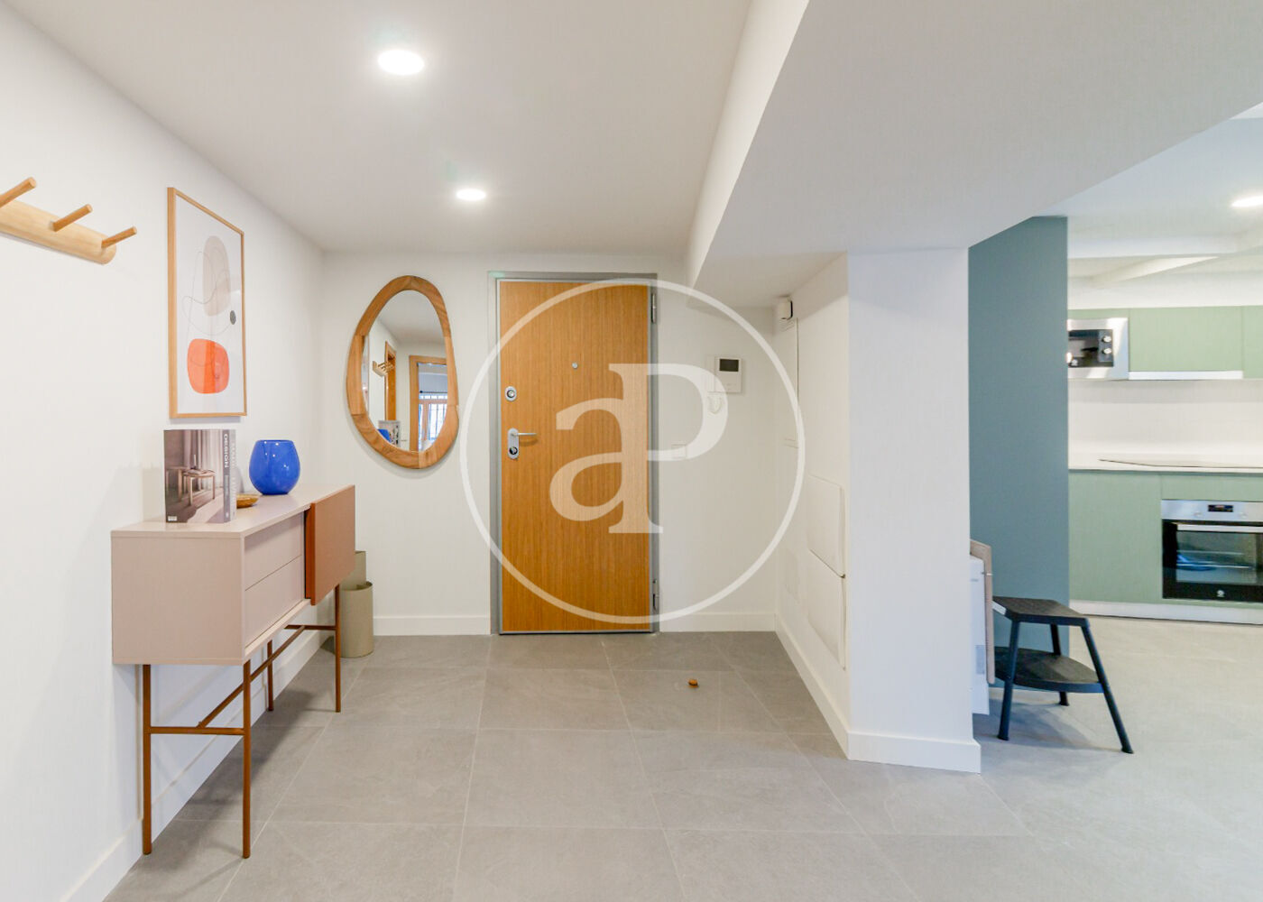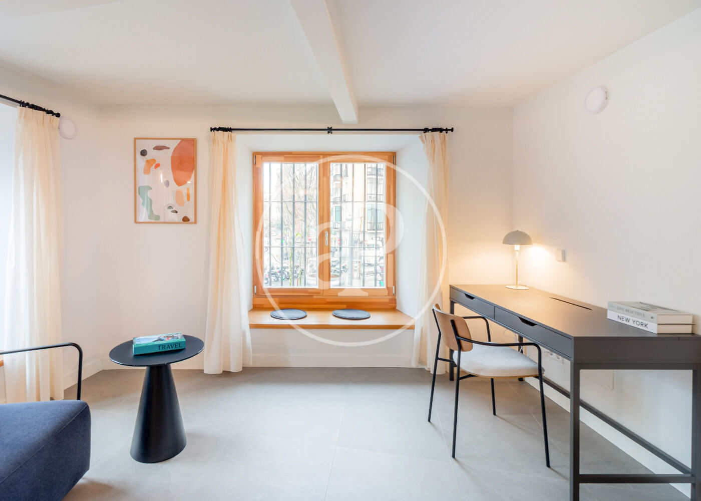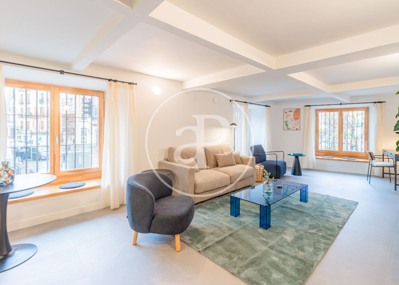 MINIMUM STAY OF 1 YEAR. IMMEDIATE ENTRY. Cozy duplex penthouse with 1 bedroom and 1 bathroom, located in a historic building in the heart of Madrid de los Austrias. The property has 70 m² of constructed area, distributed on two floors. On the main floor, there is a spacious living room with windows facing south, which offer great luminosity, high sloping ceilings and original wooden beams that provide a rustic and elegant touch. On this same floor is the kitchen, fully equipped with all appliances and with a window to the outside, which ensures good ventilation and natural lighting. The upper floor houses the bedroom, which has a railing and views of the living room, creating a modern space. The bathroom, en suite, has a shower and bathtub. The penthouse comes fully equipped and furnished, including kitchenware. It also has air conditioning, electric heating and a charming fireplace that brings warmth and character to the house. Water consumption is included in the rental price. Its privileged location allows you to enjoy a wide cultural and entertainment offer, just a few steps from the Plaza de la Paja, the Almudena Cathedral and green areas such as Campo del Moro. In the surroundings, there are several stores, bars, supermarkets and garages, as well as excellent connections with public transport that facilitate access to any part of Madrid. Can you imagine living here?