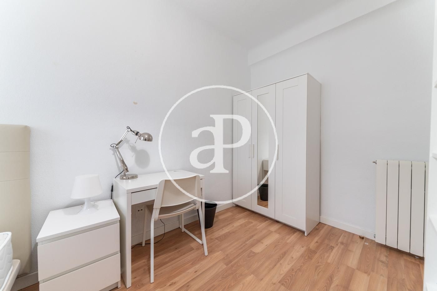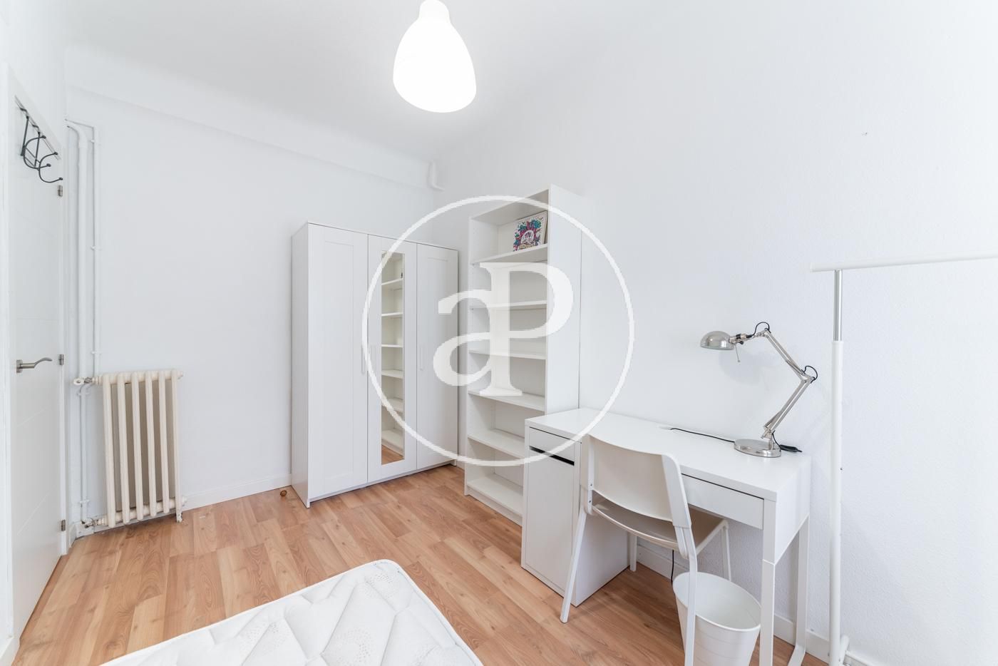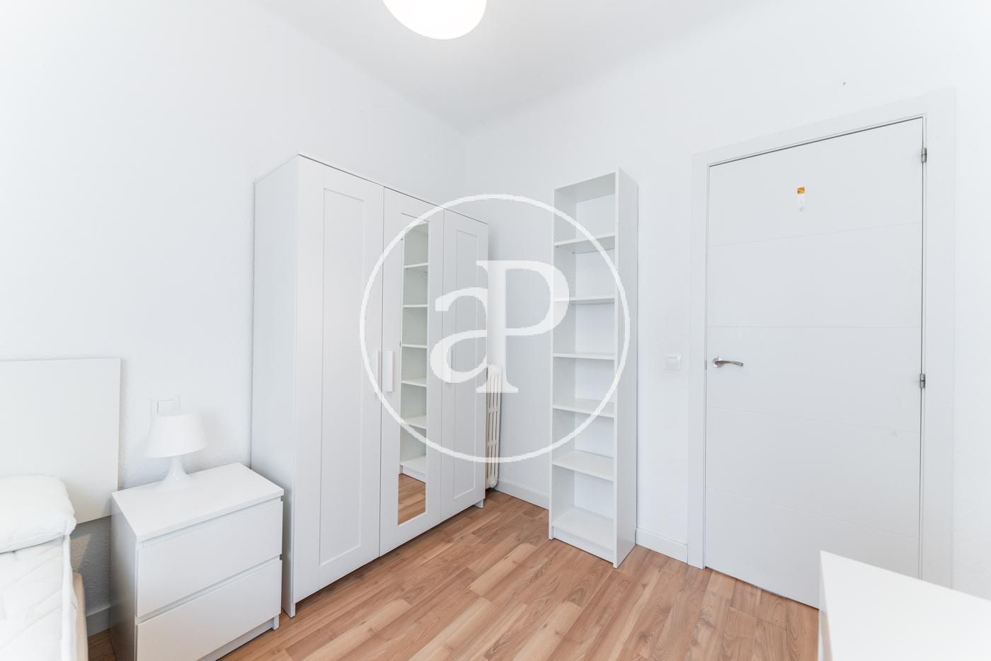 Excellent, bright, exterior apartment available in the Prosperidad shopping district. It's just a short walk from the Avenida de América metro station. This apartment boasts high ceilings and exceptional finishes throughout its 105 square meters of living space. It features four bedrooms (two doubles and two singles) and two bathrooms with walk-in showers. The apartment comes furnished and with a fully equipped kitchen (ceramic hob, oven, refrigerator, washing machine, and dishwasher). It has individual natural gas heating and a spacious, bright living room. The building, completely renovated, has retained its classic character. It's also surrounded by a wide variety of cultural offerings, restaurants, and shops. Pets are welcome!