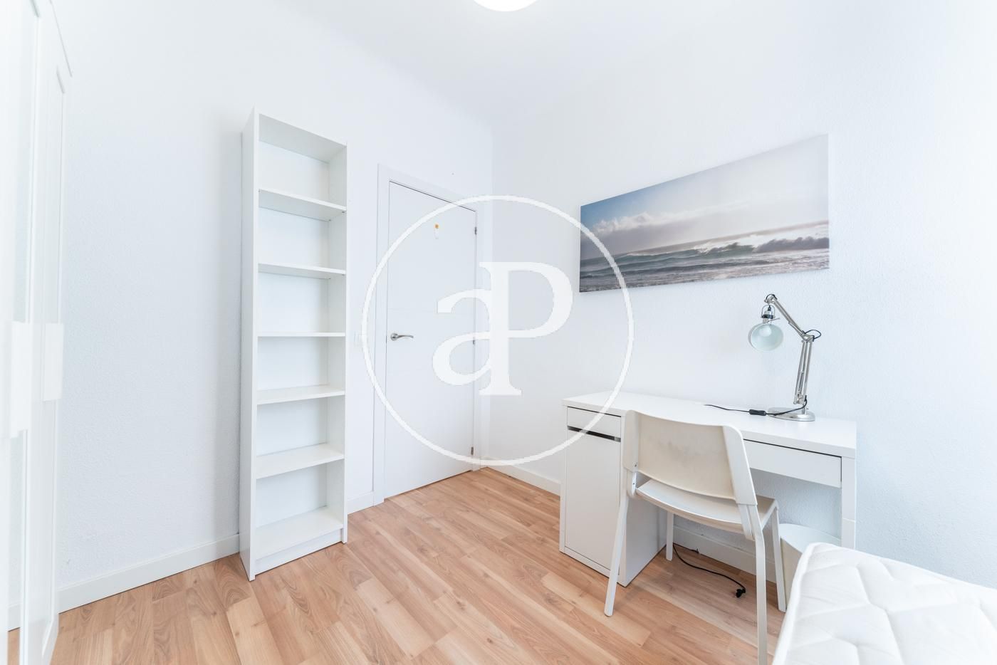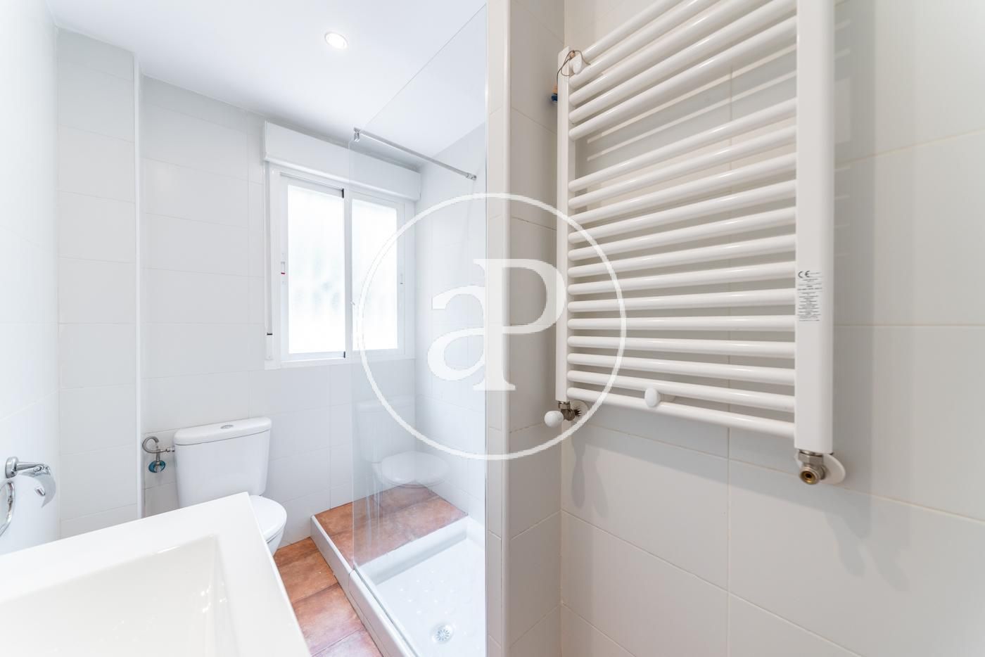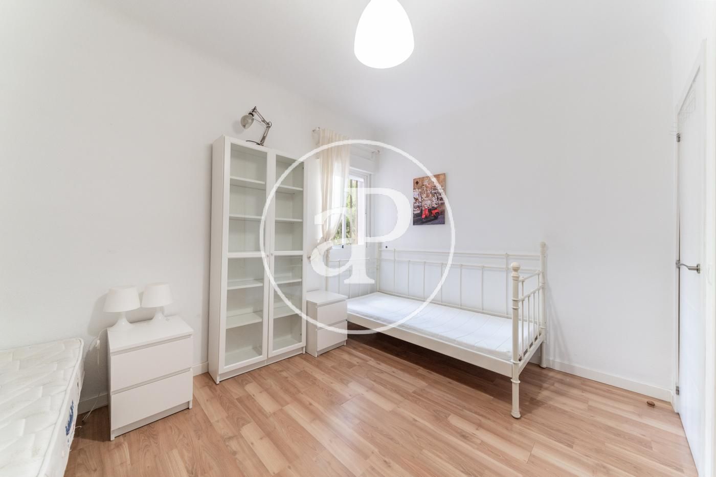 Excellent, bright, exterior apartment available in the Prosperidad shopping district. It's just a short walk from the Avenida de América metro station. This apartment boasts high ceilings and exceptional finishes throughout its 105 square meters of living space. It features four bedrooms (two doubles and two singles) and two bathrooms with walk-in showers. The apartment comes furnished and with a fully equipped kitchen (ceramic hob, oven, refrigerator, washing machine, and dishwasher). It has individual natural gas heating and a spacious, bright living room. The building, completely renovated, has retained its classic character. It's also surrounded by a wide variety of cultural offerings, restaurants, and shops. Pets are welcome!