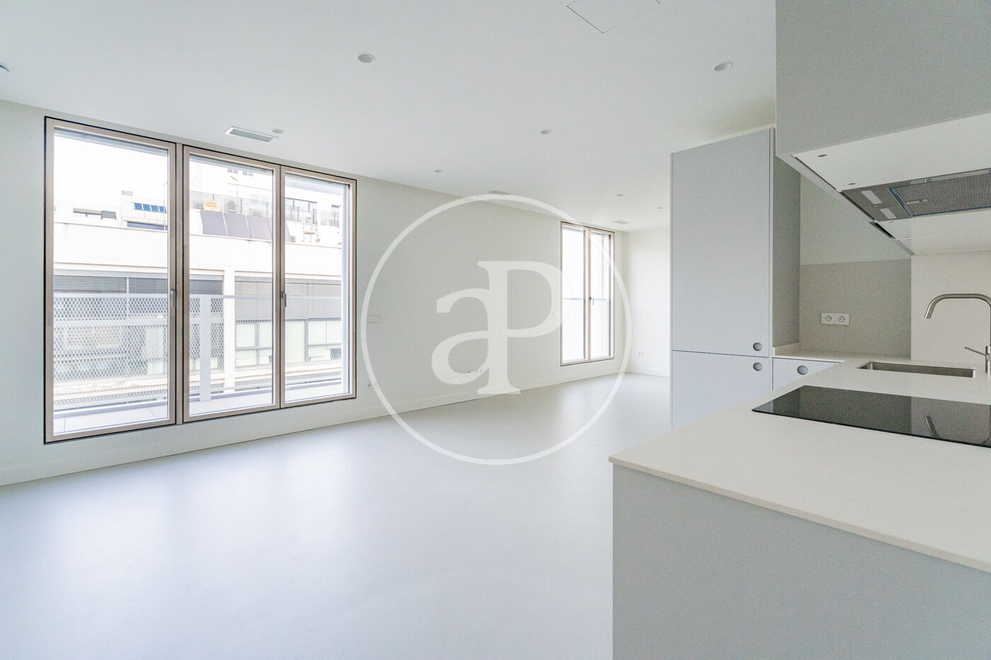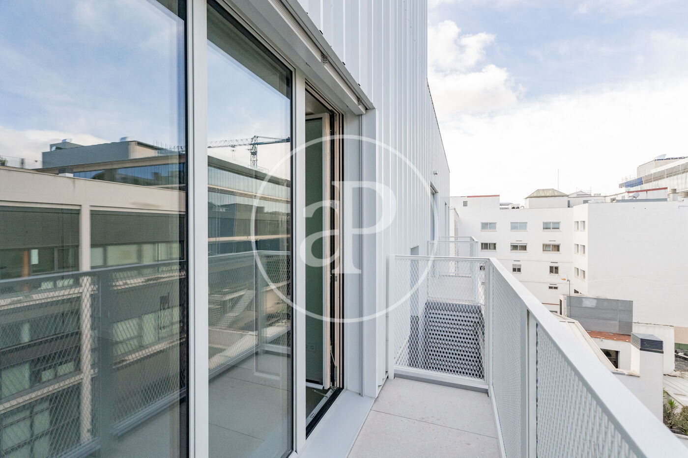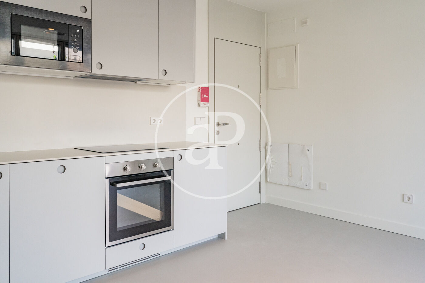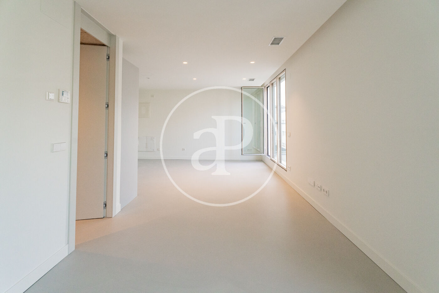 New build penthouse studio apartment available in the Prosperidad commercial and residential area. This bright, exterior unit is just a one-minute walk from the Alfonso XIII metro station and about a seven-minute walk from Berlin Park. It features a built-in wardrobe and a full bathroom with shower. The apartment is available furnished or unfurnished, and the kitchen is fully equipped with top-of-the-range appliances (oven, ceramic hob, refrigerator, washing machine, and dishwasher). Additional features include individual natural gas heating, ducted air conditioning throughout, and electric blinds. The new building offers video surveillance, a communal garden, a terrace (perfect for summer), and a parking space included in the rent.