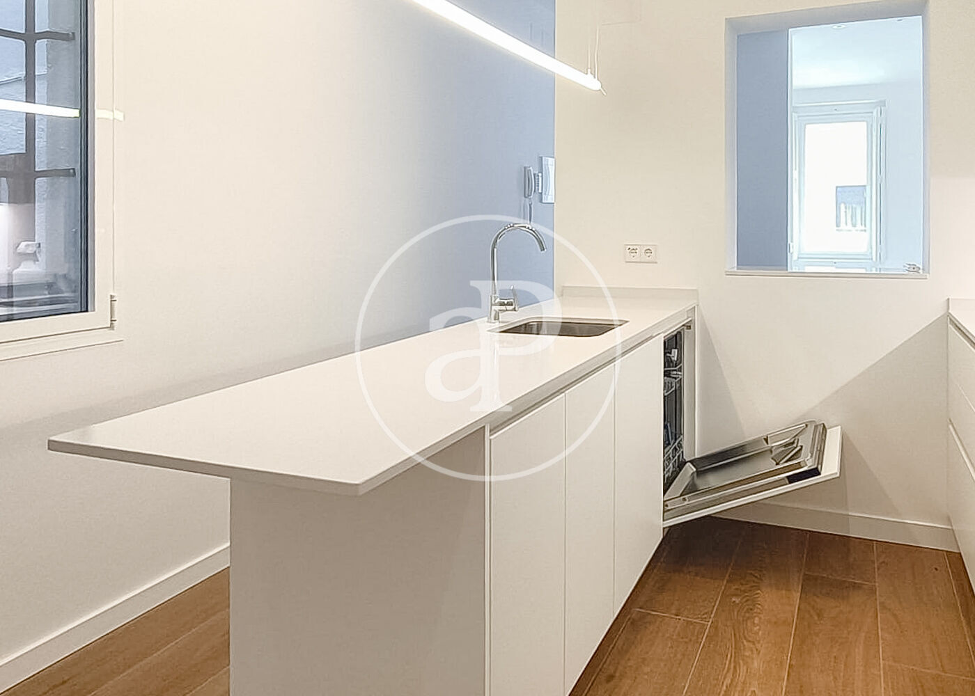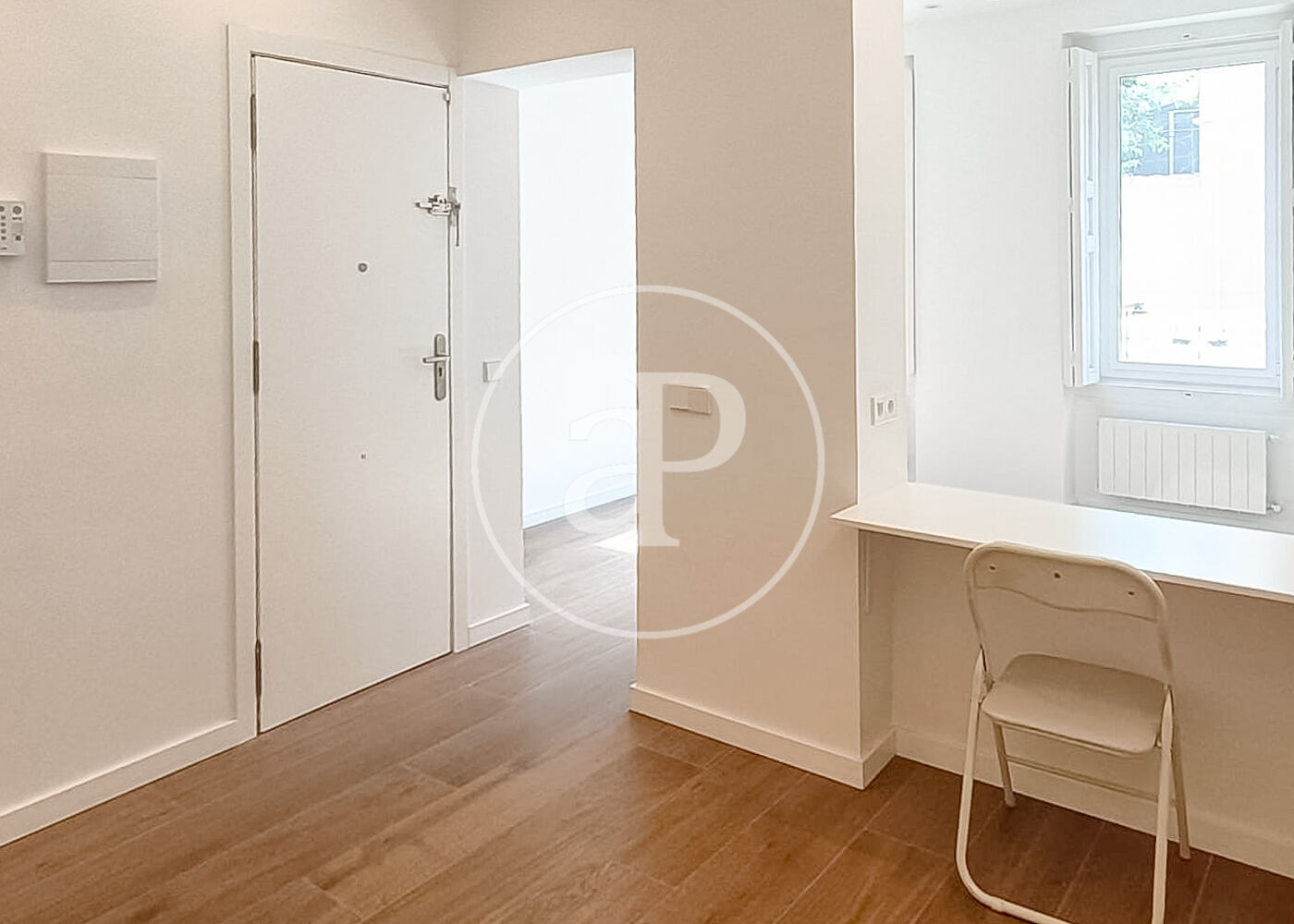 New apartment, completely renovated. It features one bedroom with a built-in wardrobe (150x300cm) with a storage area, a window overlooking a north-facing interior courtyard that lets in plenty of natural light, a bathroom with a shower, sink, vanity unit with two drawers, and a window overlooking the interior courtyard, and a hallway with two additional built-in wardrobes: one (150x300cm) with a storage area for clothes, and another housing the washer-dryer, boiler, and storage for the mop, broom, etc. The open-plan kitchen is fully furnished and equipped, and there is a dining room with a home office area and a living room with two south-facing windows overlooking the street, allowing for plenty of morning light as there are no tall buildings directly in front. The apartment has individual heating with radiators in all rooms, triple-glazed windows, and air conditioning in the bedroom and living room.