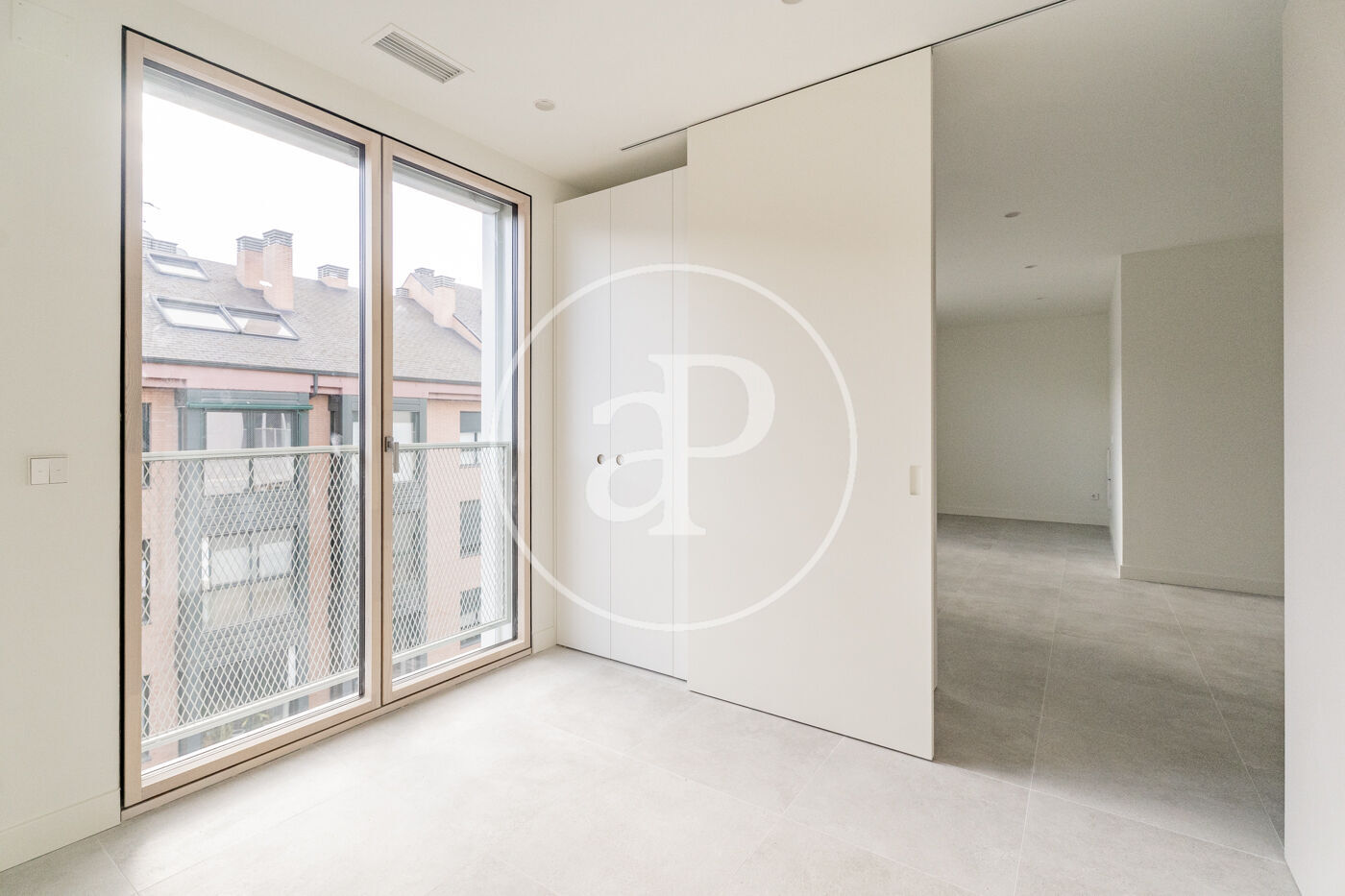 Brand new, bright, exterior apartment available in the Prosperidad commercial and residential area. The property is a one-minute walk from the Alfonso XIII metro station and about a seven-minute walk from Berlin Park. It features one bedroom with a built-in wardrobe and an en-suite bathroom with a shower. It can be rented furnished or unfurnished, and the kitchen is fully equipped with top-of-the-range appliances (oven, ceramic hob, refrigerator, washing machine, dishwasher). It has individual natural gas heating, ducted air conditioning in all rooms, and electric blinds. The new building has video surveillance, a communal garden, and a parking space included in the rent.