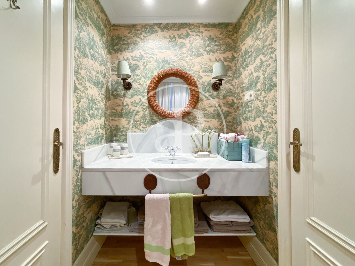 In addition, the house is fully furnished, ready to move in. The heating is central and has air conditioning in all rooms by split. The property being very representative, has a doorman and security system. A step away from the retreat, Velázquez street and subway stations and stores.