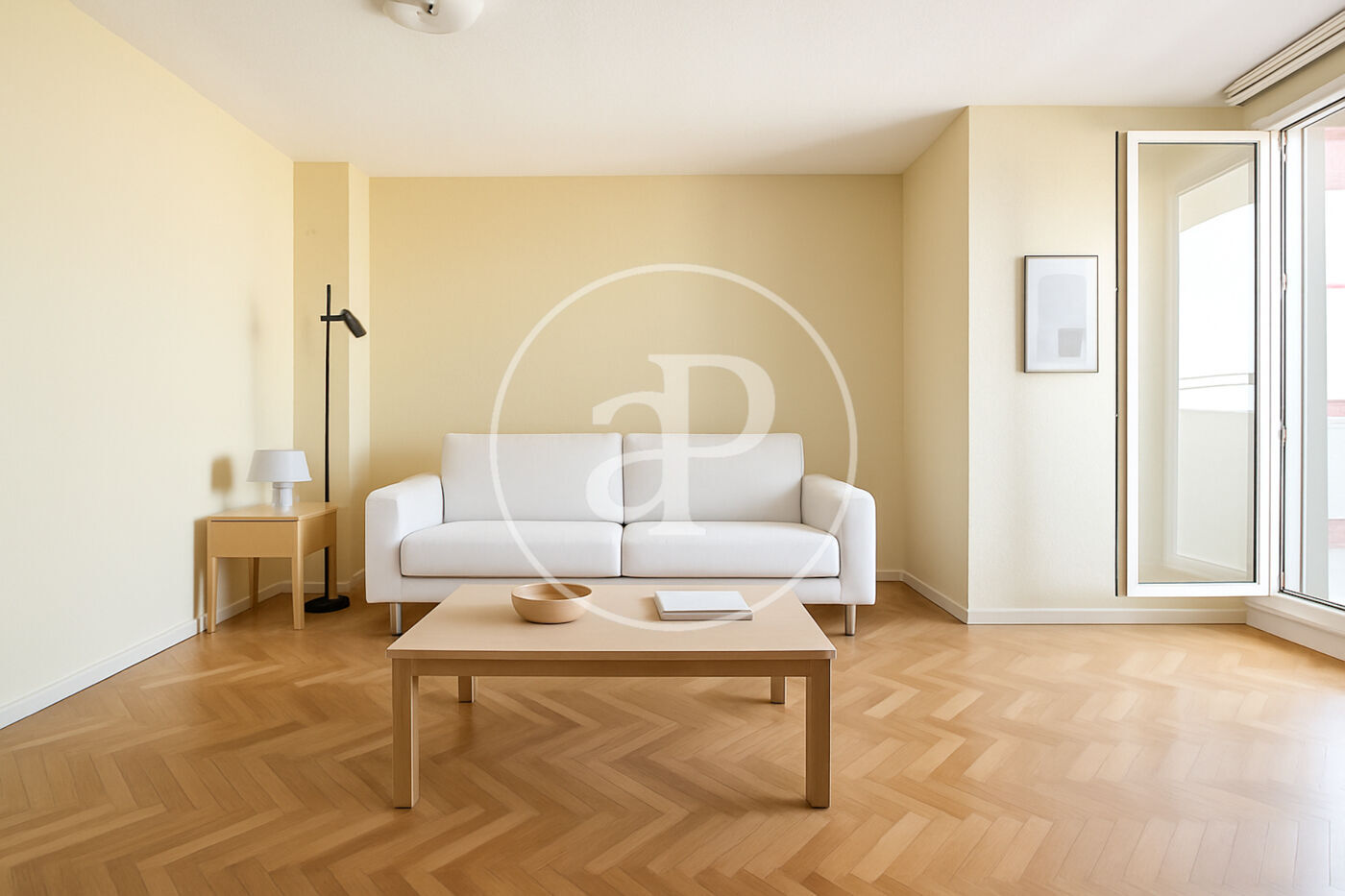 Located on a sixth floor, this penthouse offers maximum privacy, as it is the only one on the floor, and has an exclusive use terrace that becomes one of the great attractions of the house. A unique space to create different environments: outdoor dining area, chill out area or even a small urban garden, all accompanied by open views that reach the Sierra de Madrid.