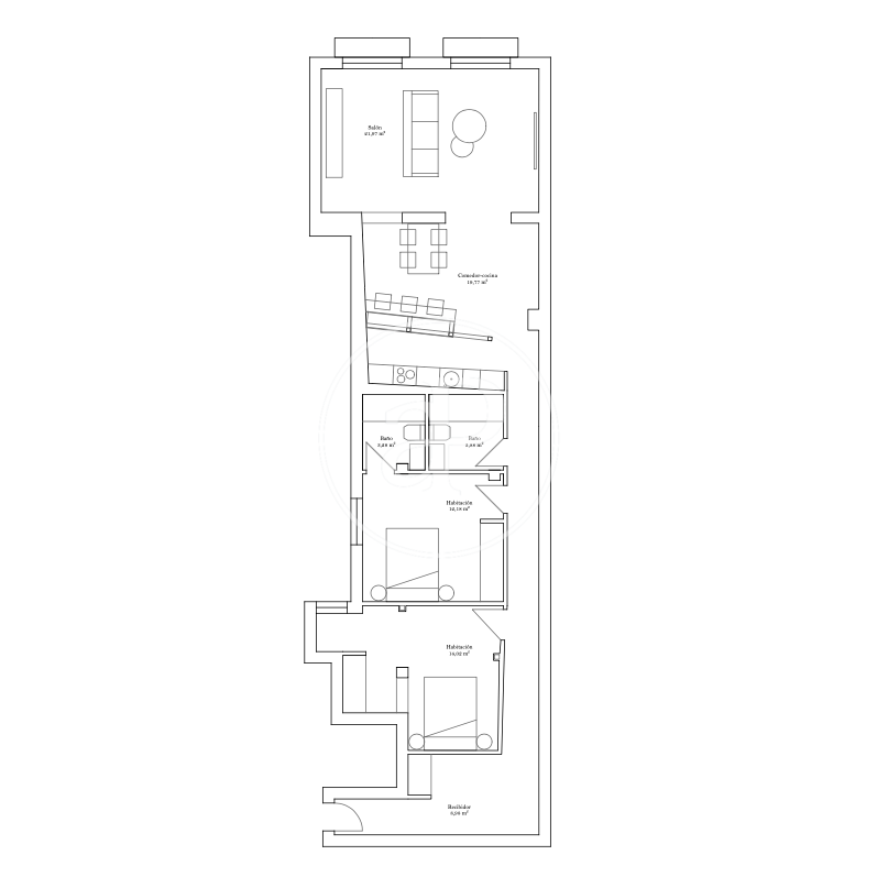 aProperties presents, in the exclusive Sant Francesc neighborhood, this spectacular fully renovated apartment, featuring two bedrooms and two spacious full bathrooms. The property boasts an excellent layout, making the most of every square meter of living space, with minimal hallway area, creating a warm and welcoming atmosphere. It comes furnished with elegant, modern-style, semi-new furniture that perfectly complements the apartment’s overall design. The beautiful kitchen stands out, equipped with brand-new, state-of-the-art appliances, as well as two stylish bathrooms that shine for their clean and modernist design. The entire apartment features top-quality parquet flooring. It also includes built-in wardrobes in both the hallway and bedrooms, along with a next-generation heating system consistent with its contemporary style. This magnificent property is located on an elegant and spacious street in the heart of Valencia, surrounded by all kinds of services: schools, supermarkets, local shops, and excellent transport connections — metro and several bus lines — allowing easy access to any part of the city. Its privileged location, just one minute from the Plaza del Ayuntamiento, makes this home a comfortable, bright, and lively place to live. If you would like to know more, please do not hesitate to contact us. We will be delighted to assist you.
