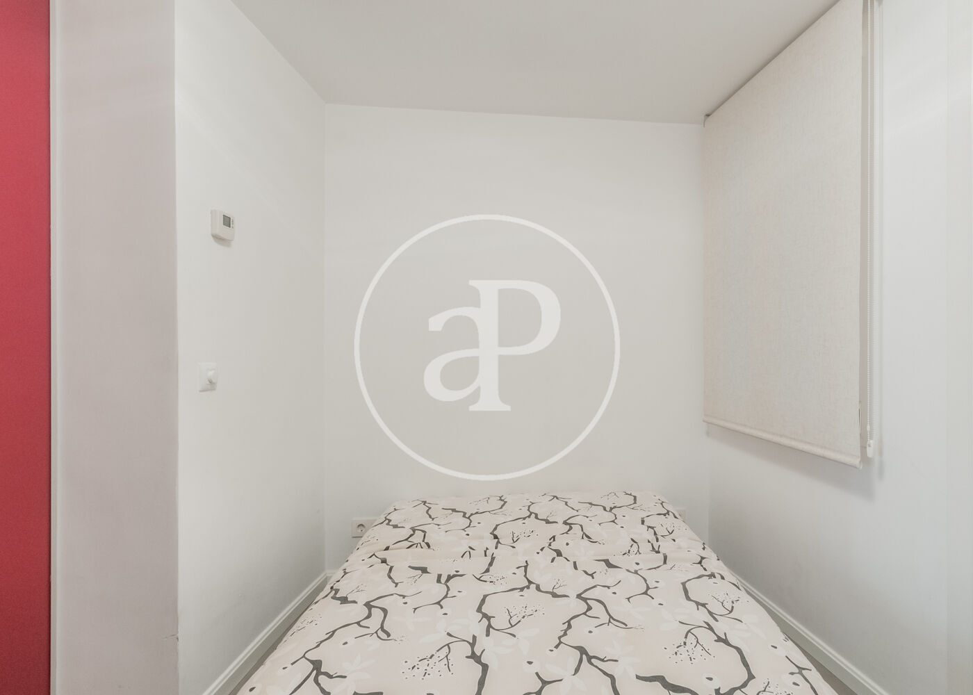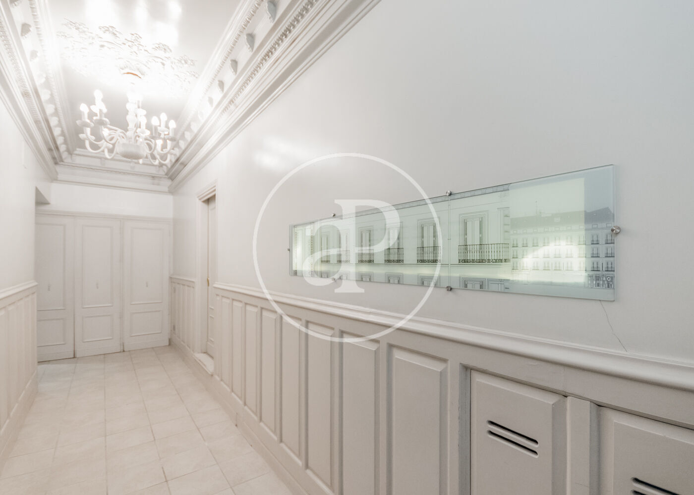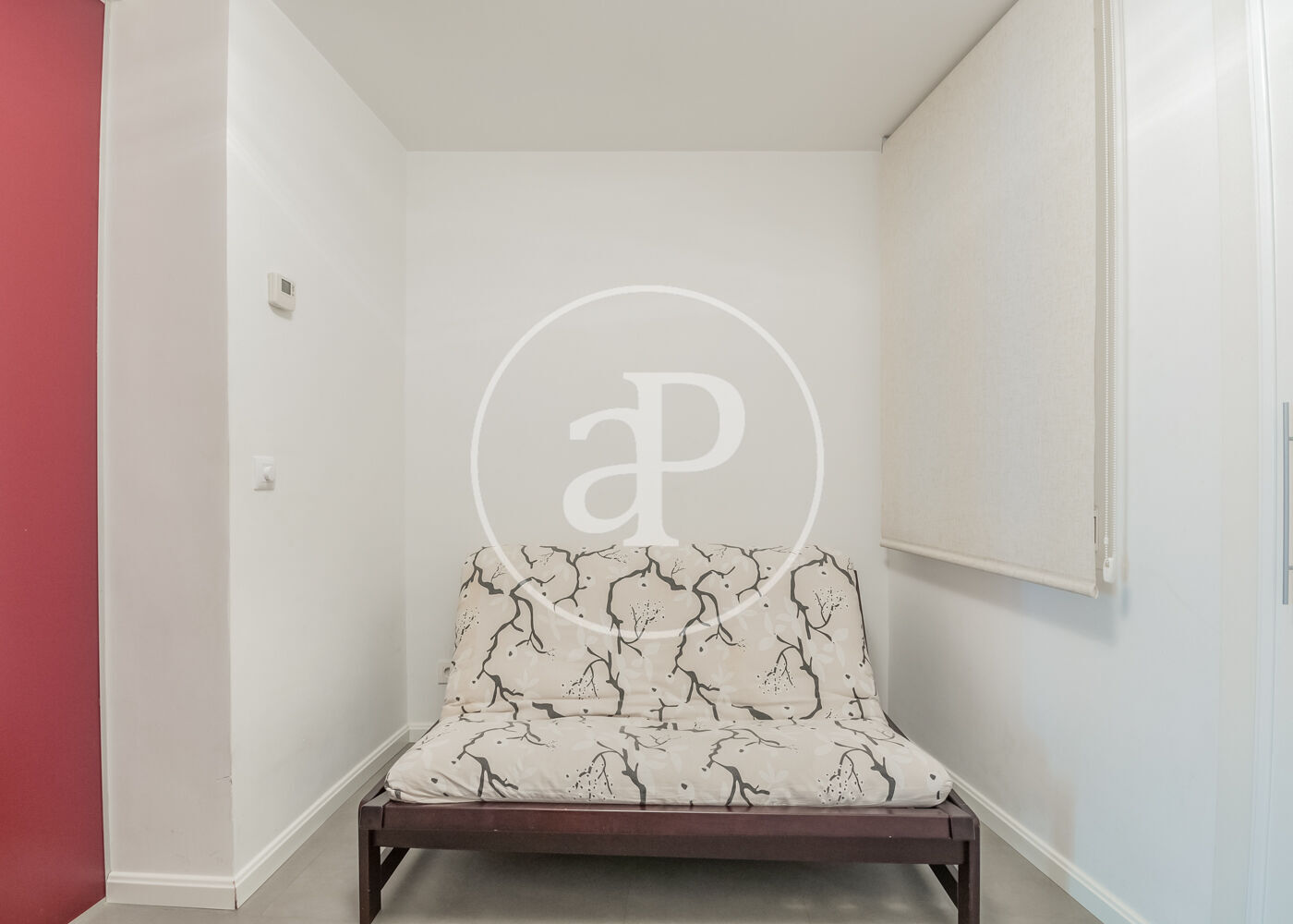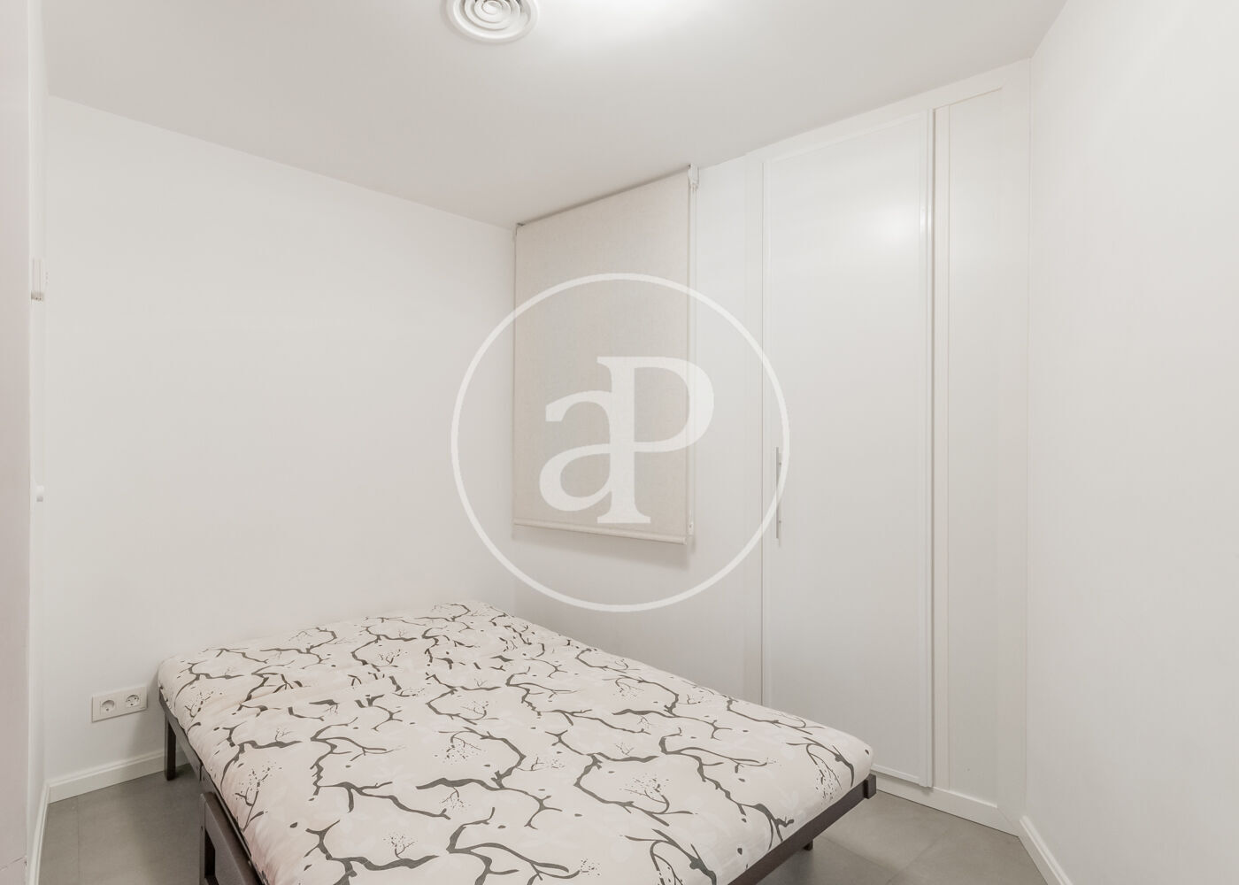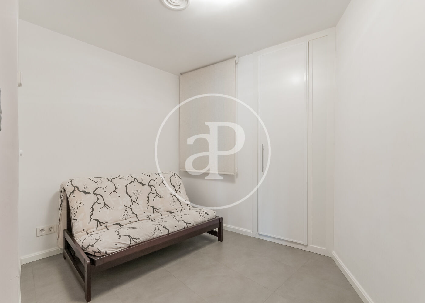 Loft-style apartment of 68m2. The bright living room features exposed iron and wood beams, 3.5-meter-high ceilings, and three classic balconies overlooking the street. The open-plan kitchen, by the Italian brand Banni, comes fully equipped with Bosch appliances: refrigerator, freezer, dishwasher, oven, microwave, wine cooler, induction hob, grill, etc. The apartment has two bedrooms with sliding glass doors. One has a queen-size bed, and the other has a 135cm bed. The second bedroom has two built-in wardrobes, one for shoes and one for clothes. Both bedrooms are very quiet and located on the interior side of the apartment.