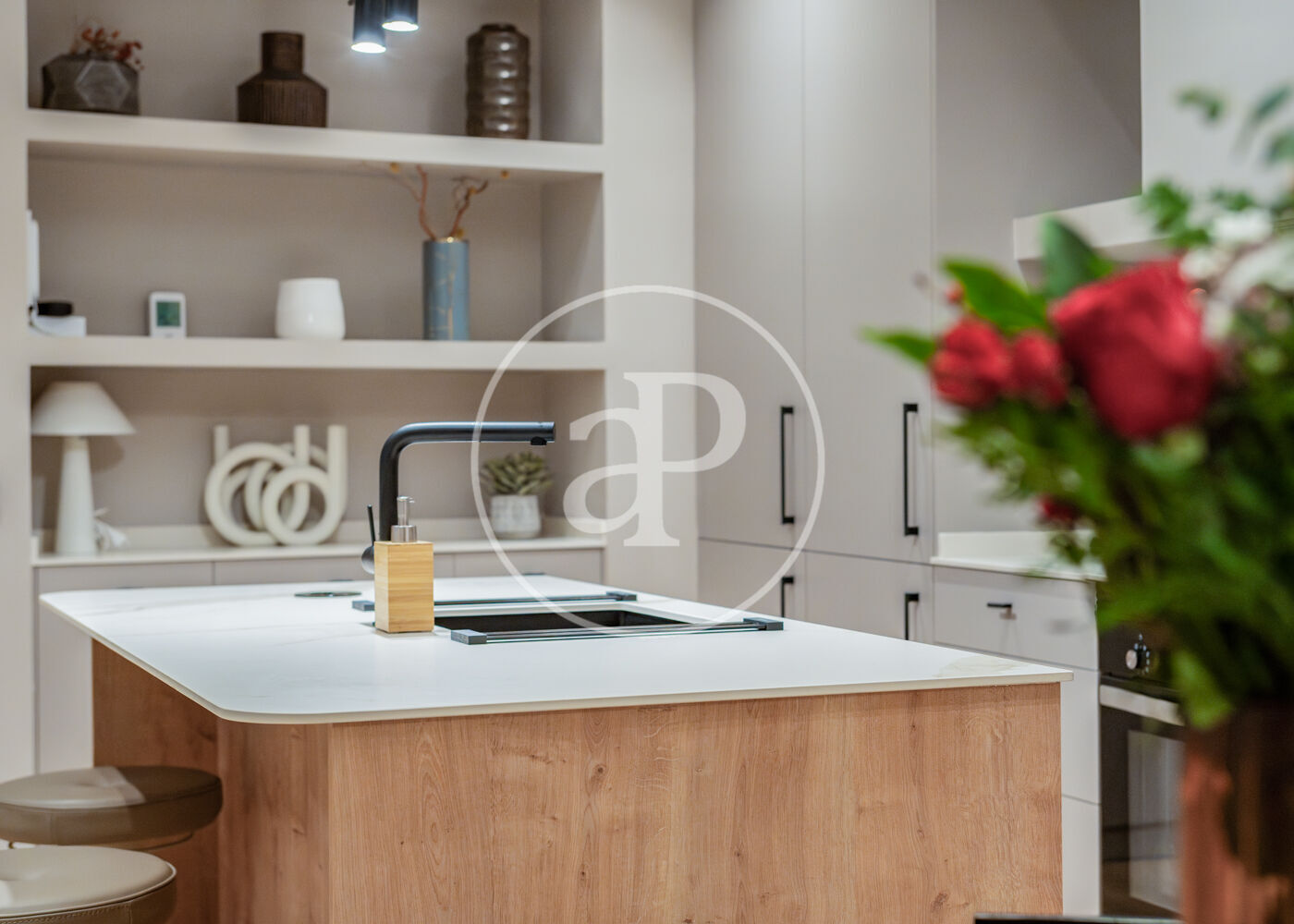 The fully equipped kitchen is very spacious with an incredible island and plenty of storage capacity.