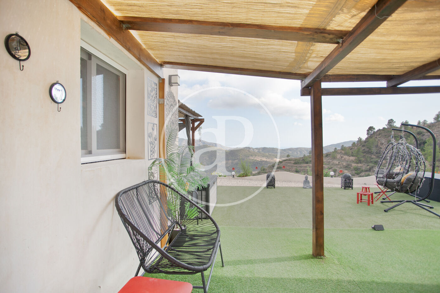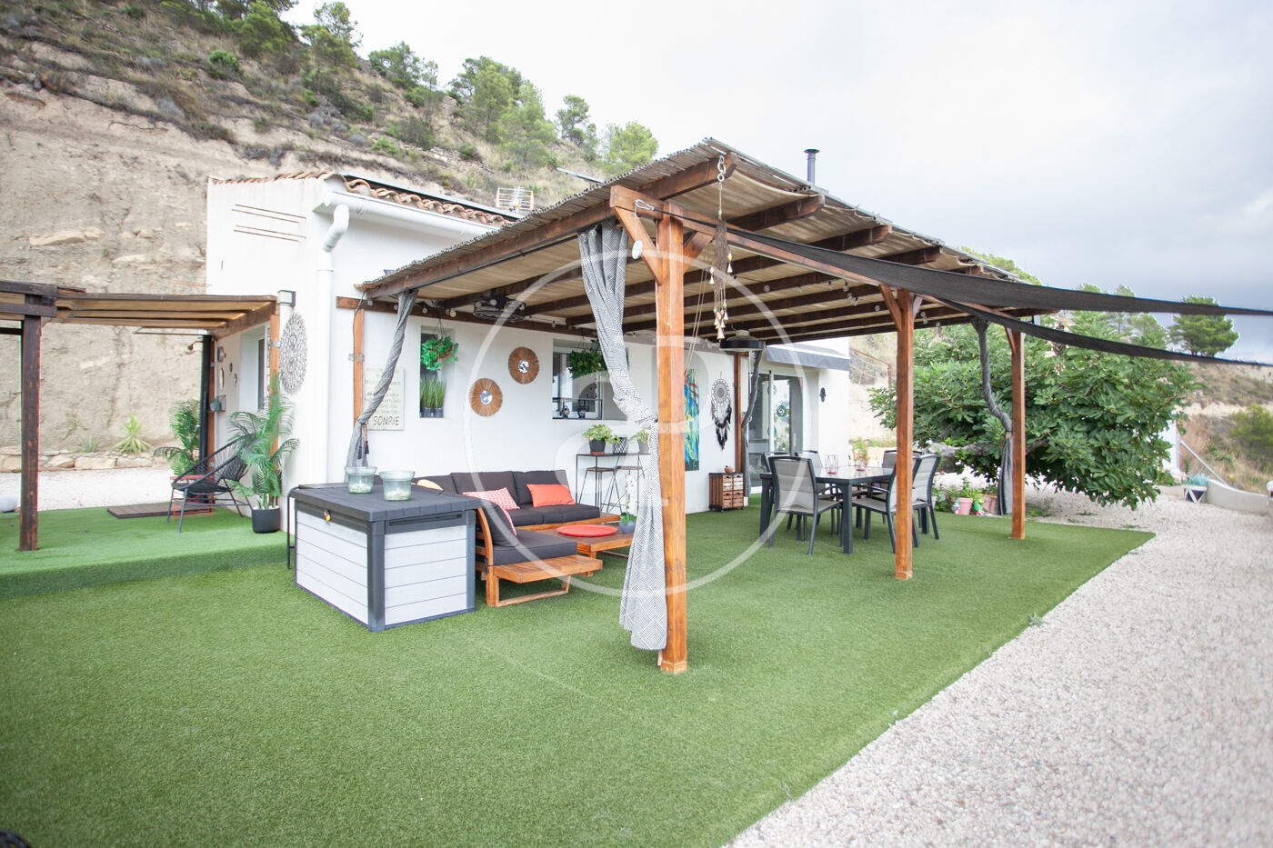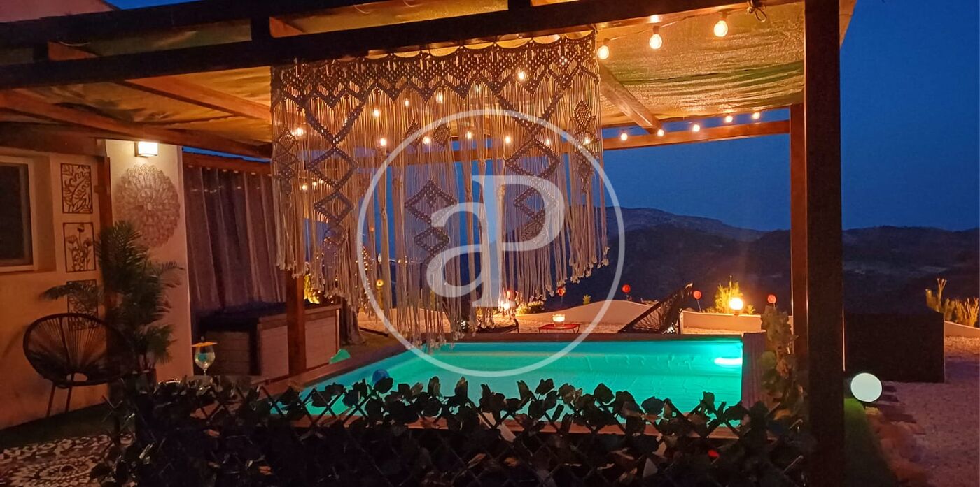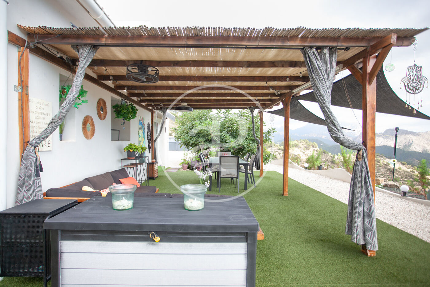 aProperties presents this magnificent Ibizan‐style property located in the picturesque municipality of Sella. In the heart of Marina Baja, just 40 km from Alicante and less than 25 minutes from Benidorm, this property enjoys a privileged location that combines the tranquility of rural life with the proximity to the coast and all amenities.