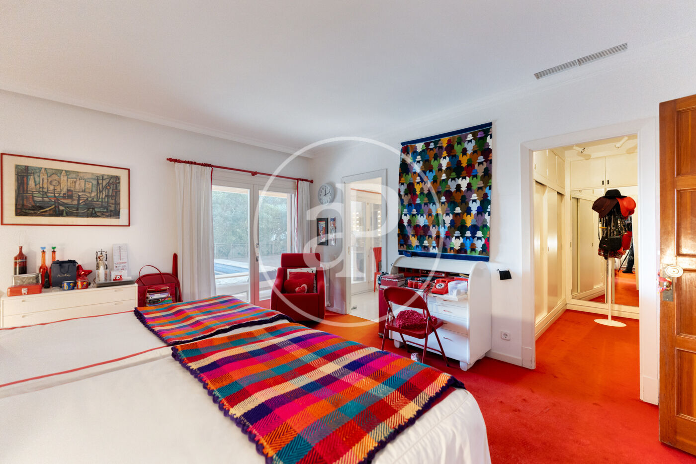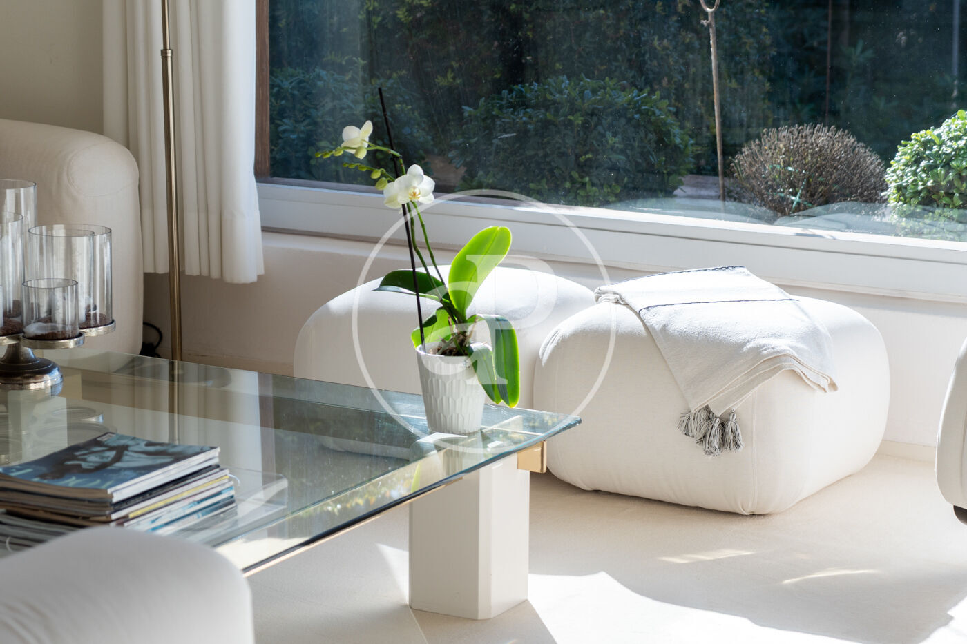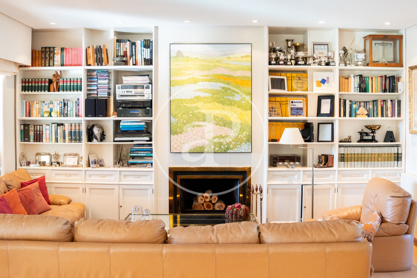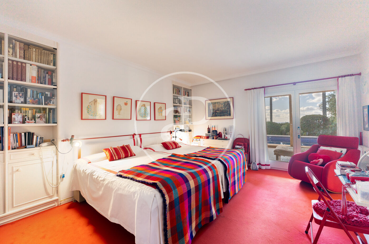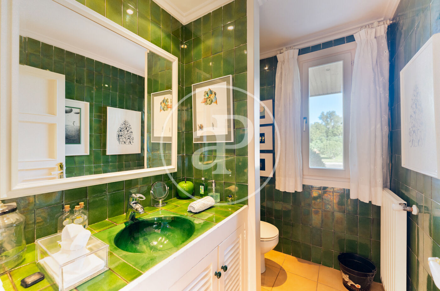 The generous living-dining room with fireplace is complemented by a second lounge for guests and offers direct access to the porch with barbecue, the swimming pool and the expansive outdoor terraces, surrounded by a beautifully maintained garden—ideal for enjoying the Mediterranean lifestyle.