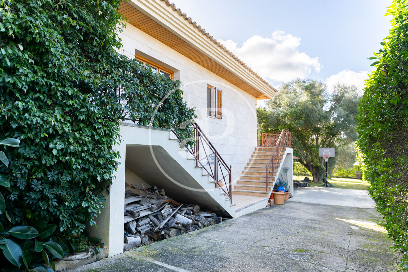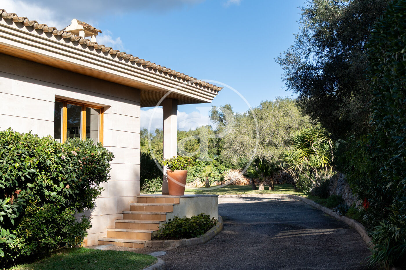 Façade and exterior clad in Santanyí stone
