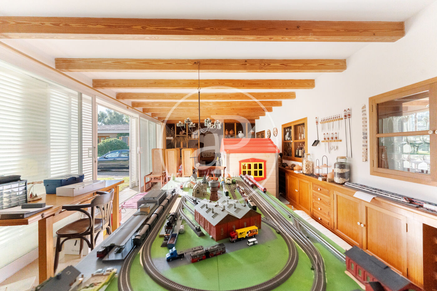 Outside, in addition to the pool and garden, the property features a charming guest house or games room with its own fireplace, as well as basement areas, a garage for two vehicles and additional parking space for up to four cars.